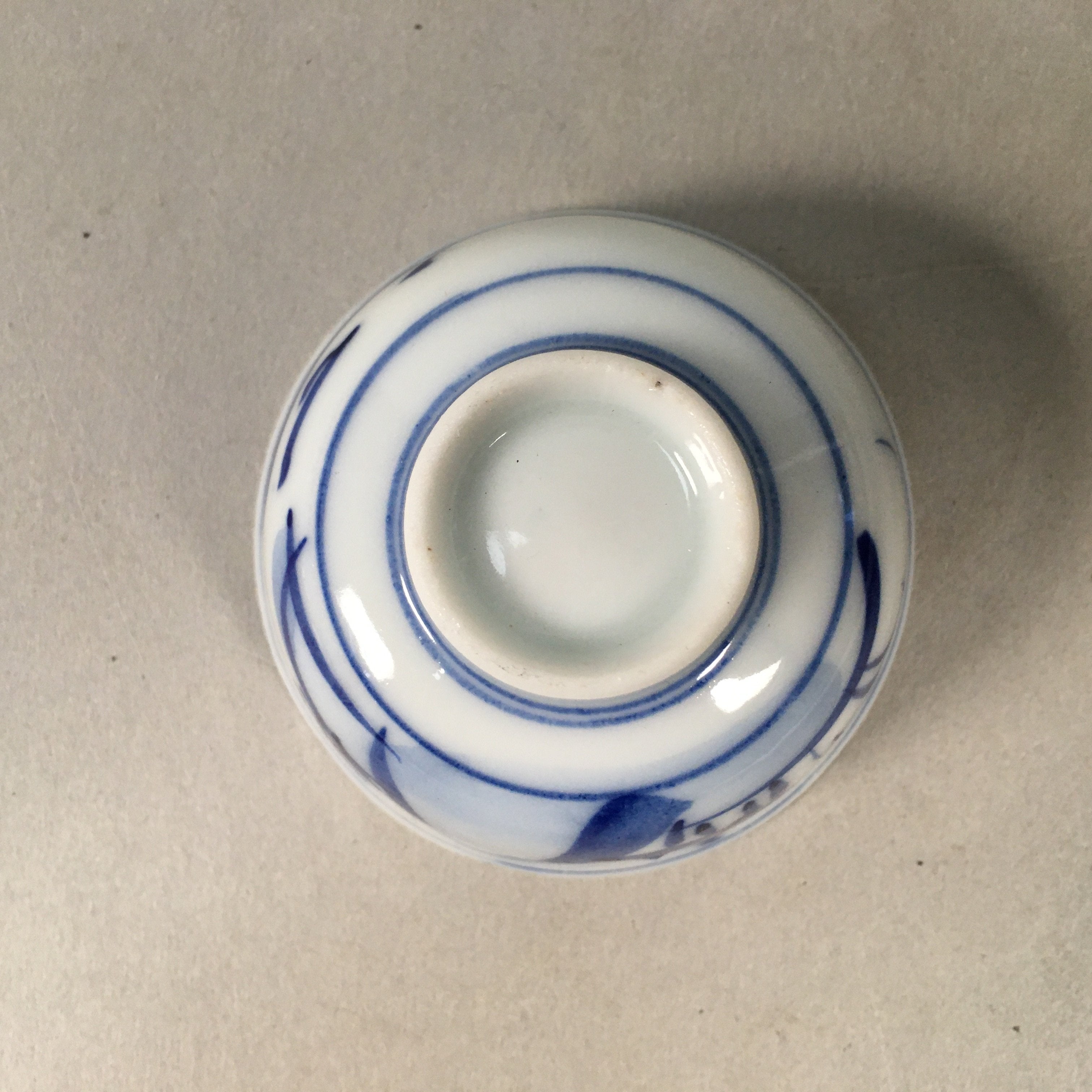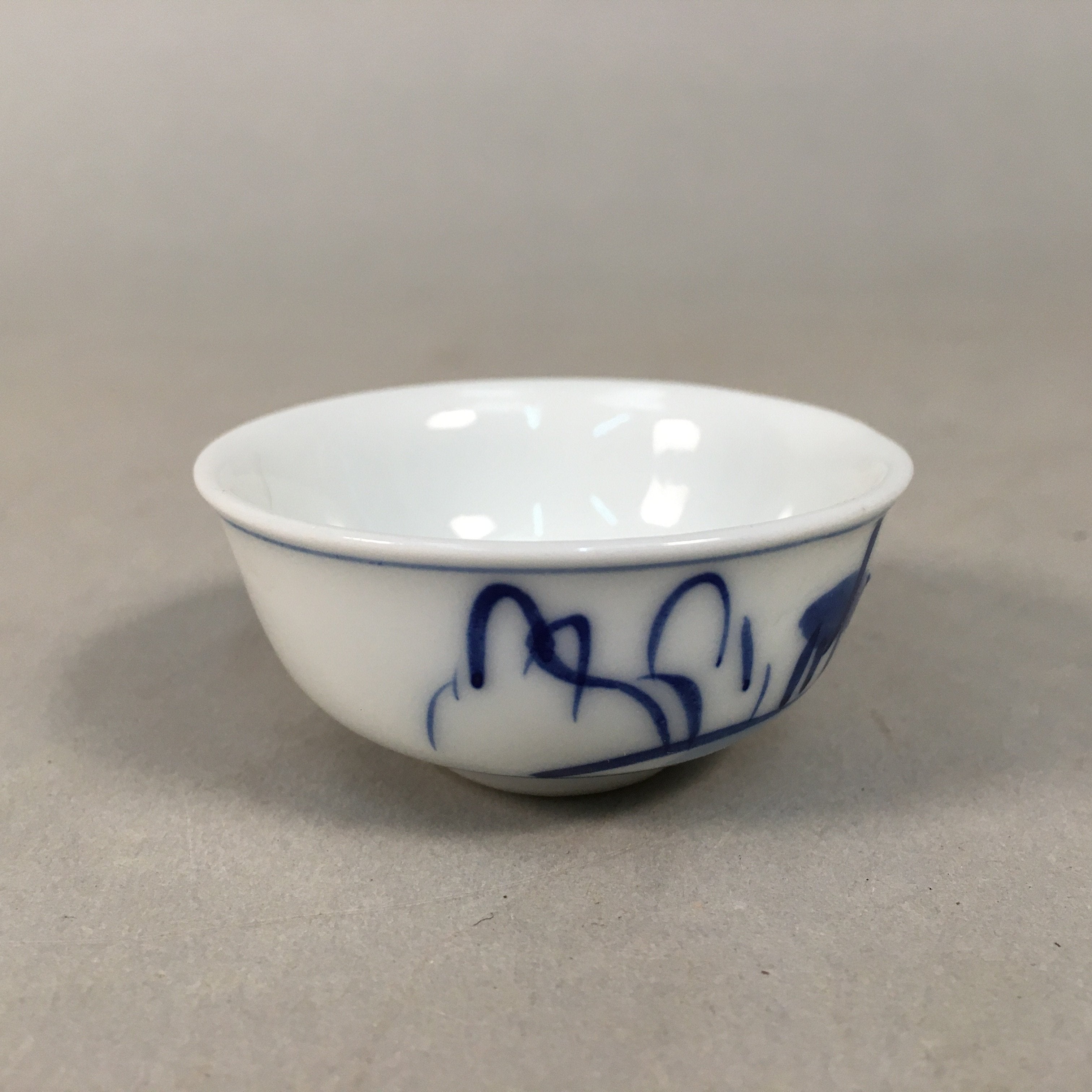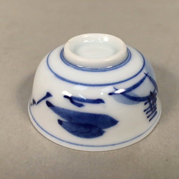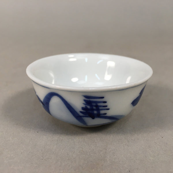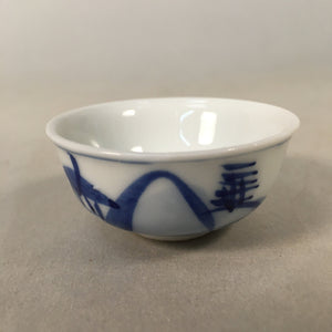 Japanese Porcelain Sake Cup Guinomi Sakazuki Vtg Blue White Mountain GU836