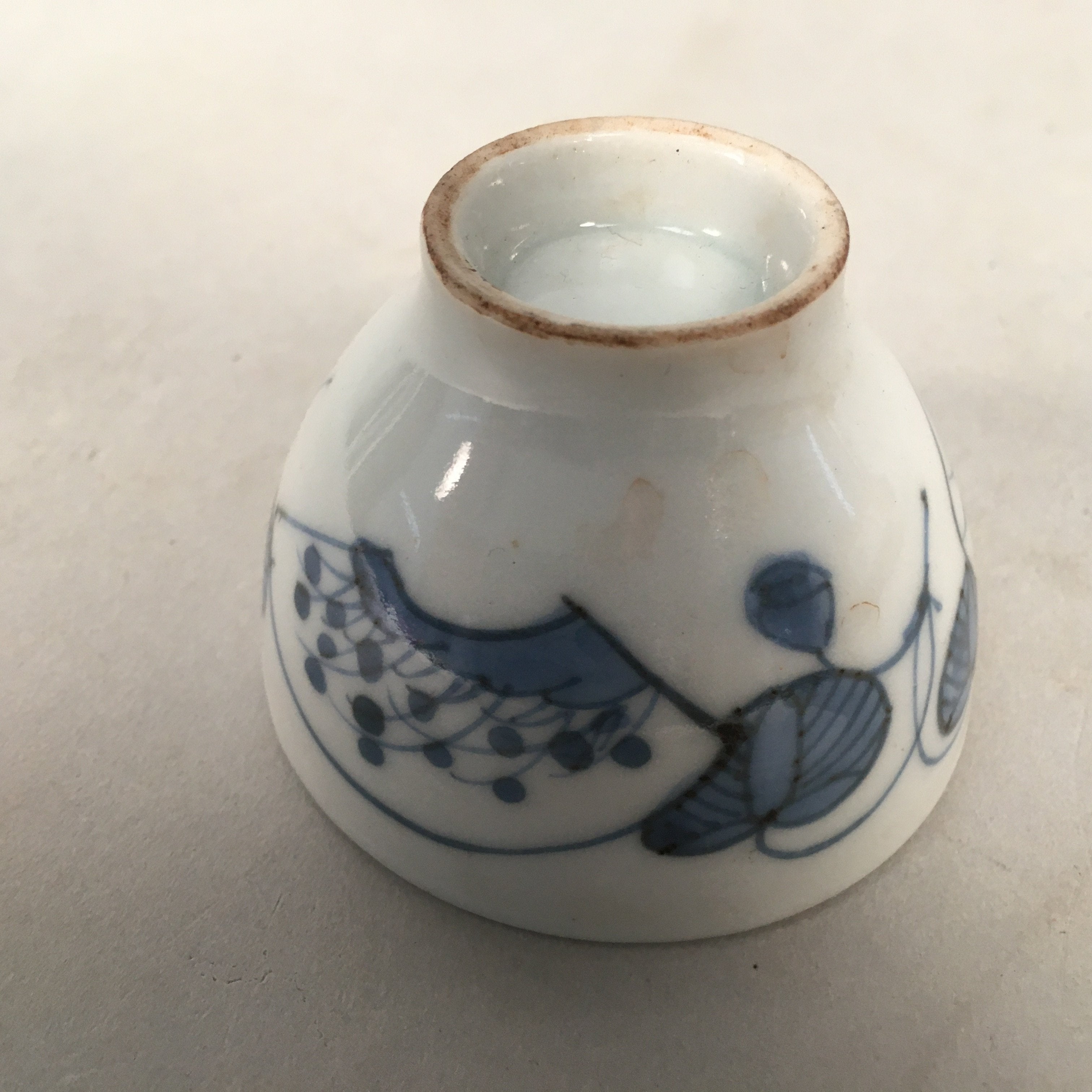 Japanese Porcelain Sake Cup Guinomi Sakazuki Vtg Blue White Sometsuke GU822