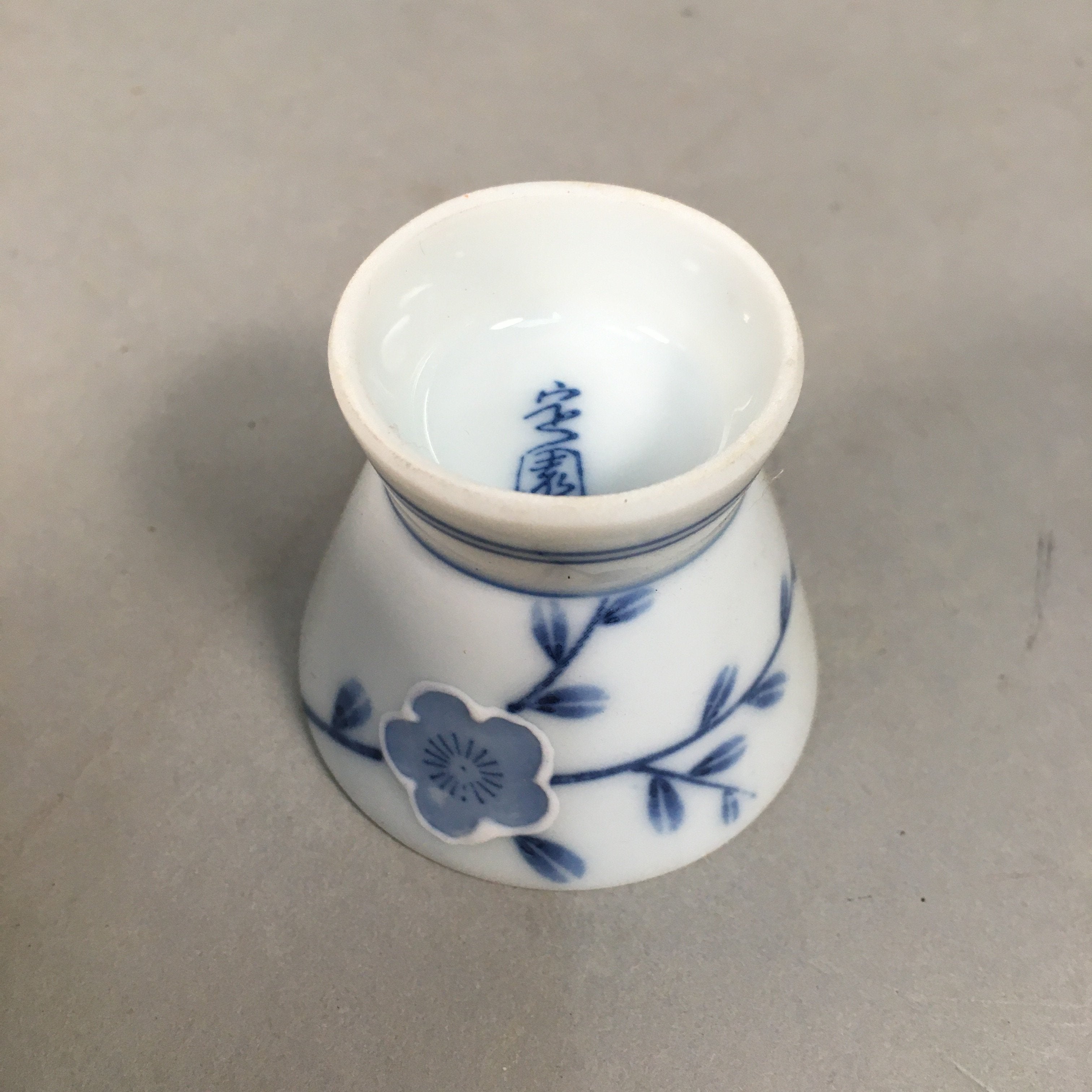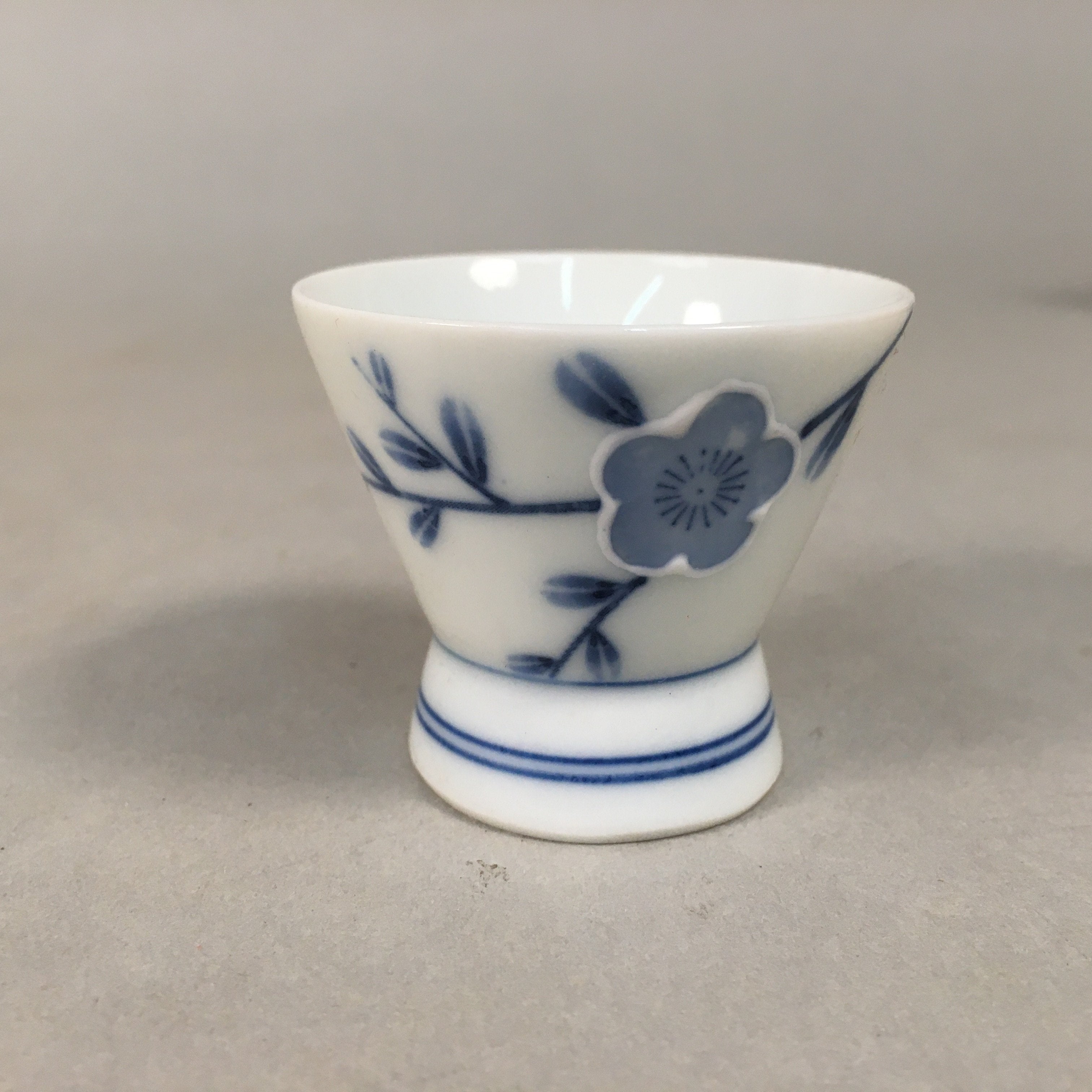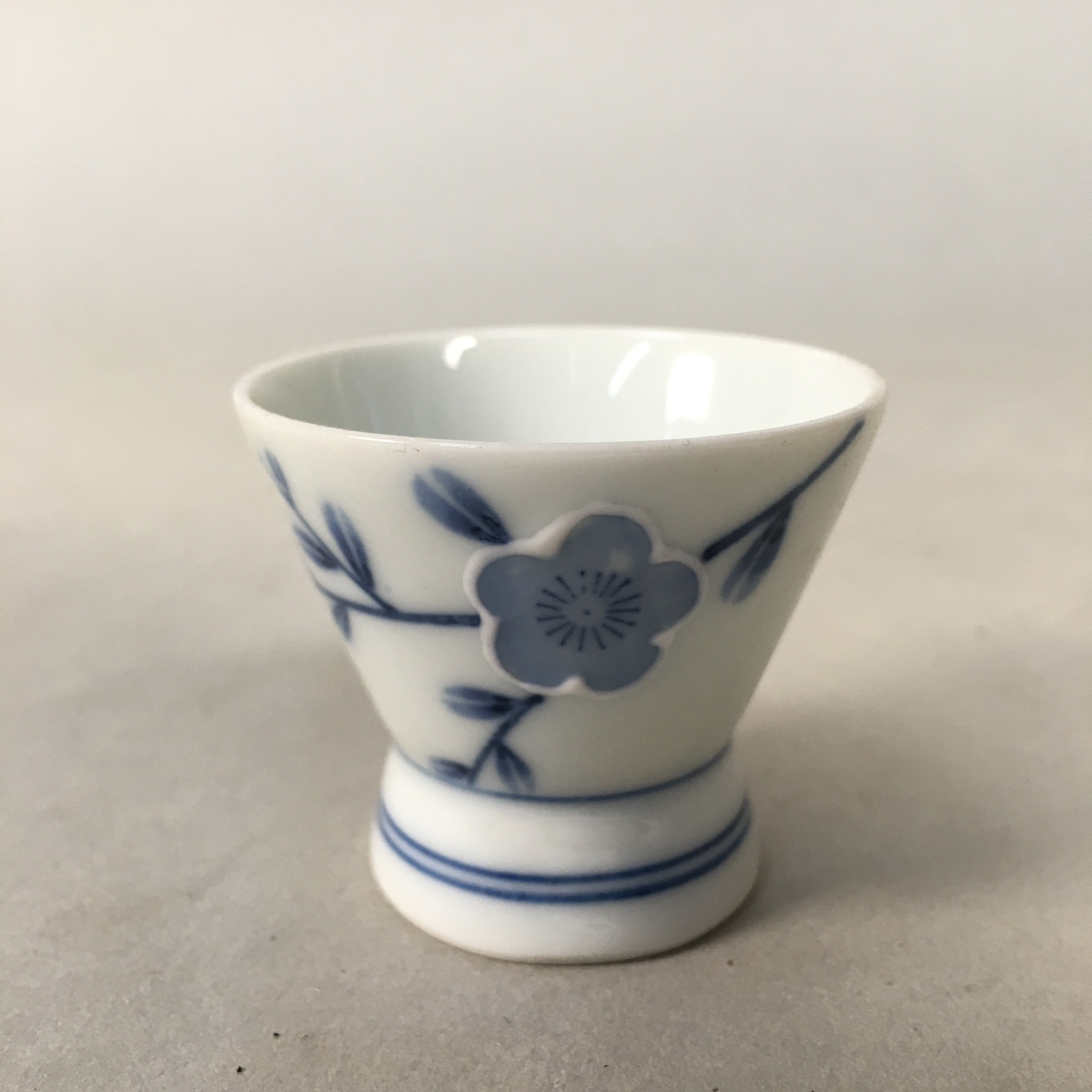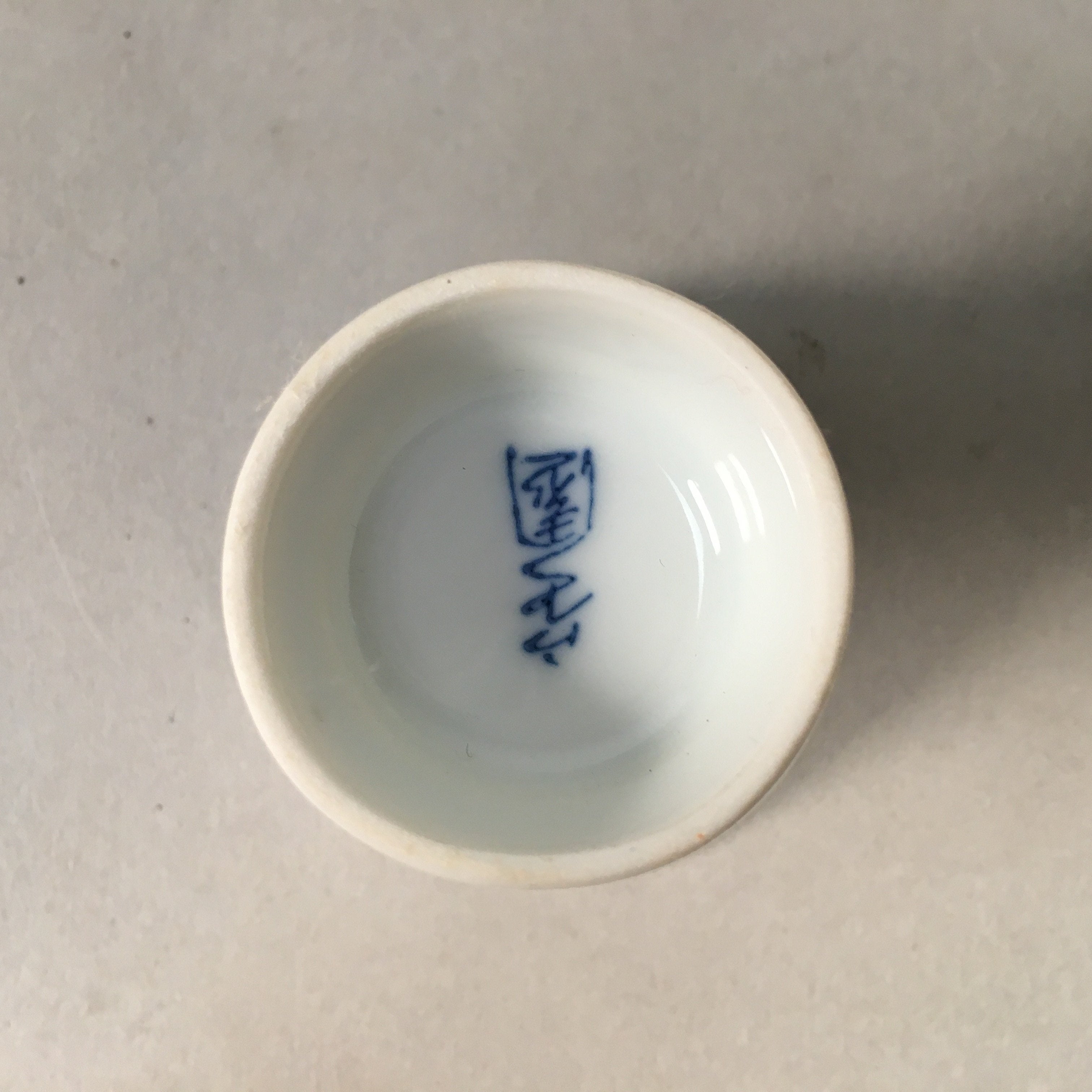 Japanese Porcelain Sake Cup Guinomi Sakazuki Vtg Blue White Sometsuke GU831