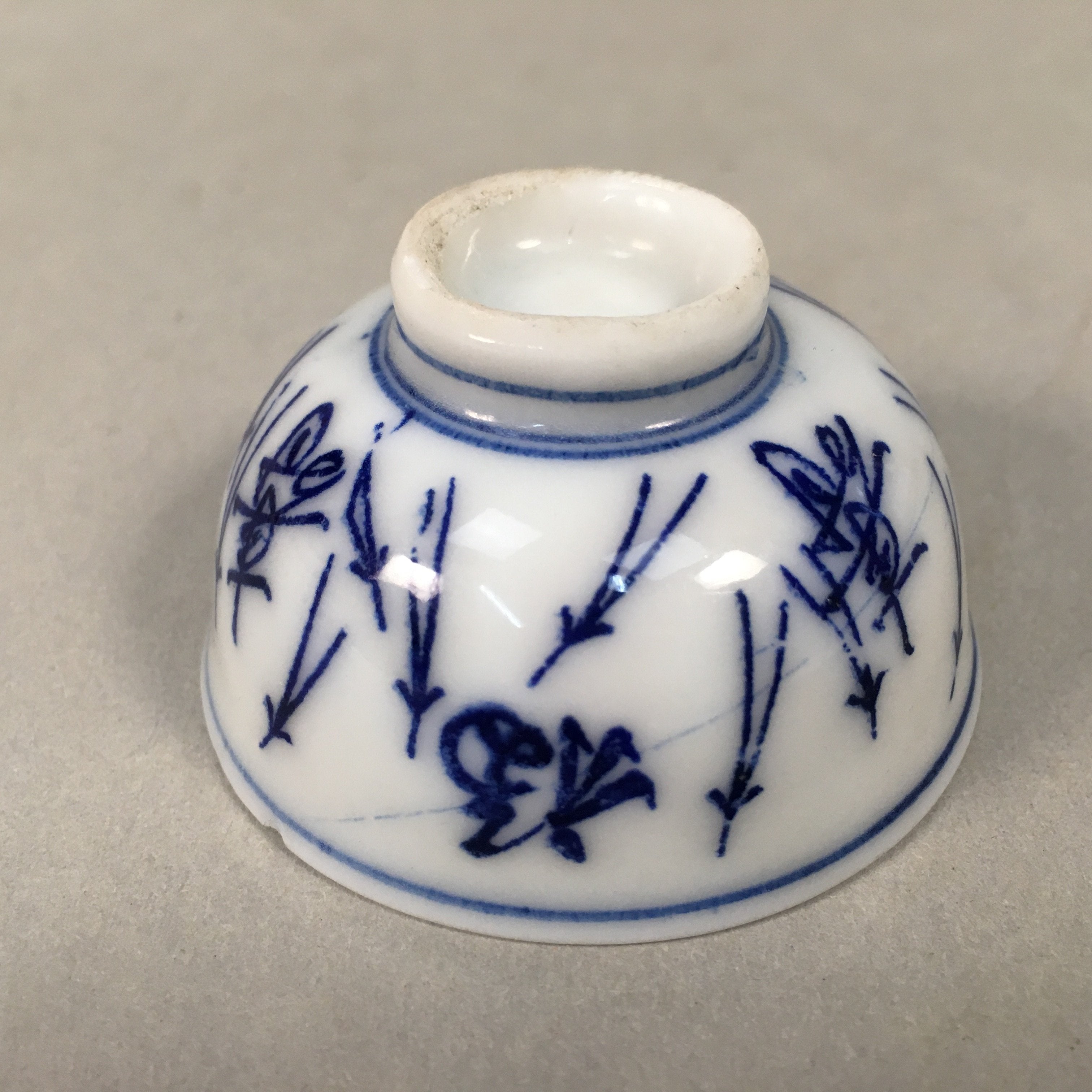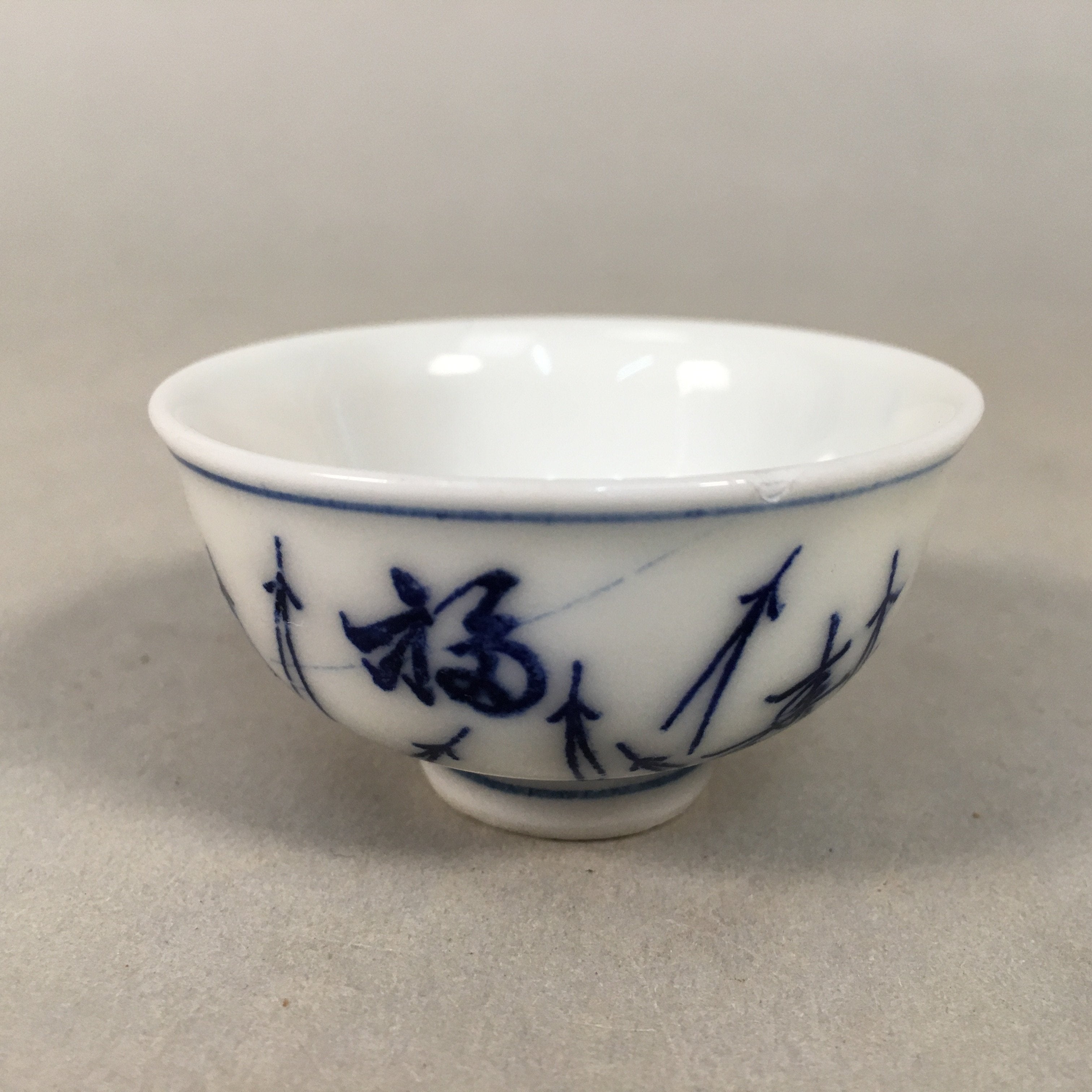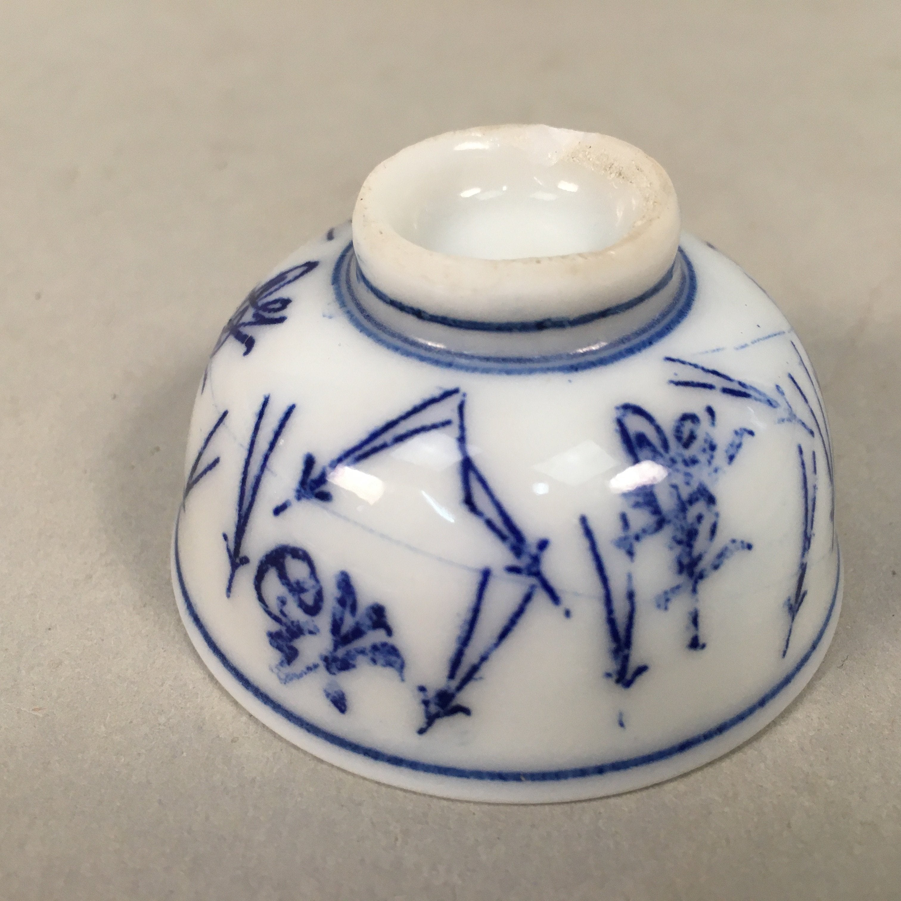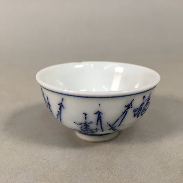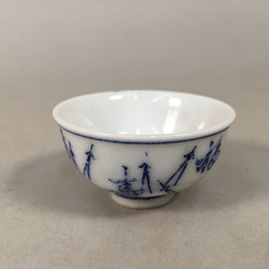 Japanese Porcelain Sake Cup Guinomi Sakazuki Vtg Blue White Sometsuke GU842