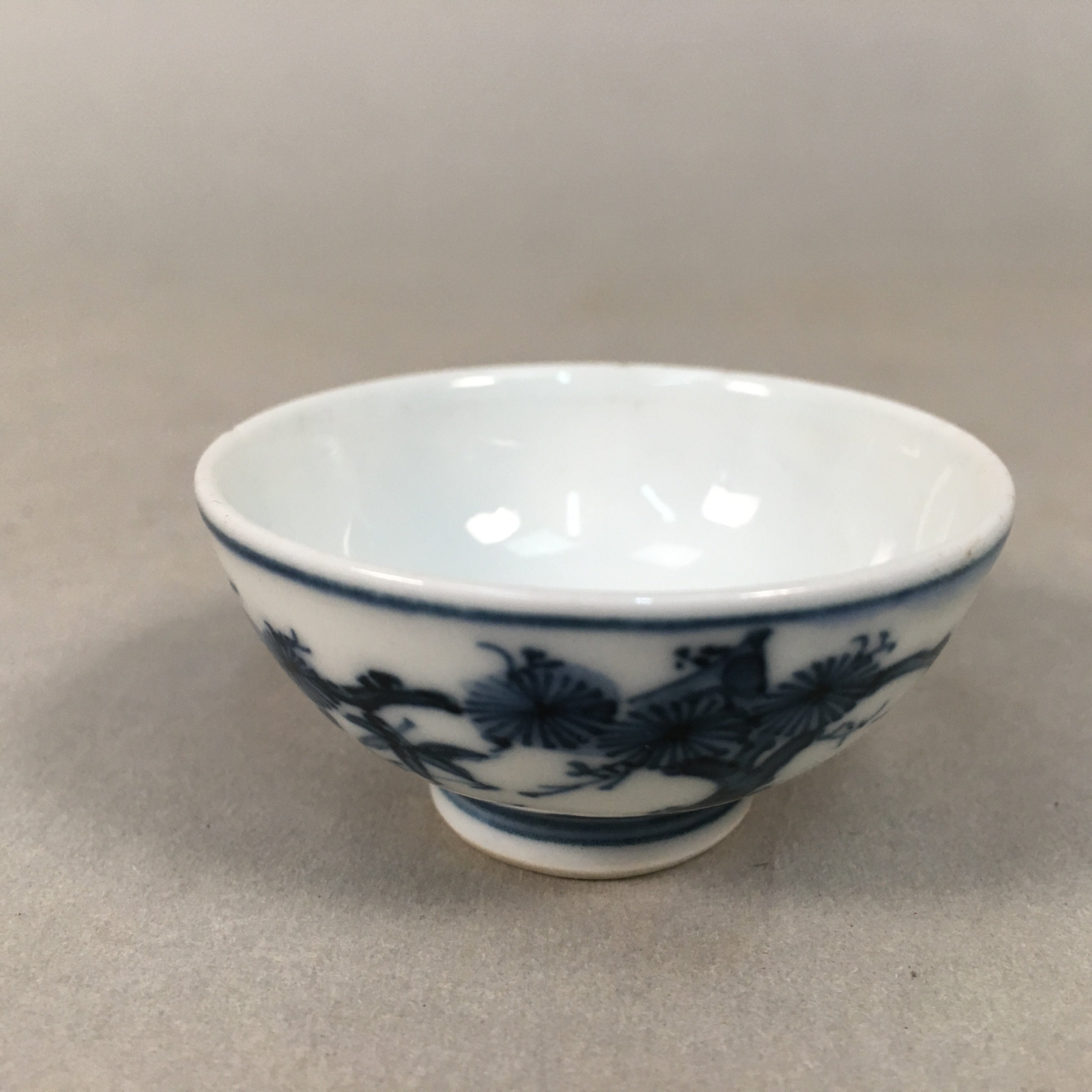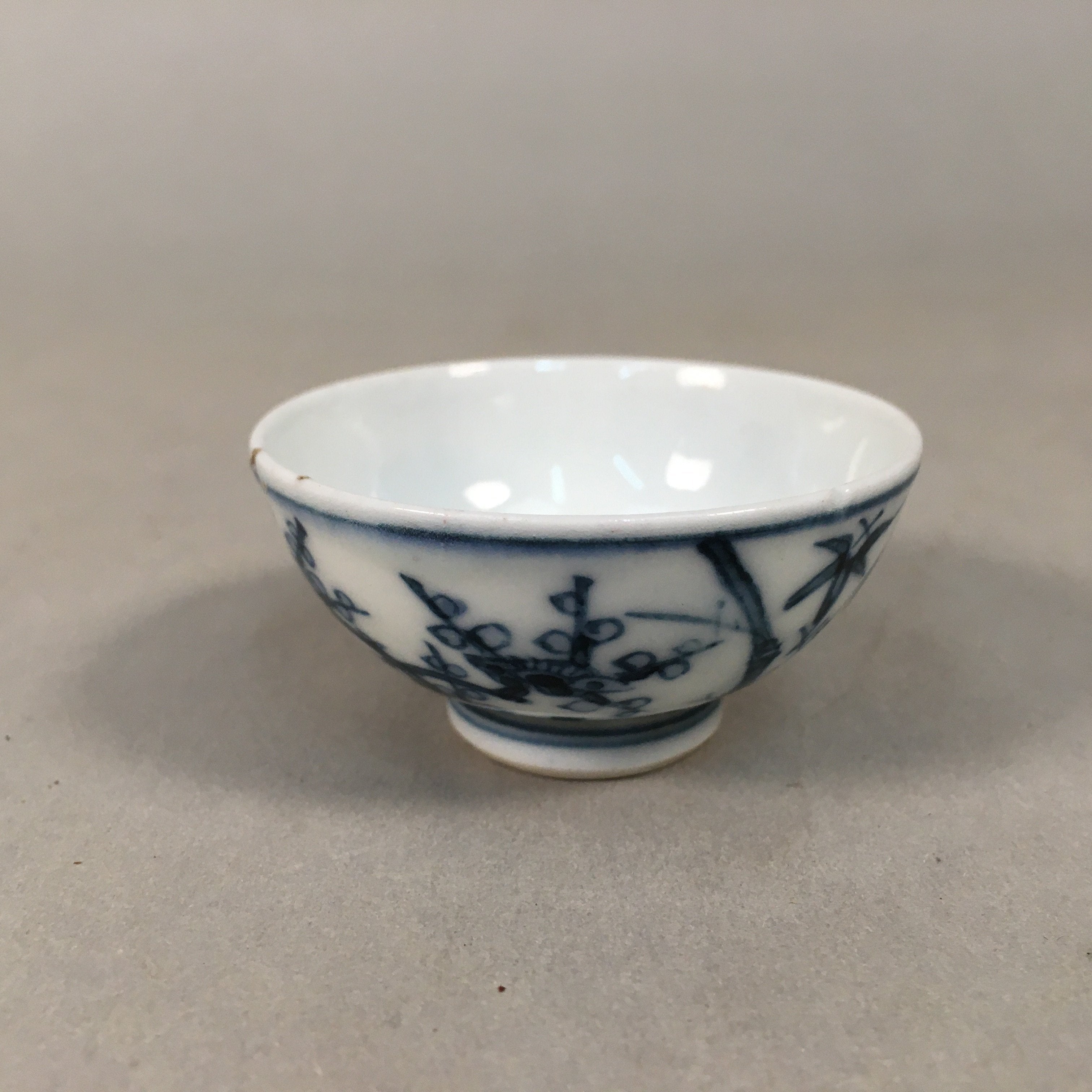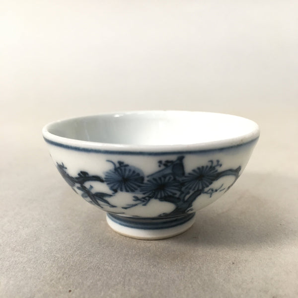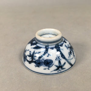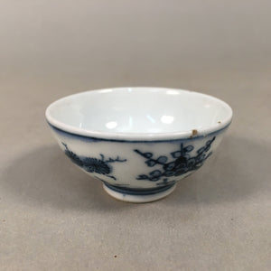 Japanese Porcelain Sake Cup Guinomi Sakazuki Vtg Blue White Sometsuke GU843