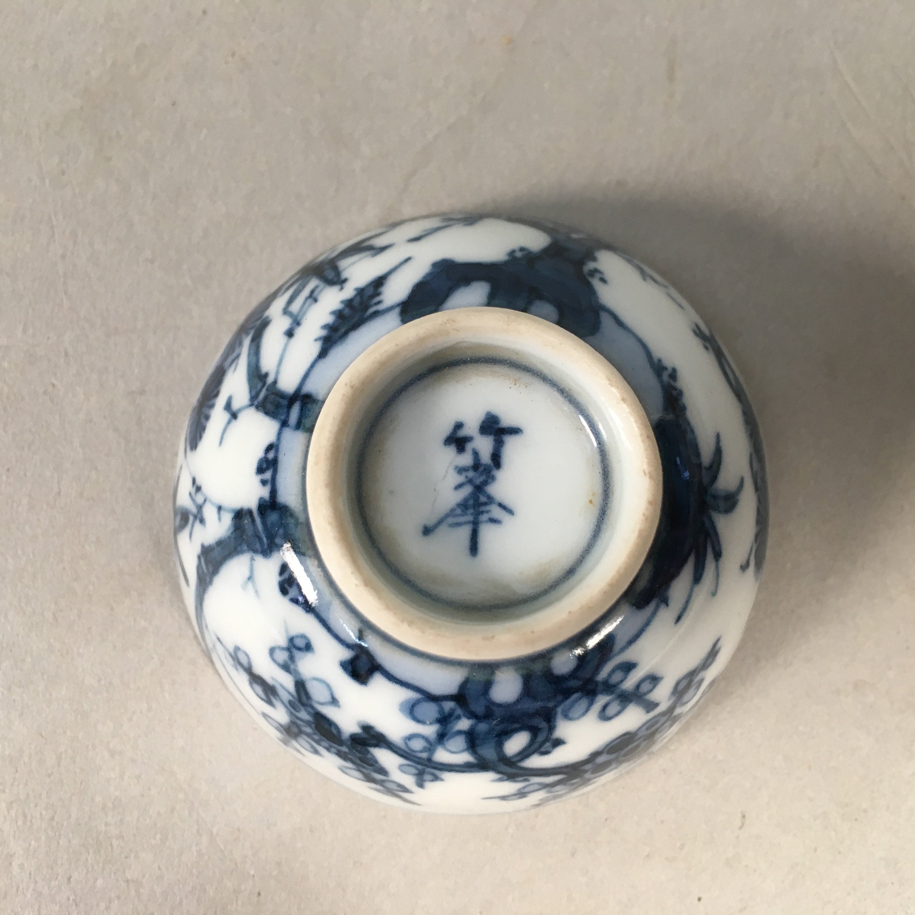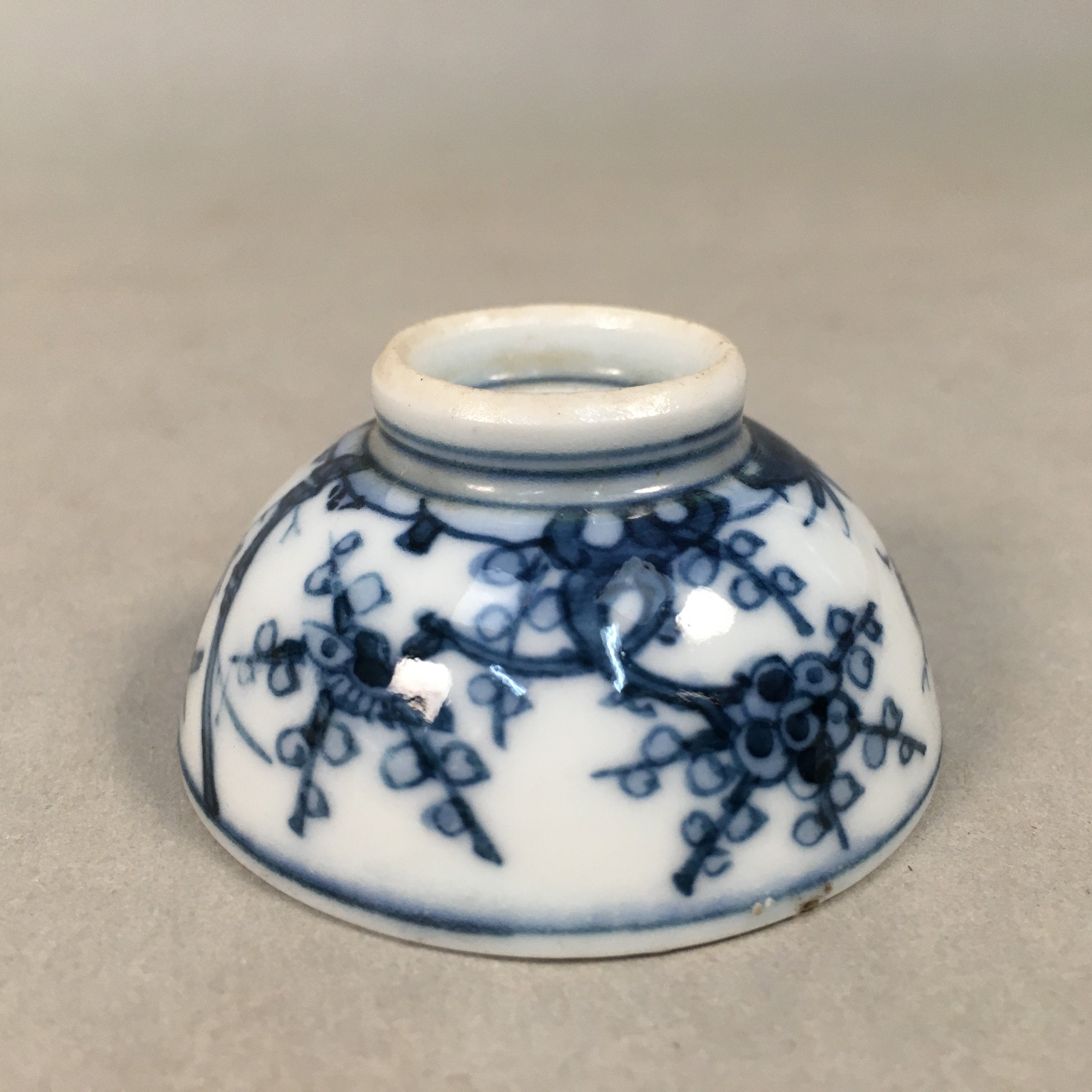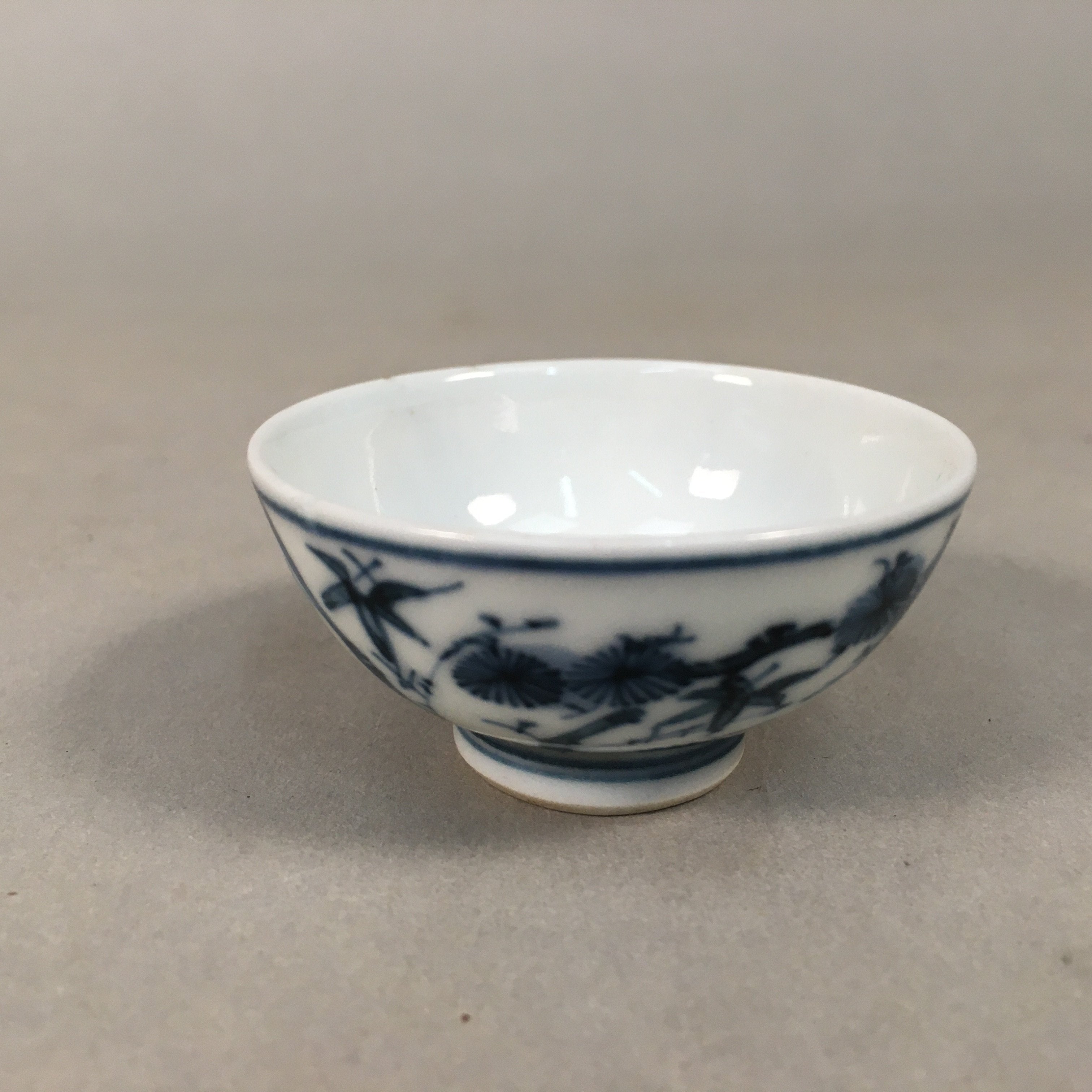 Japanese Porcelain Sake Cup Guinomi Sakazuki Vtg Blue White Sometsuke GU843