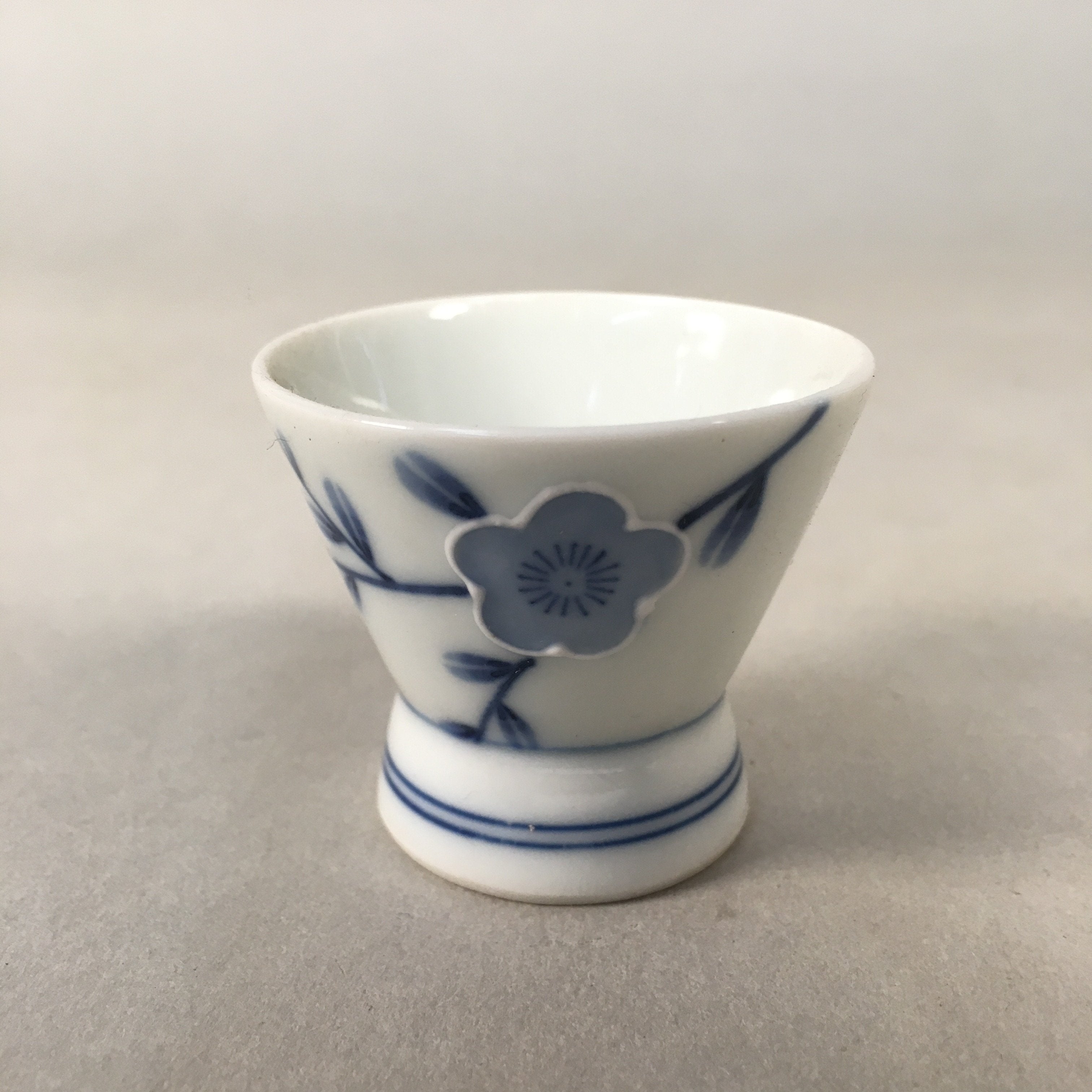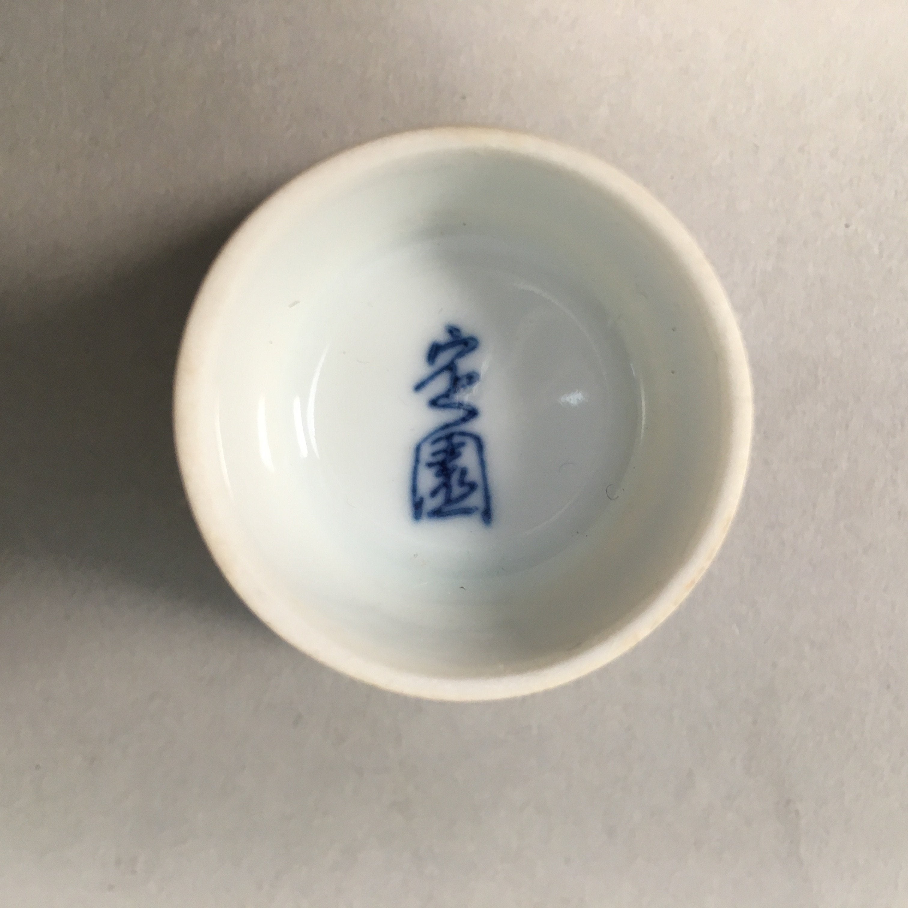 Japanese Porcelain Sake Cup Guinomi Sakazuki Vtg Blue White Sometsuke GU865