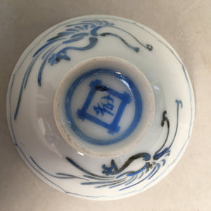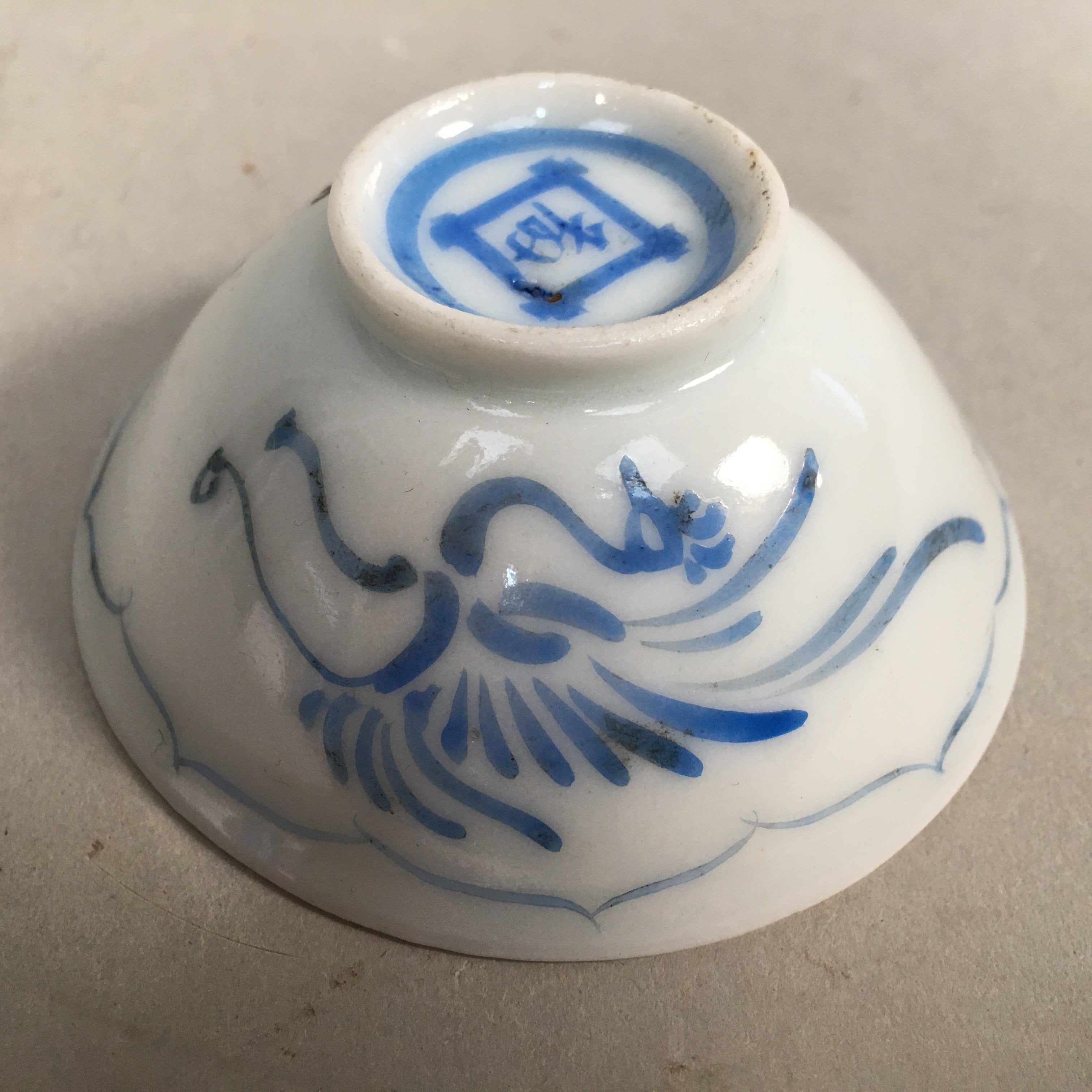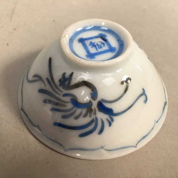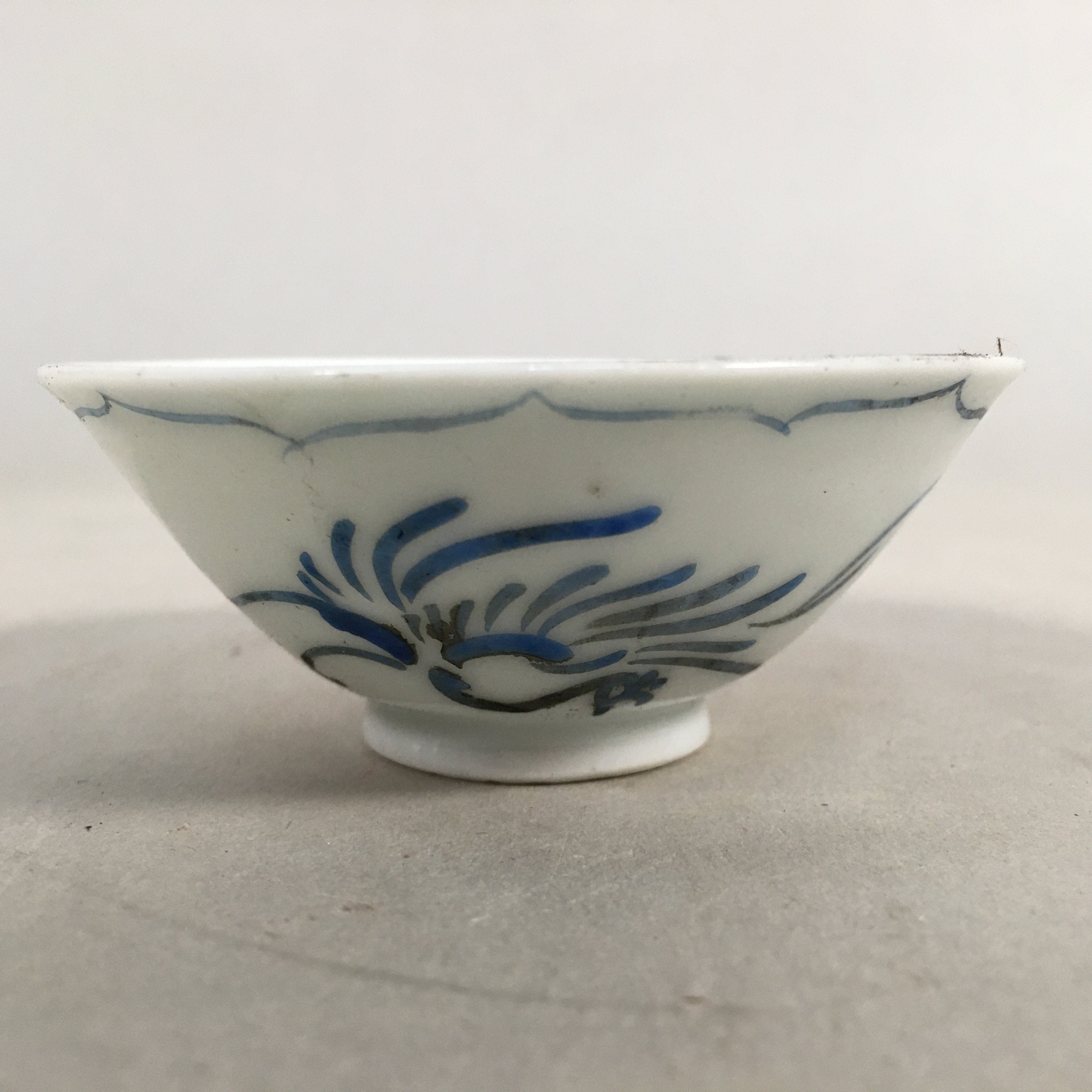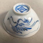 Japanese Porcelain Sake Cup Guinomi Sakazuki Vtg Phoenix Blue White GU772