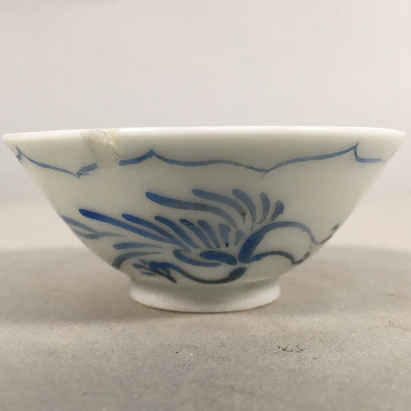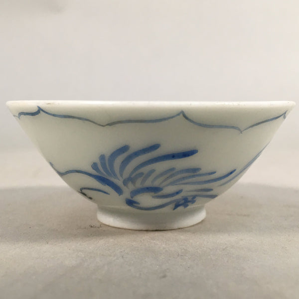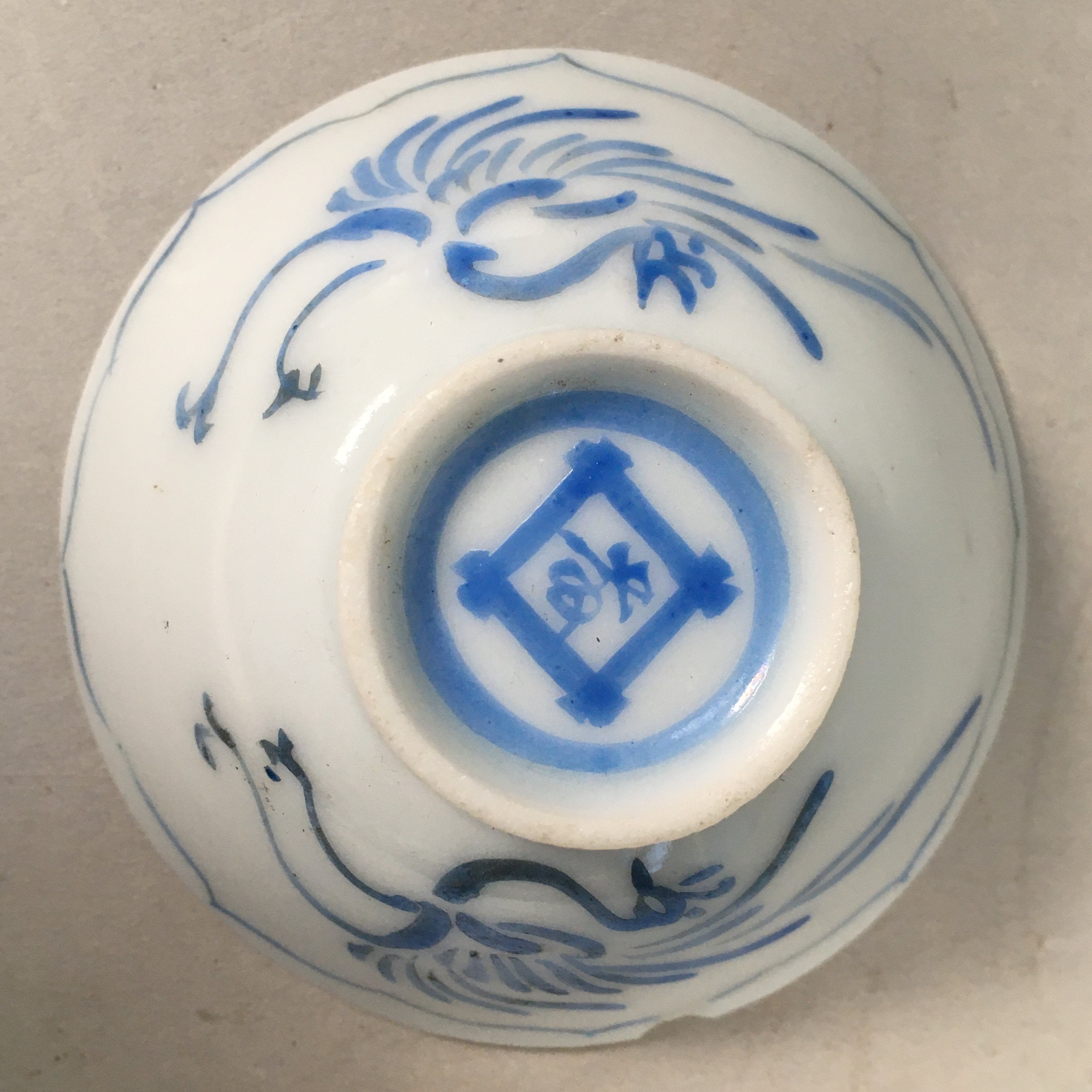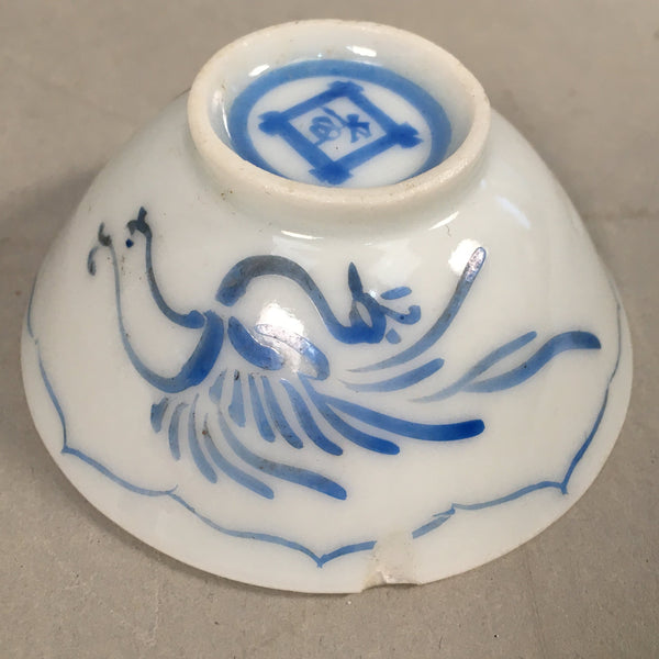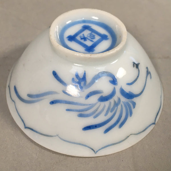 Japanese Porcelain Sake Cup Guinomi Sakazuki Vtg Phoenix Blue White GU784