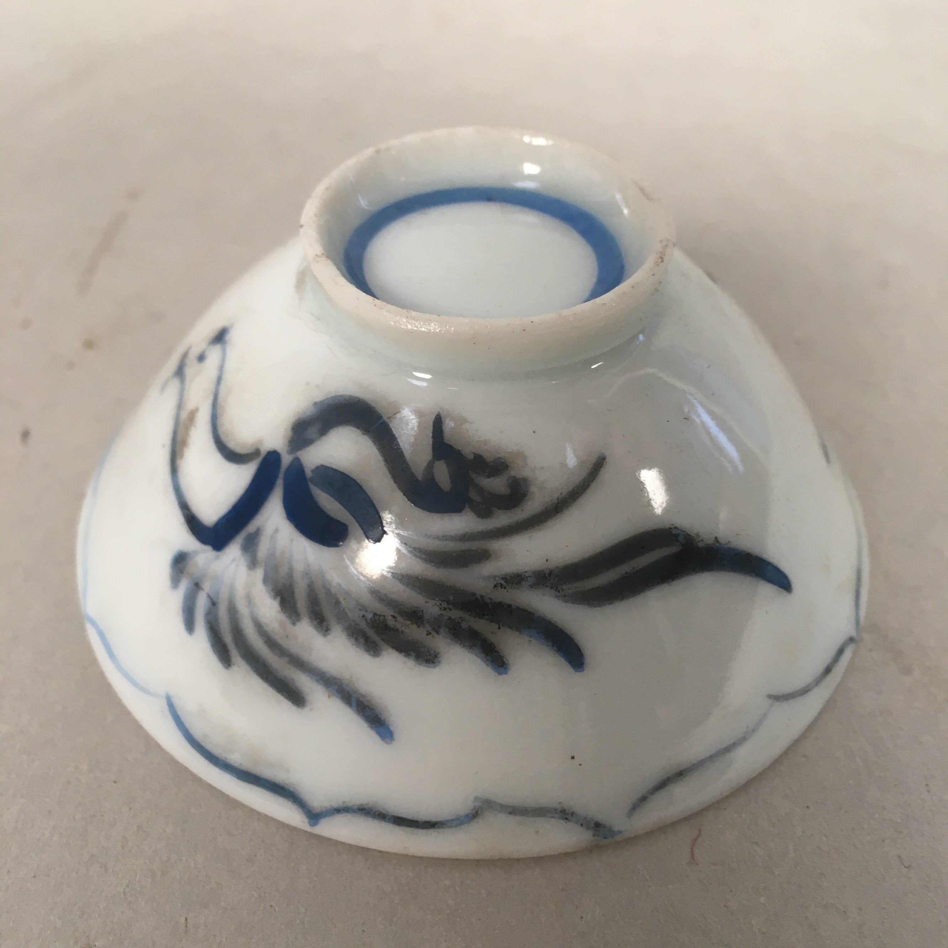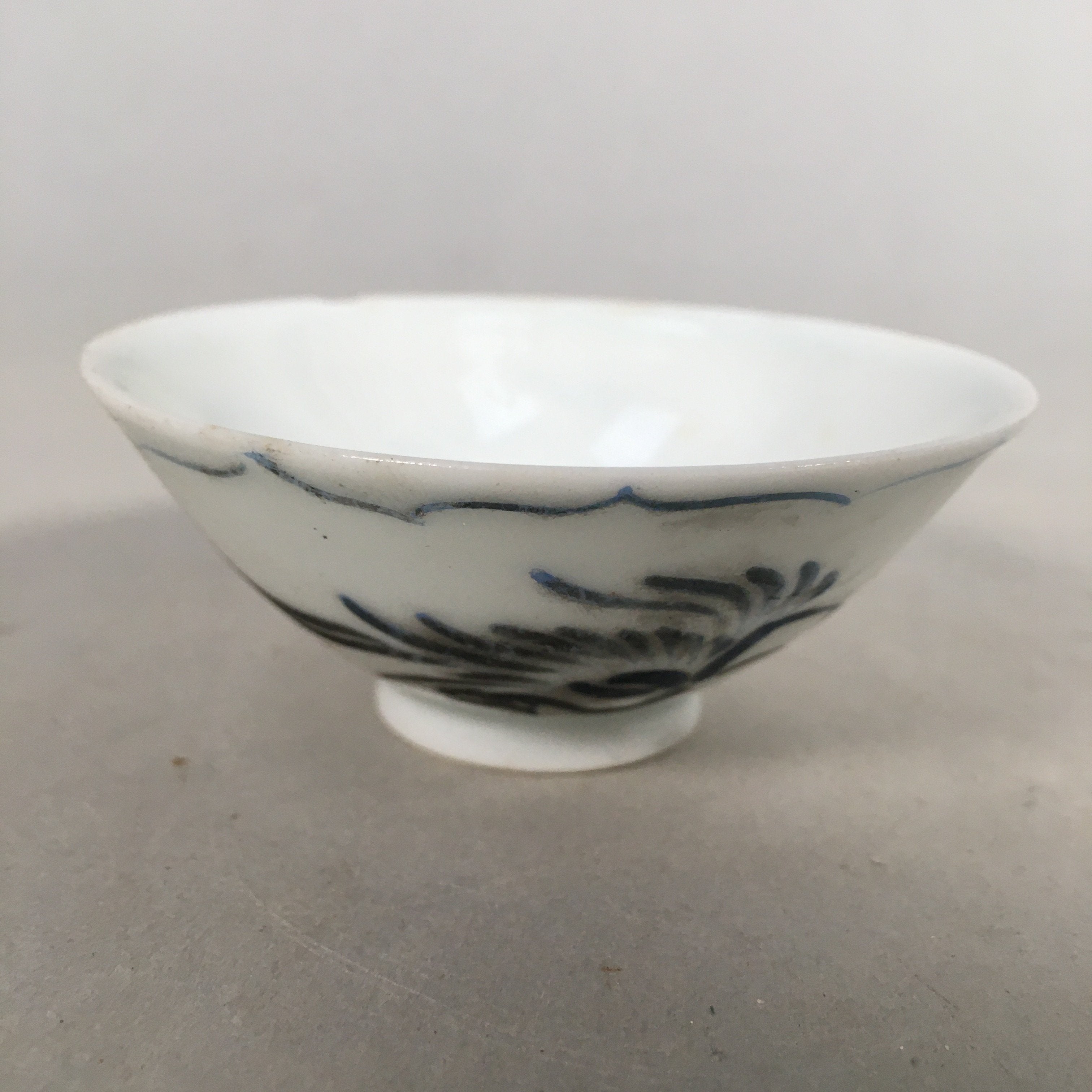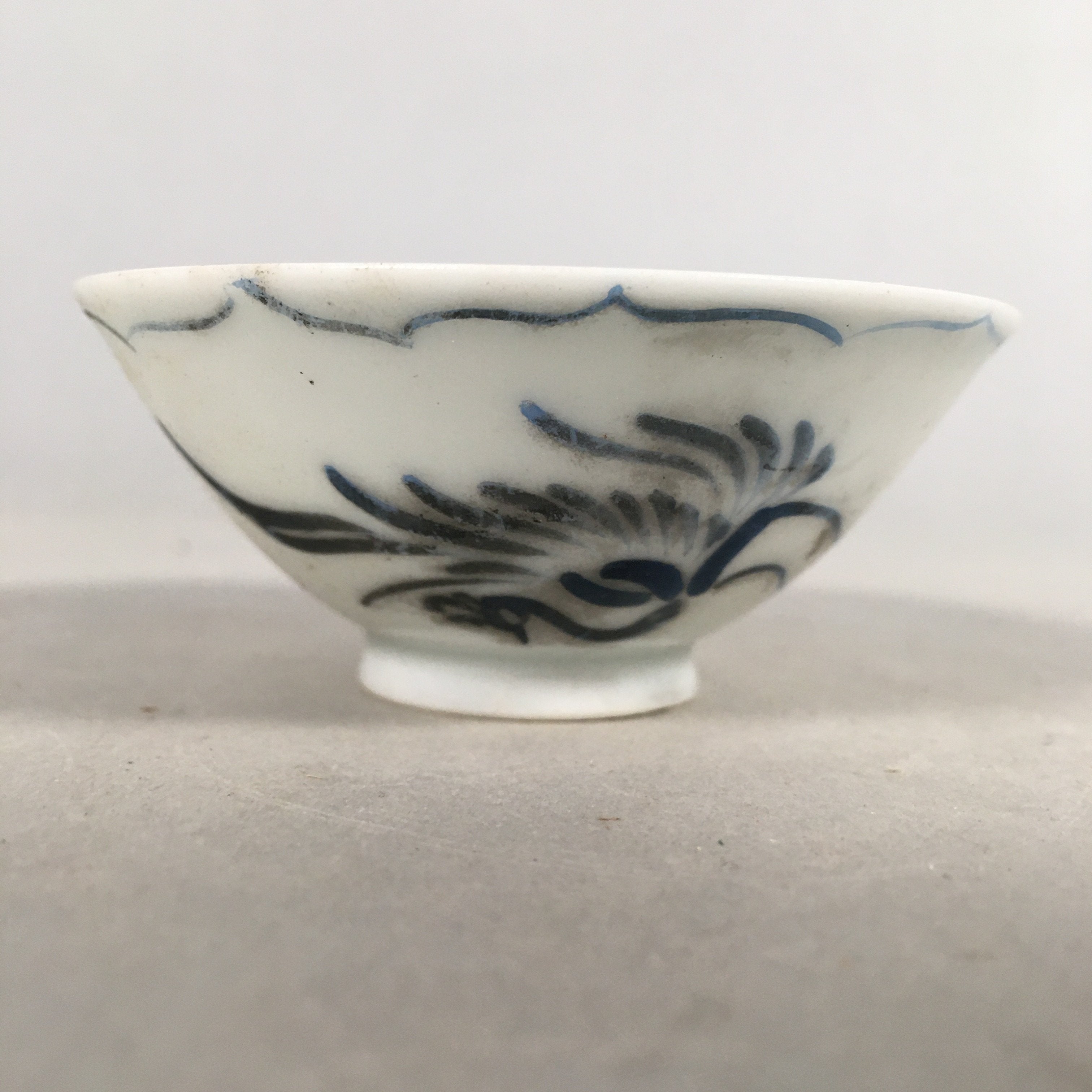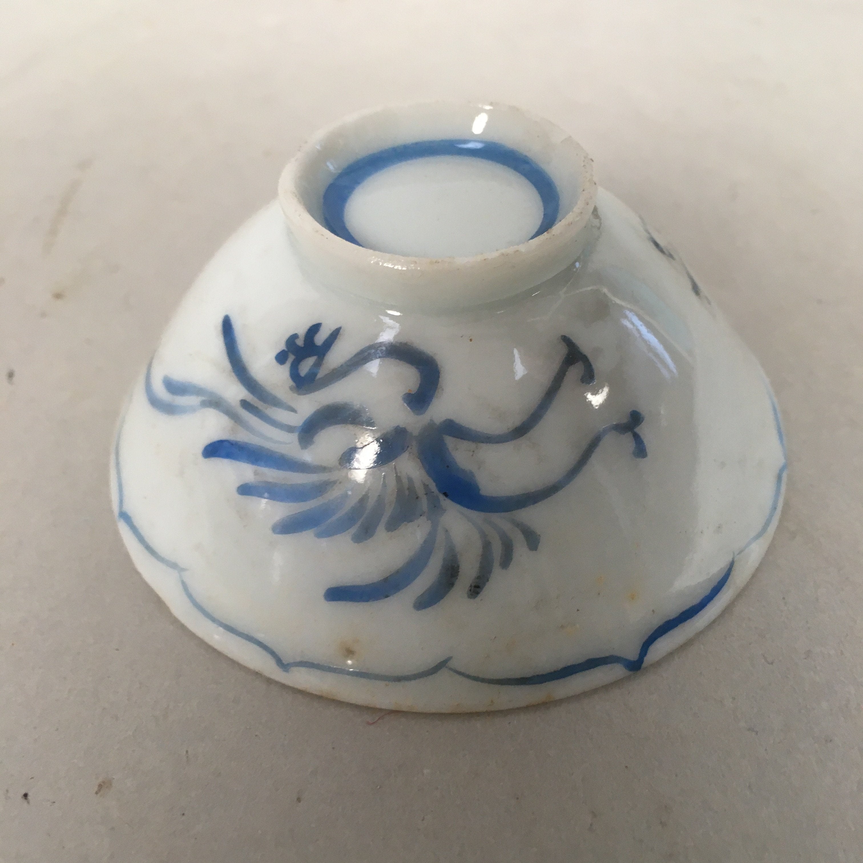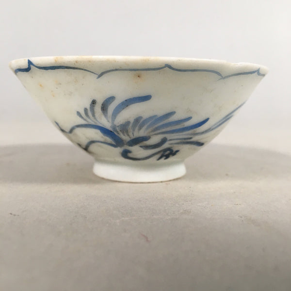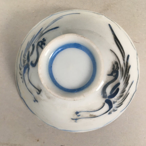 Japanese Porcelain Sake Cup Guinomi Sakazuki Vtg Phoenix Blue White GU769