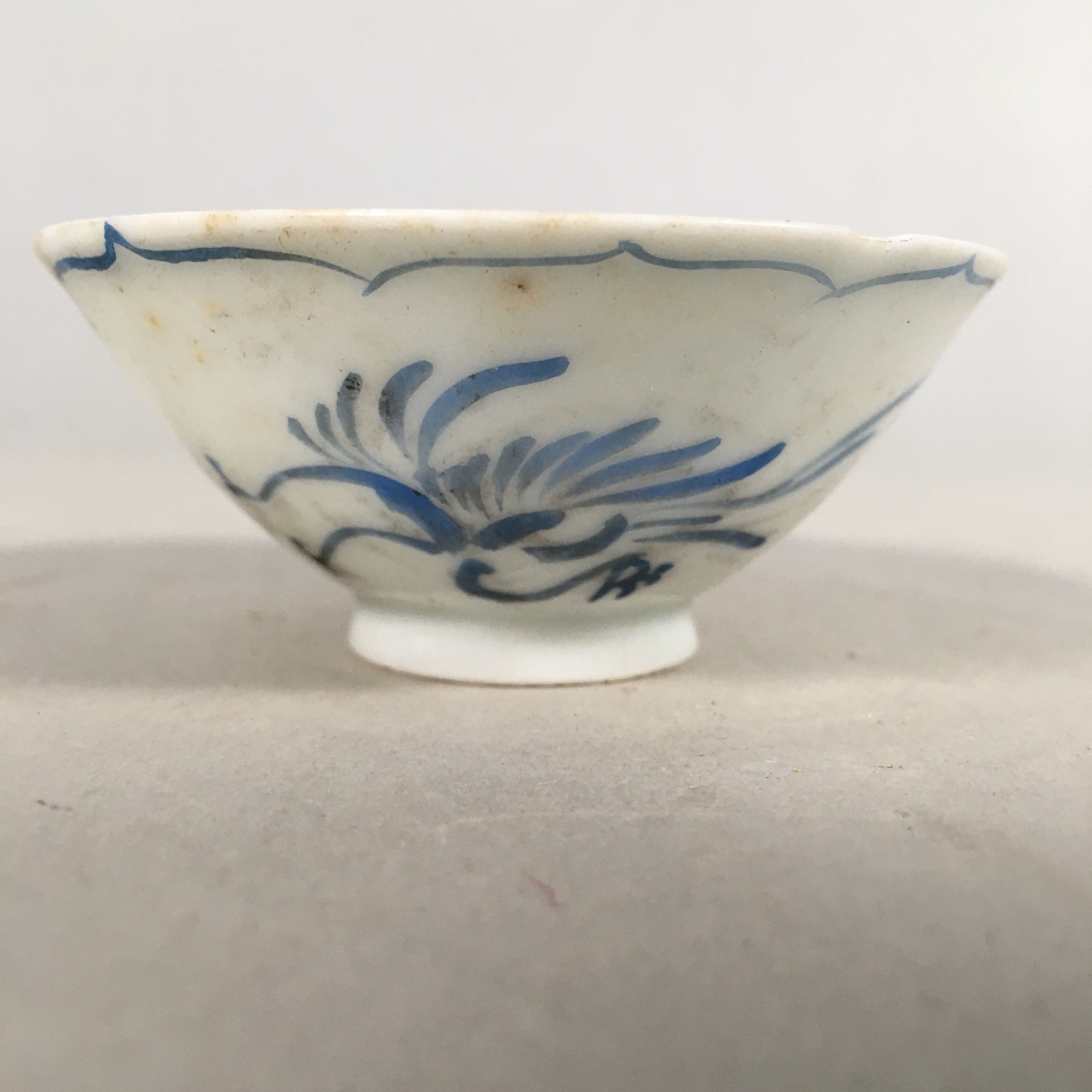 • Good condition considering its age. Chip. Slightly rough bottom rim. Wear and tear due to age. Please see the photos carefully.