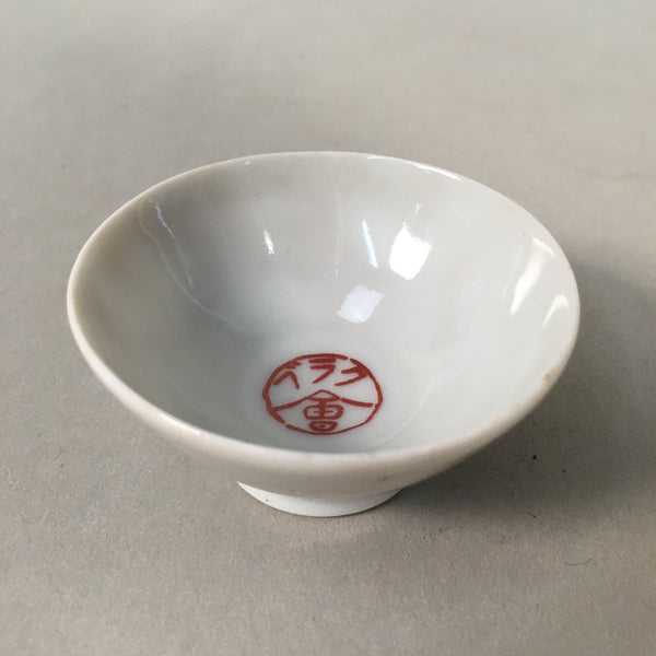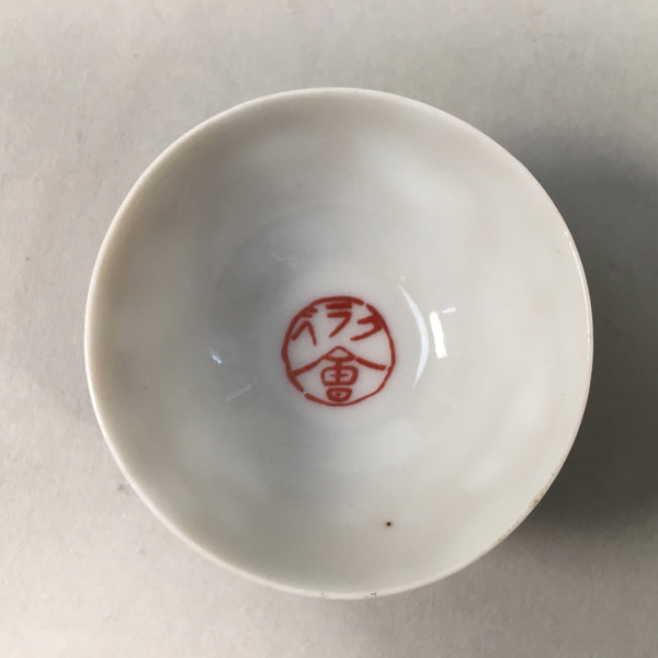 Japanese Porcelain Sake Cup Guinomi Sakazuki Vtg White Red Character GU875
