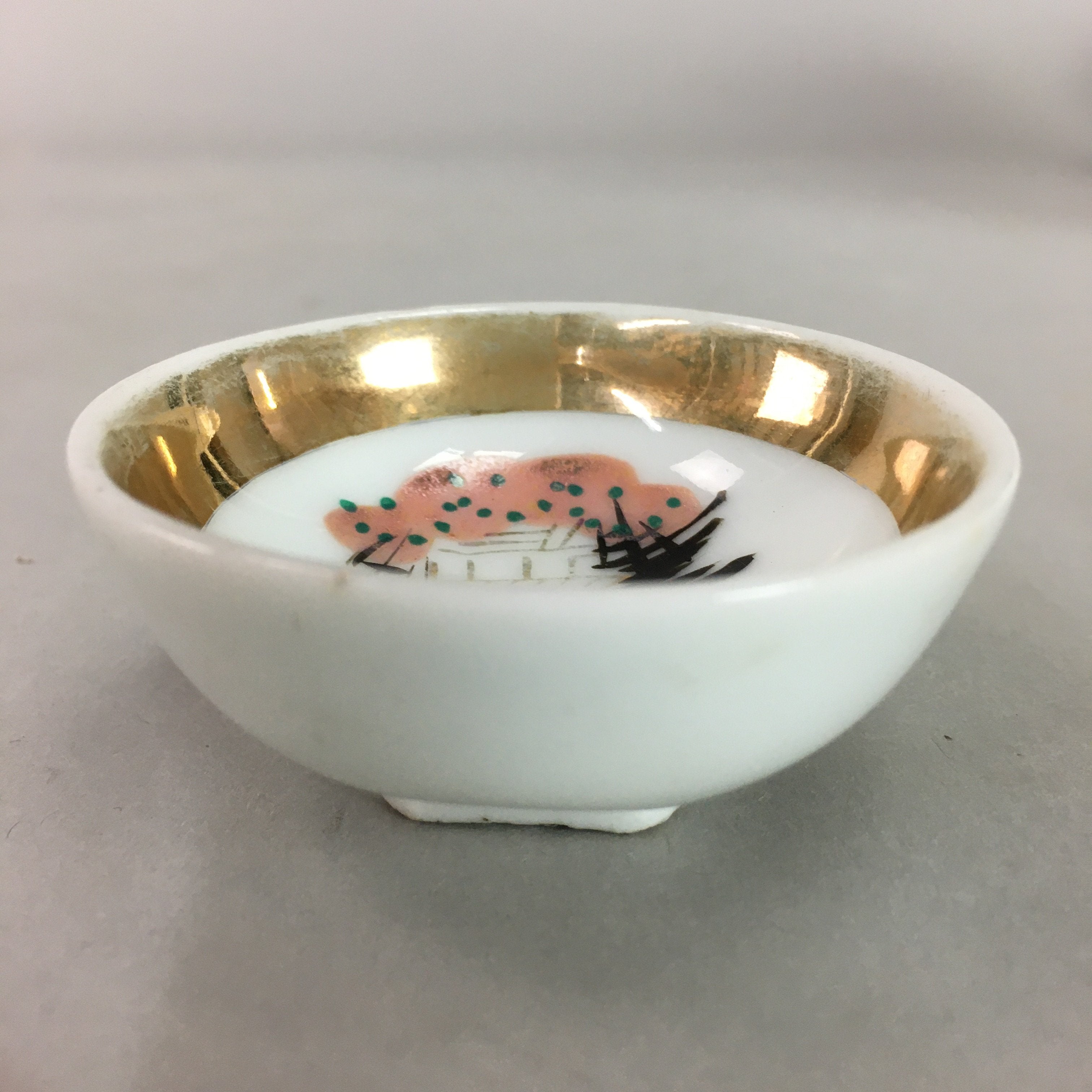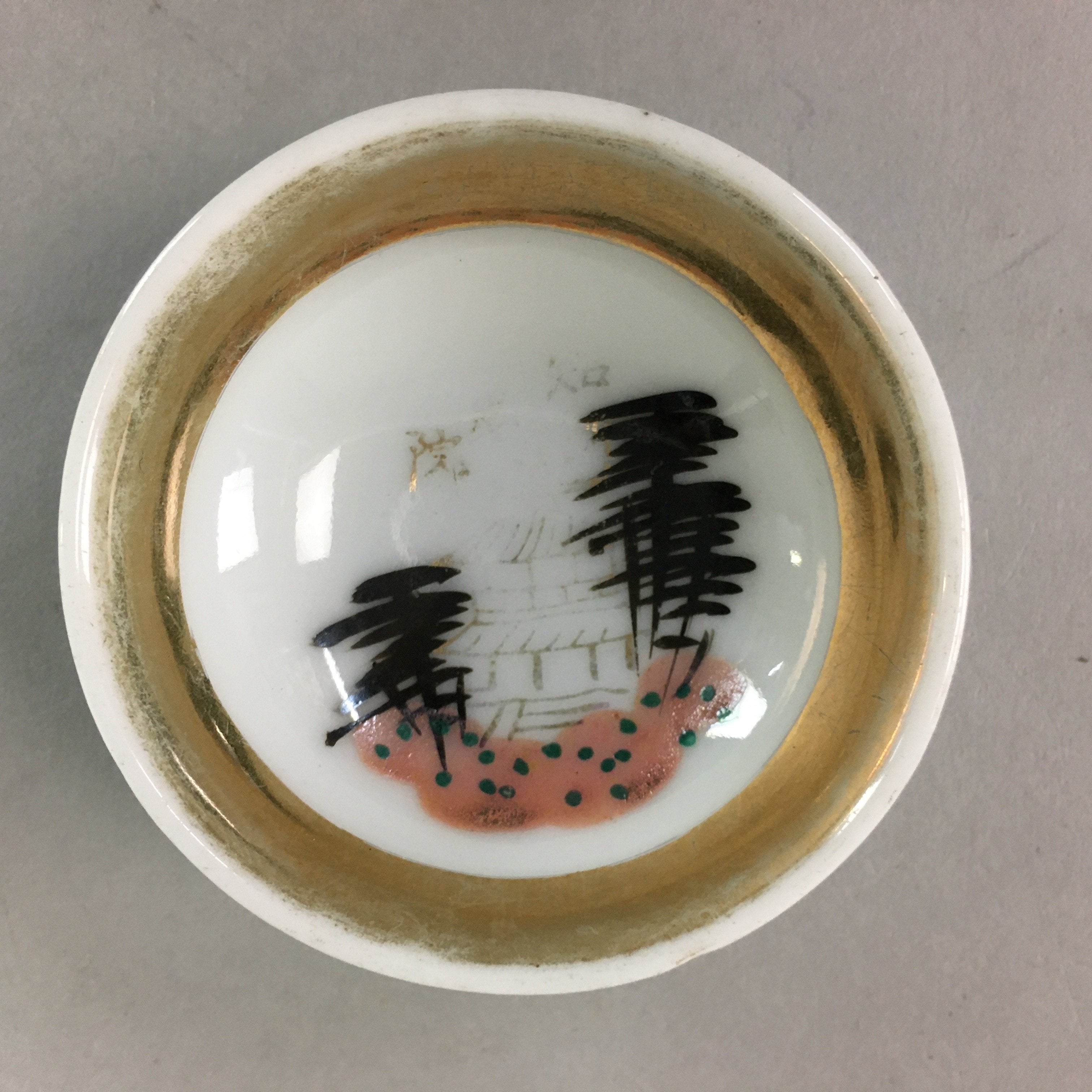Japanese Porcelain Sake Cup Kiyomizu Kyo ware Vtg Guinomi Sakazuki Temple GU685