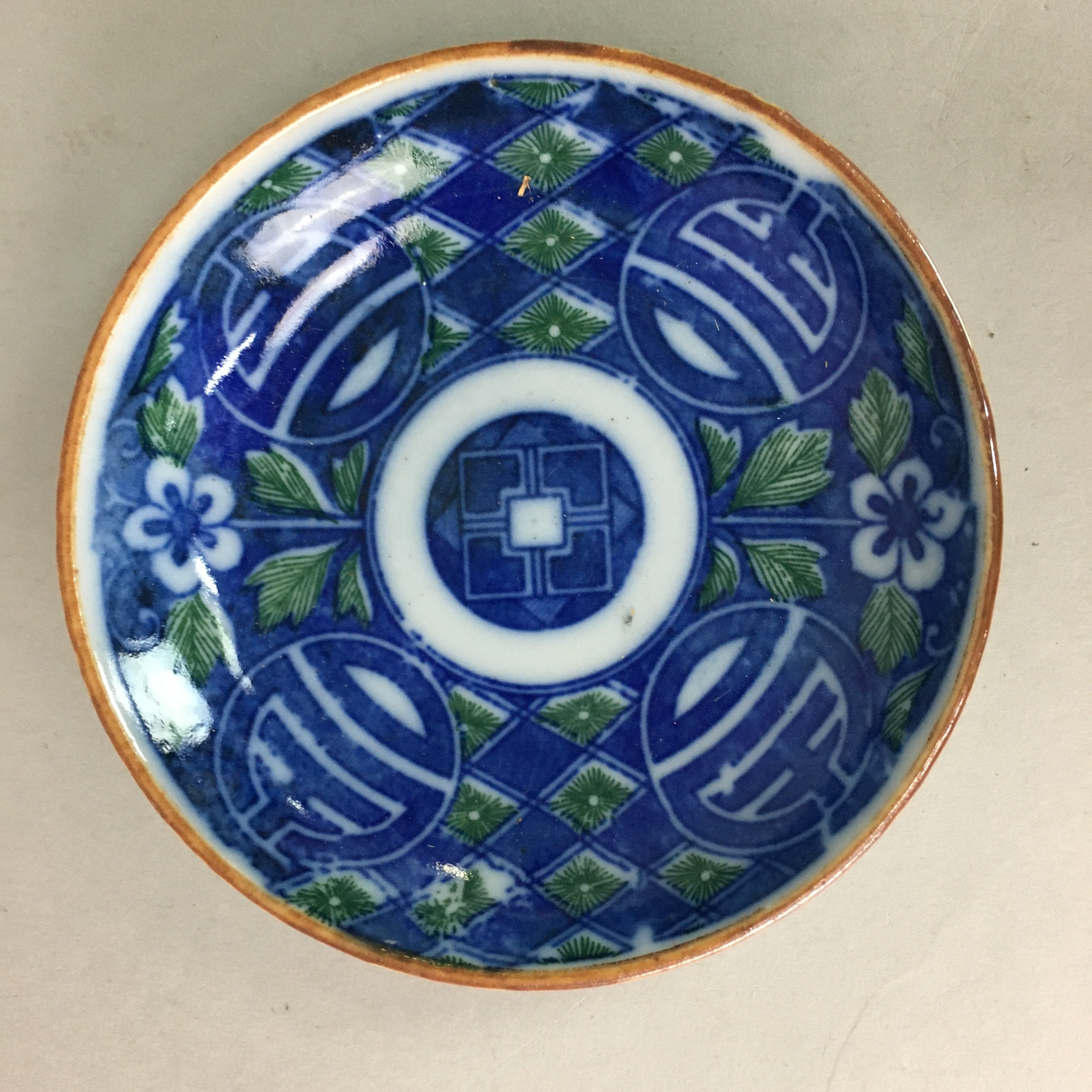 Japanese Porcelain Small Plate Vtg Kozara Blue White Geometric Floral PP104