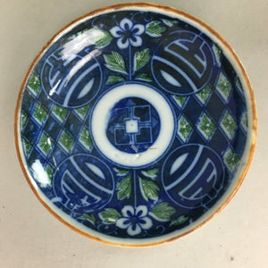 Japanese Porcelain Small Plate Vtg Kozara Blue White Geometric Floral PP105