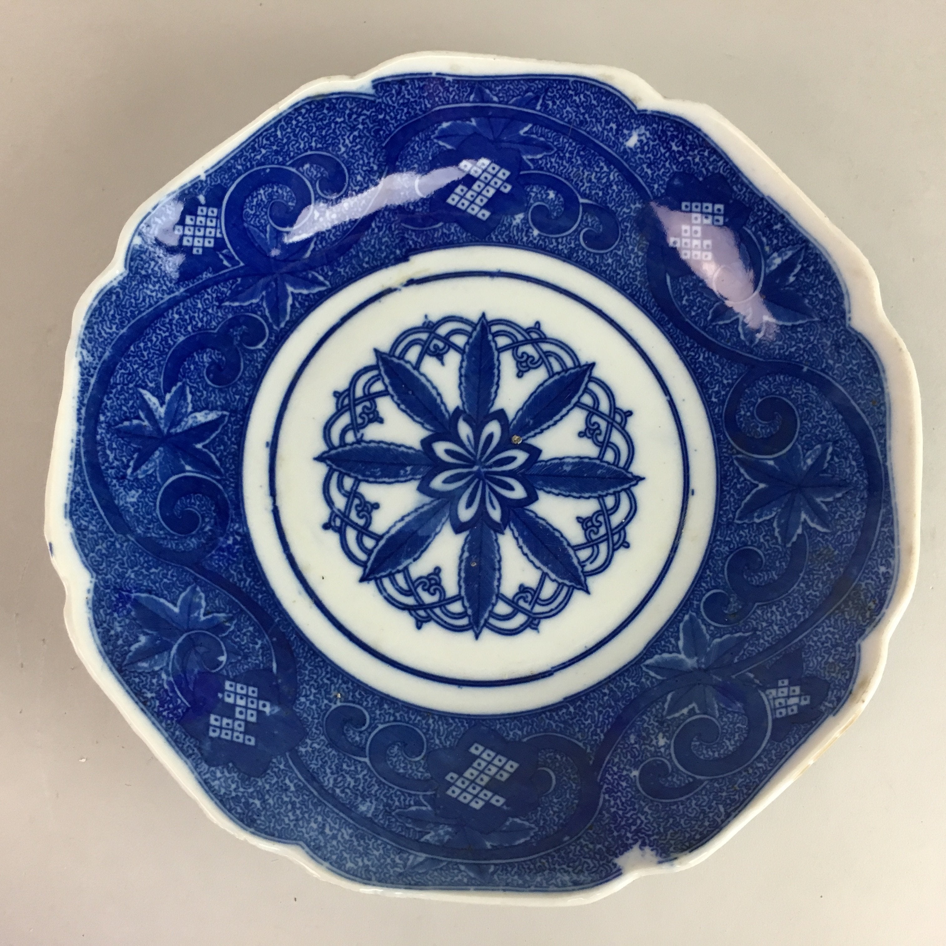 Japanese Sometsuke Porcelain Plate Vtg Floral Flower Vine Leaf Blue White PT492