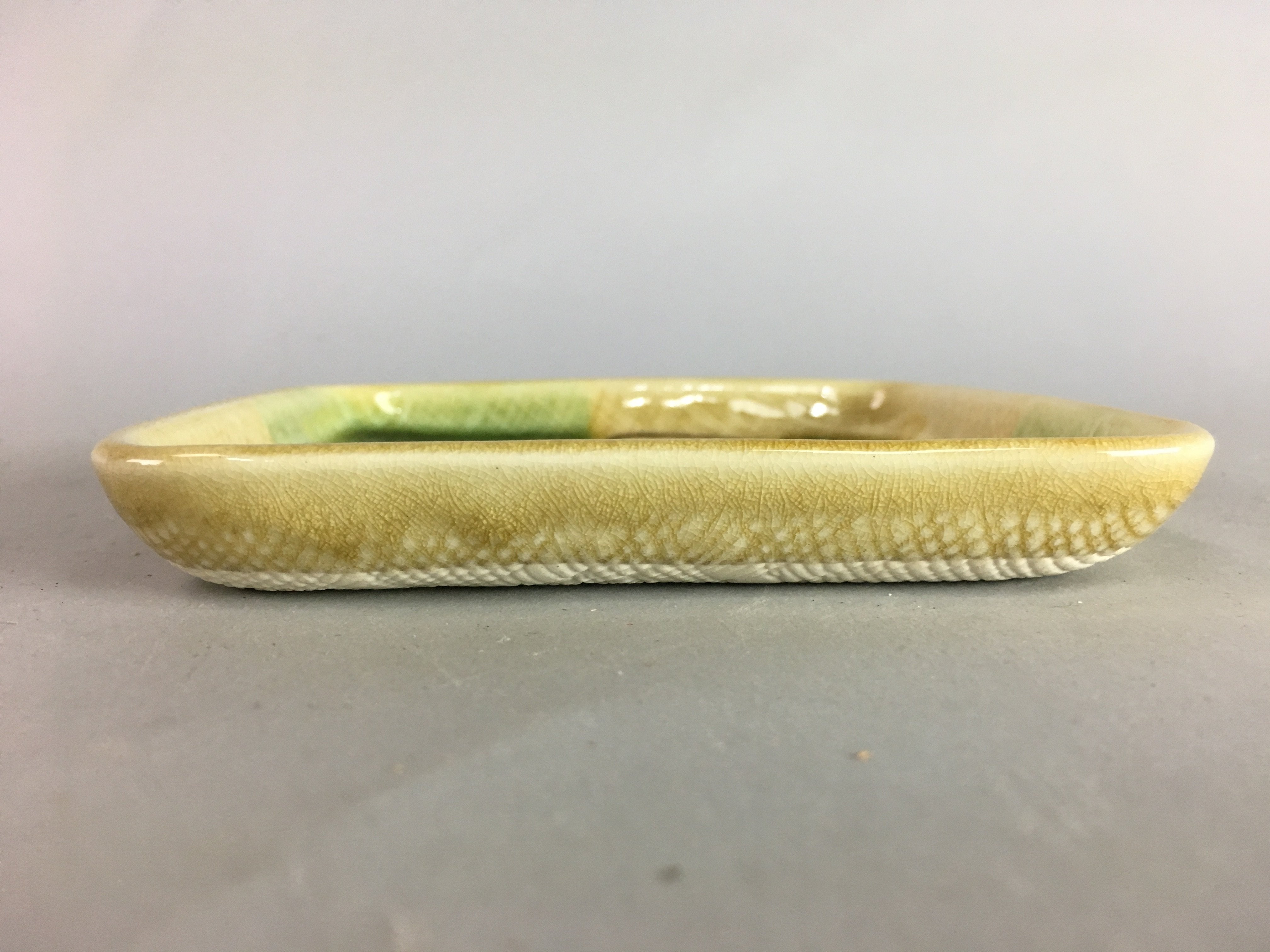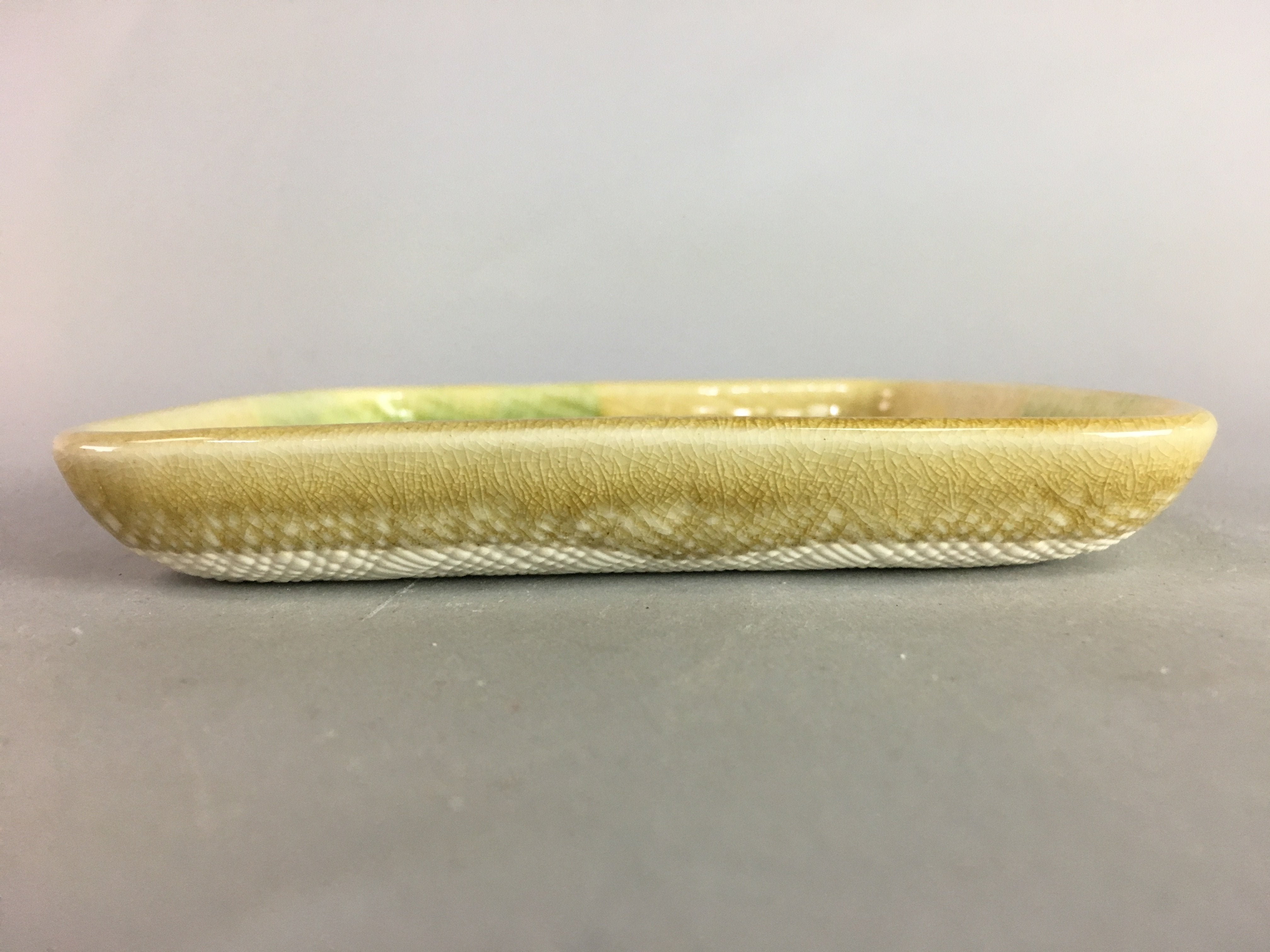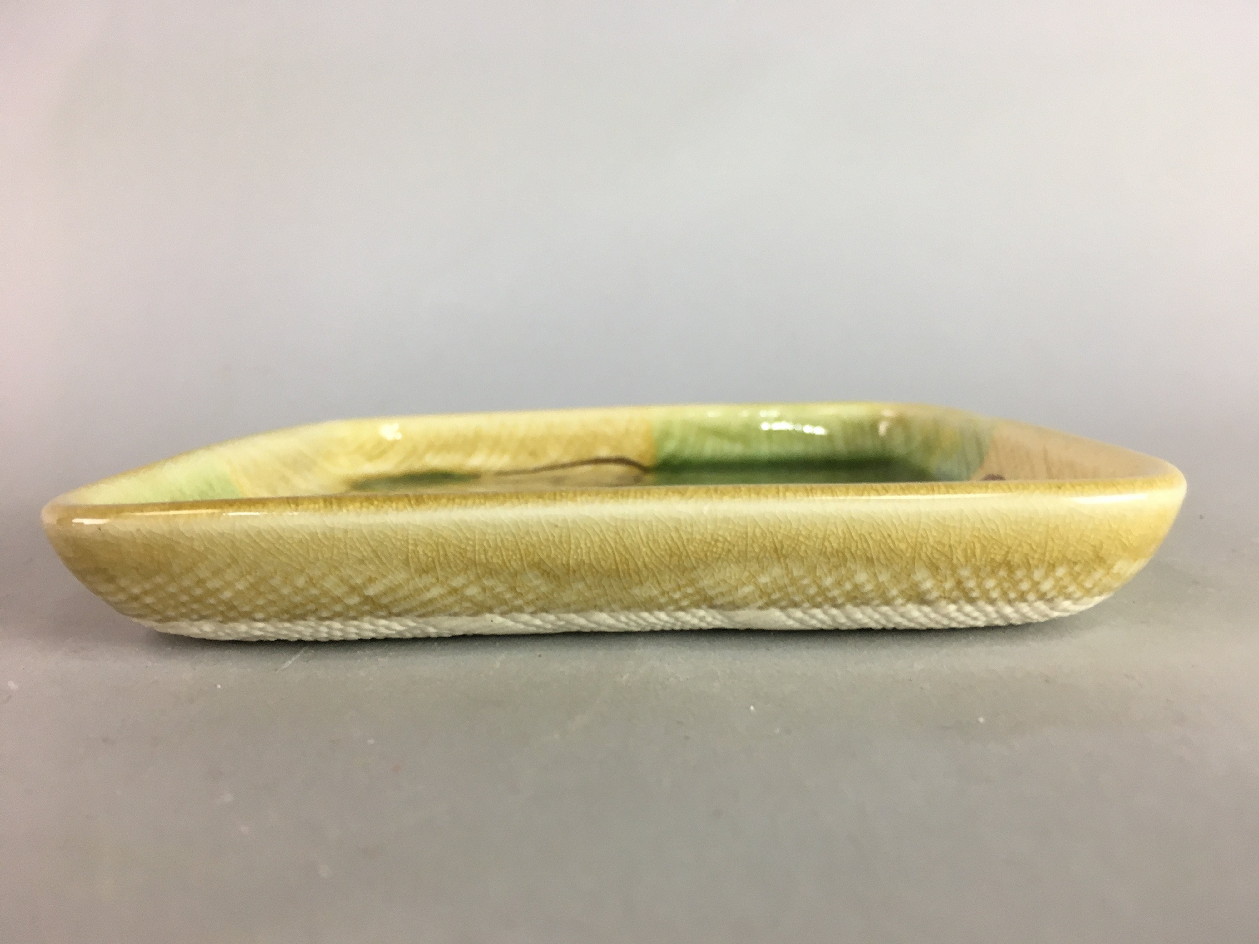Japanese Ceramic Square Plate Vtg Ki Seto ware Pottery Floral Green QT13