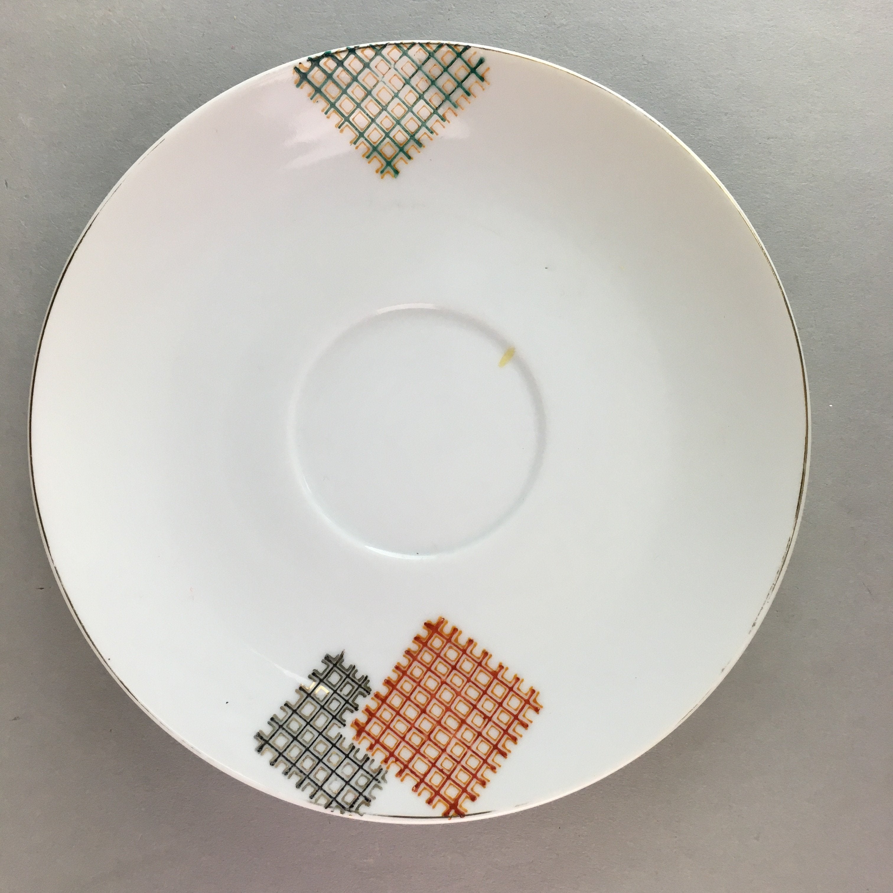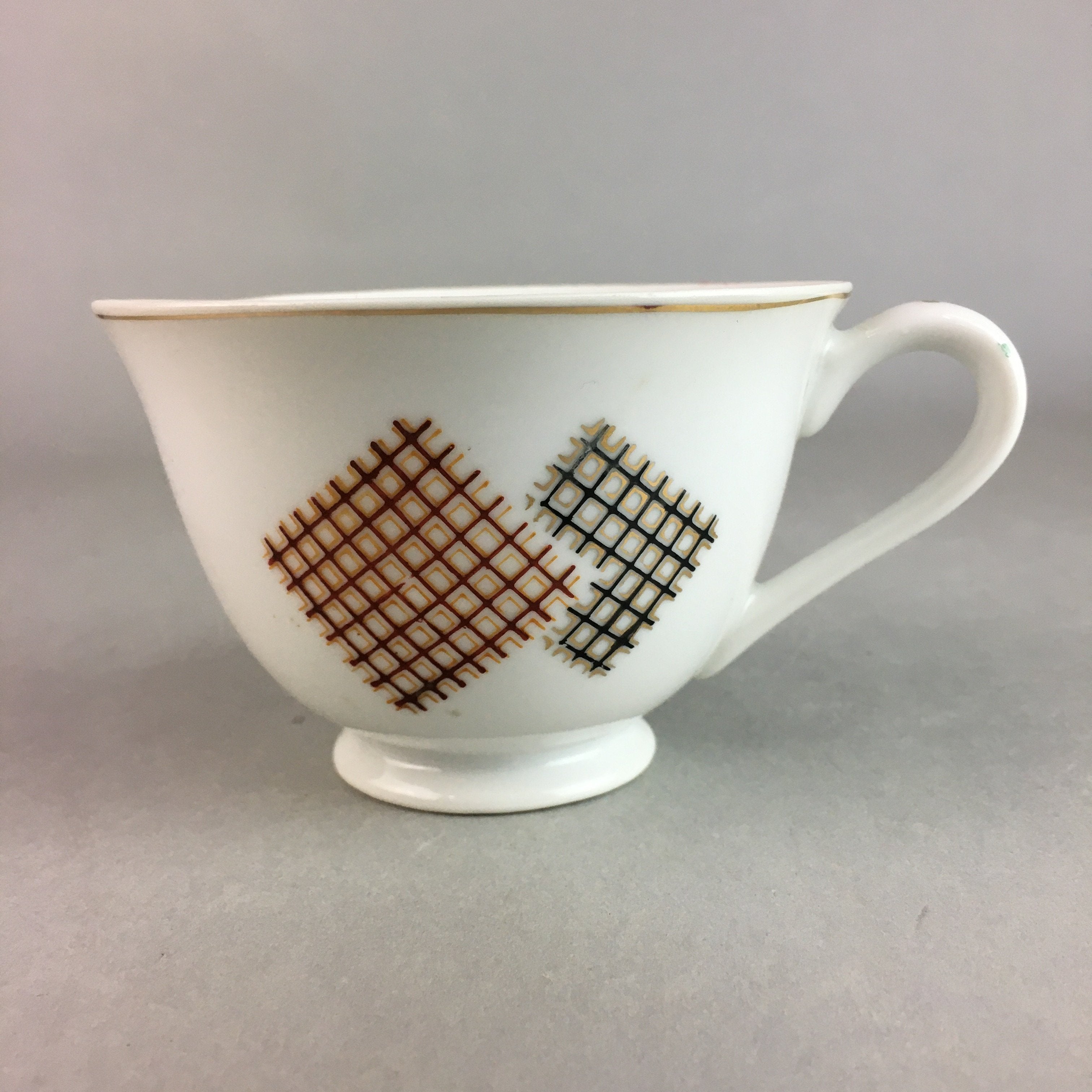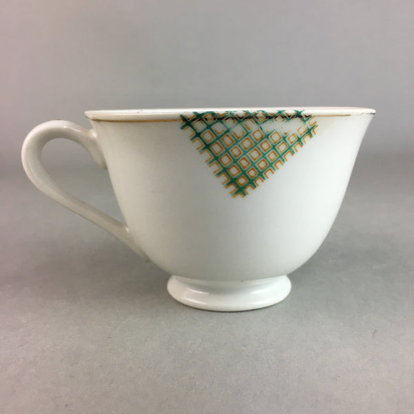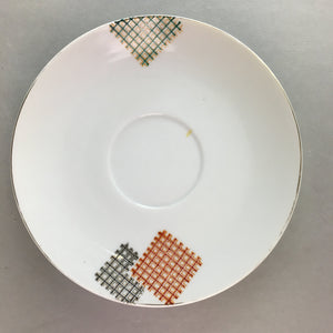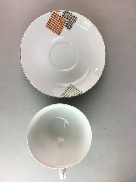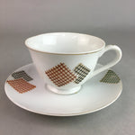Japanese Porcelain Teacup Mug Saucer Vtg Yunomi Plate Set Plaid PP314