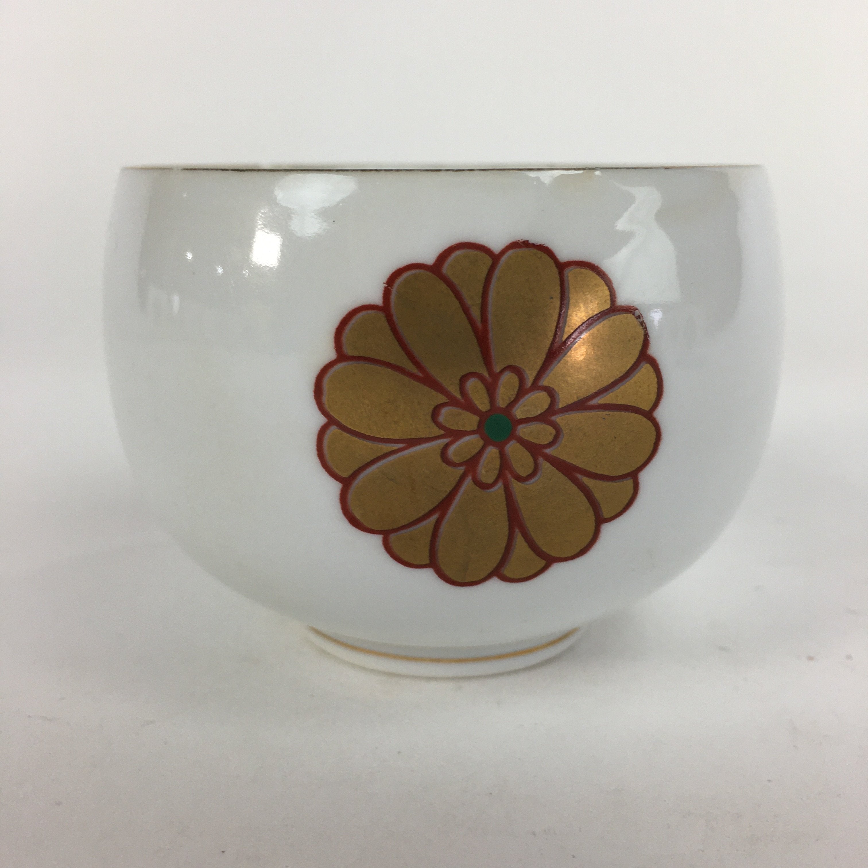 Japanese Porcelain Teacup Yunomi Vtg Chrysanthemum White Sencha TC200