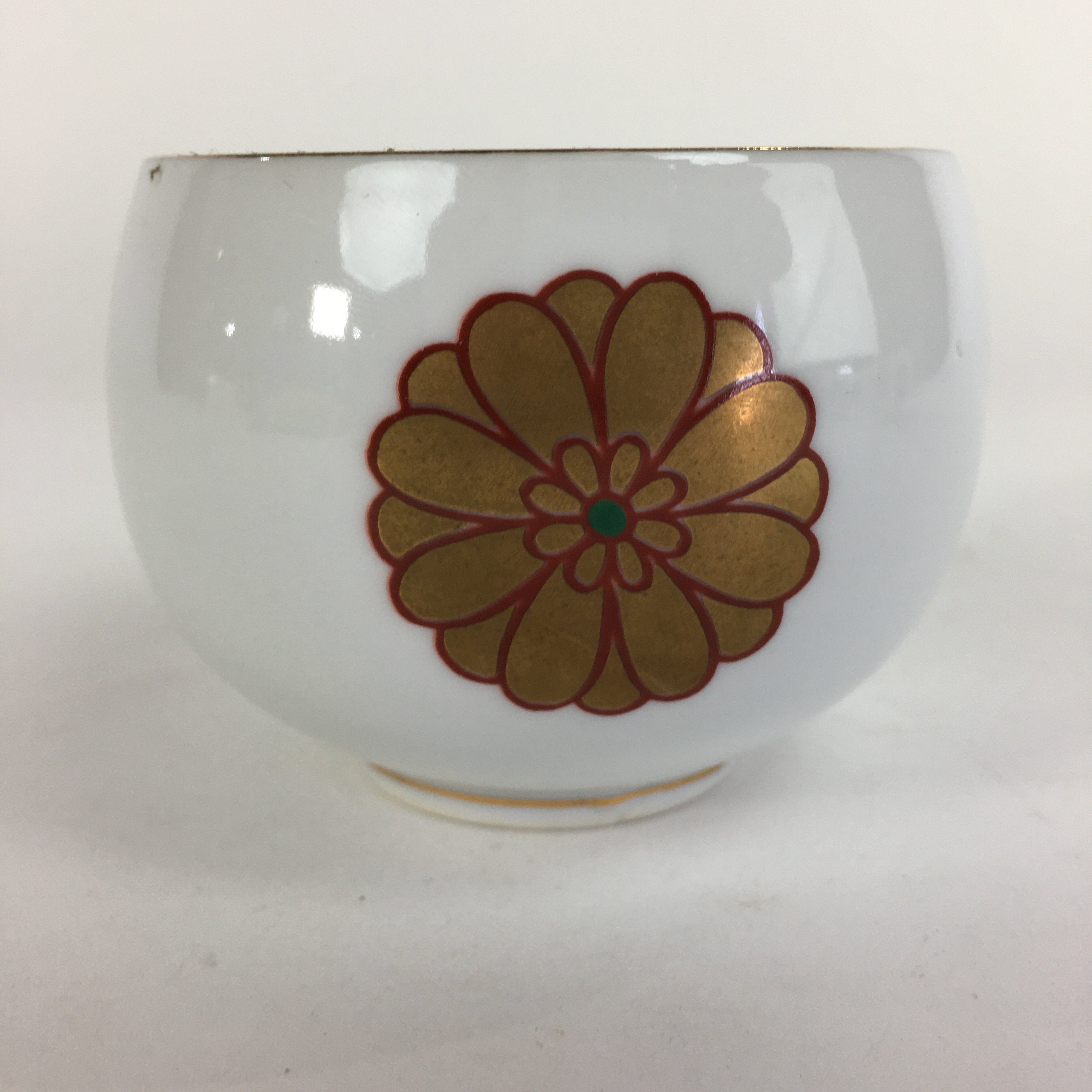 Japanese Porcelain Teacup Yunomi Vtg Chrysanthemum White Sencha TC204