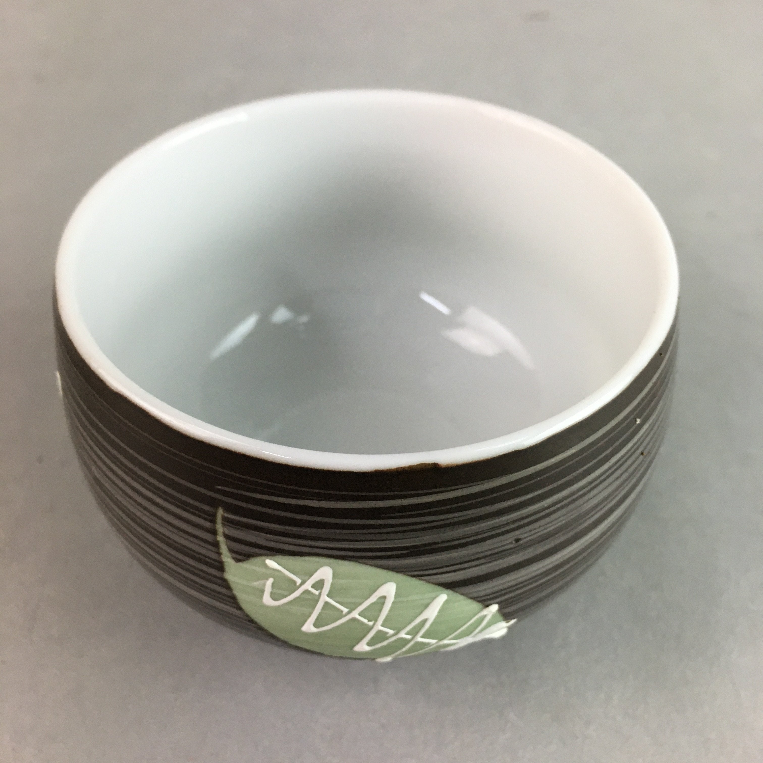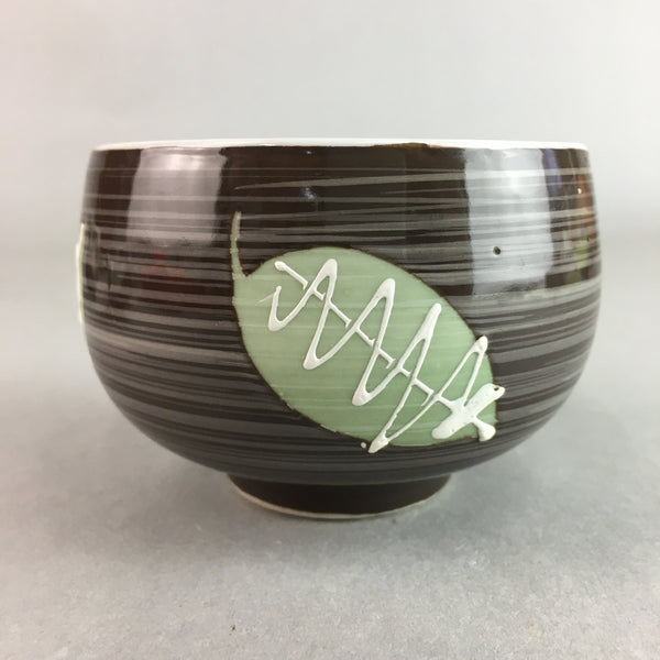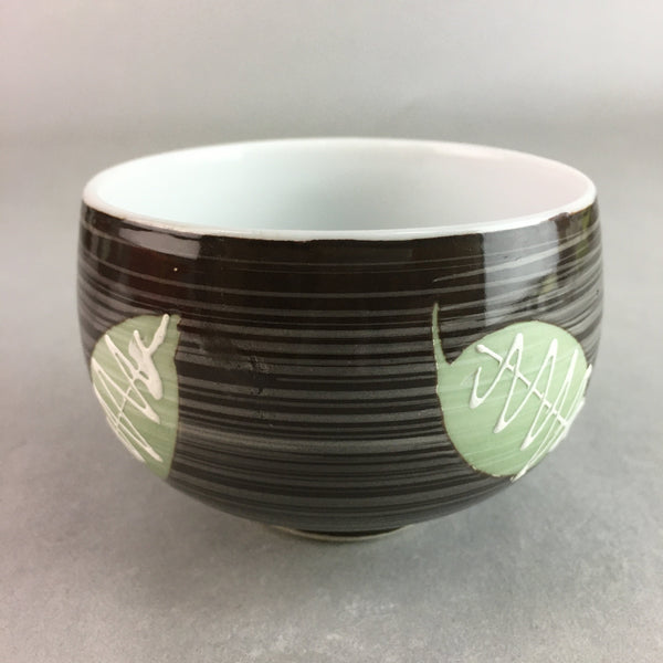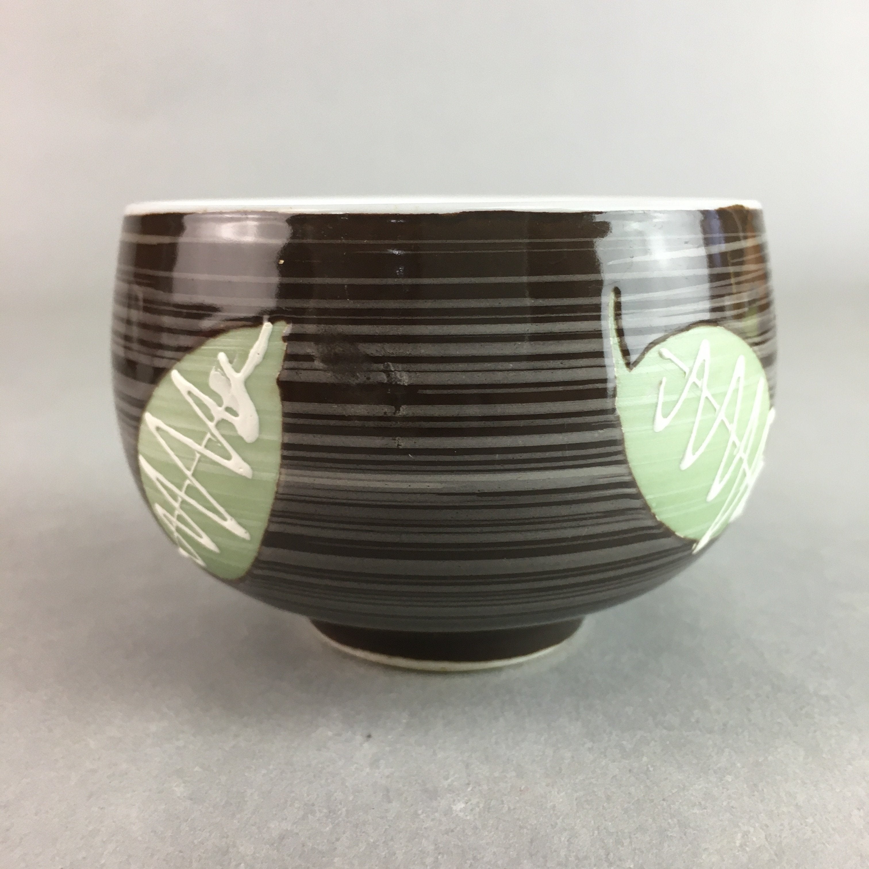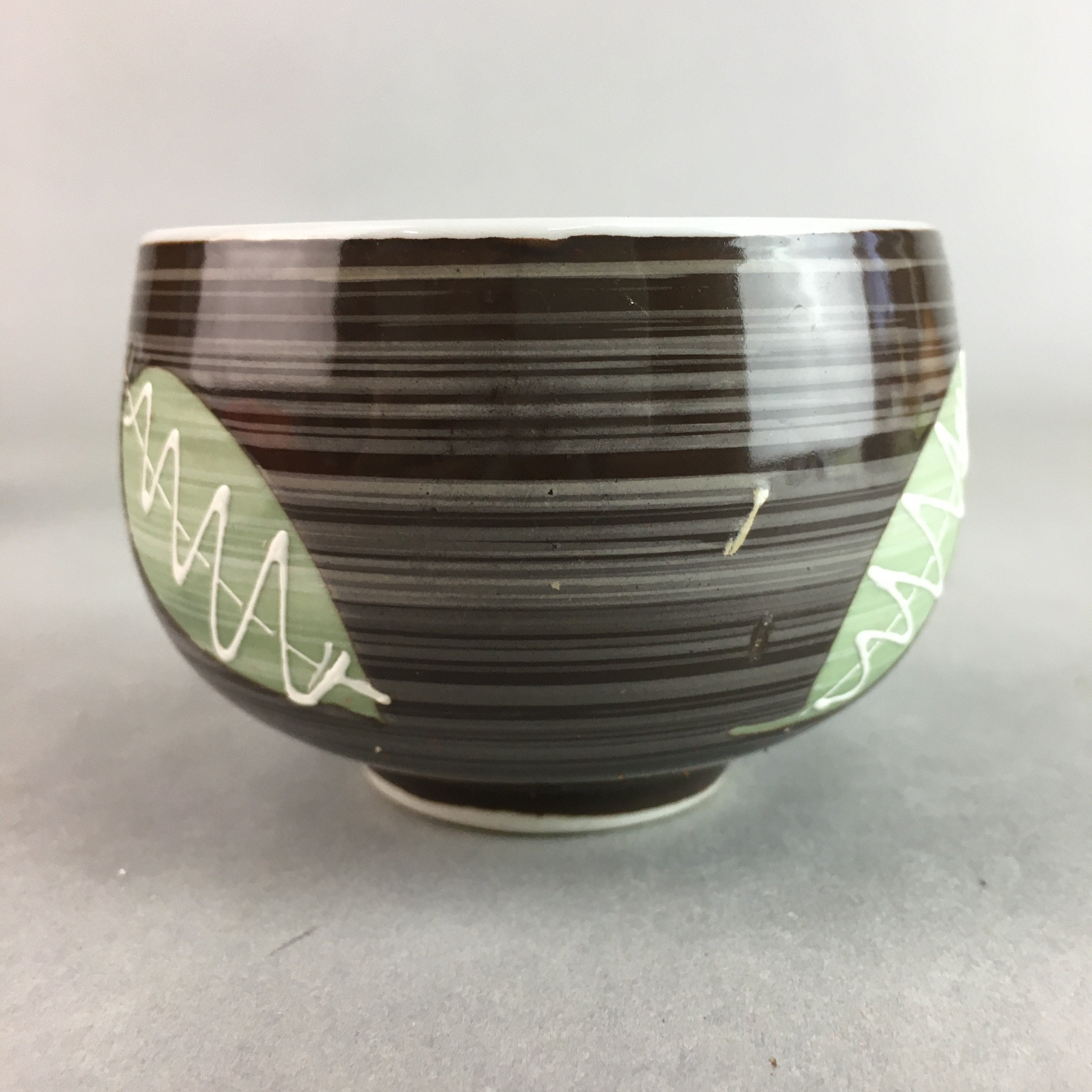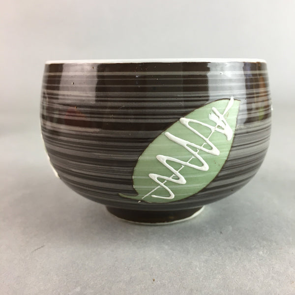 Japanese Porcelain Teacup Yunomi Vtg Sencha Brown Green Leaf Stripe TC136
