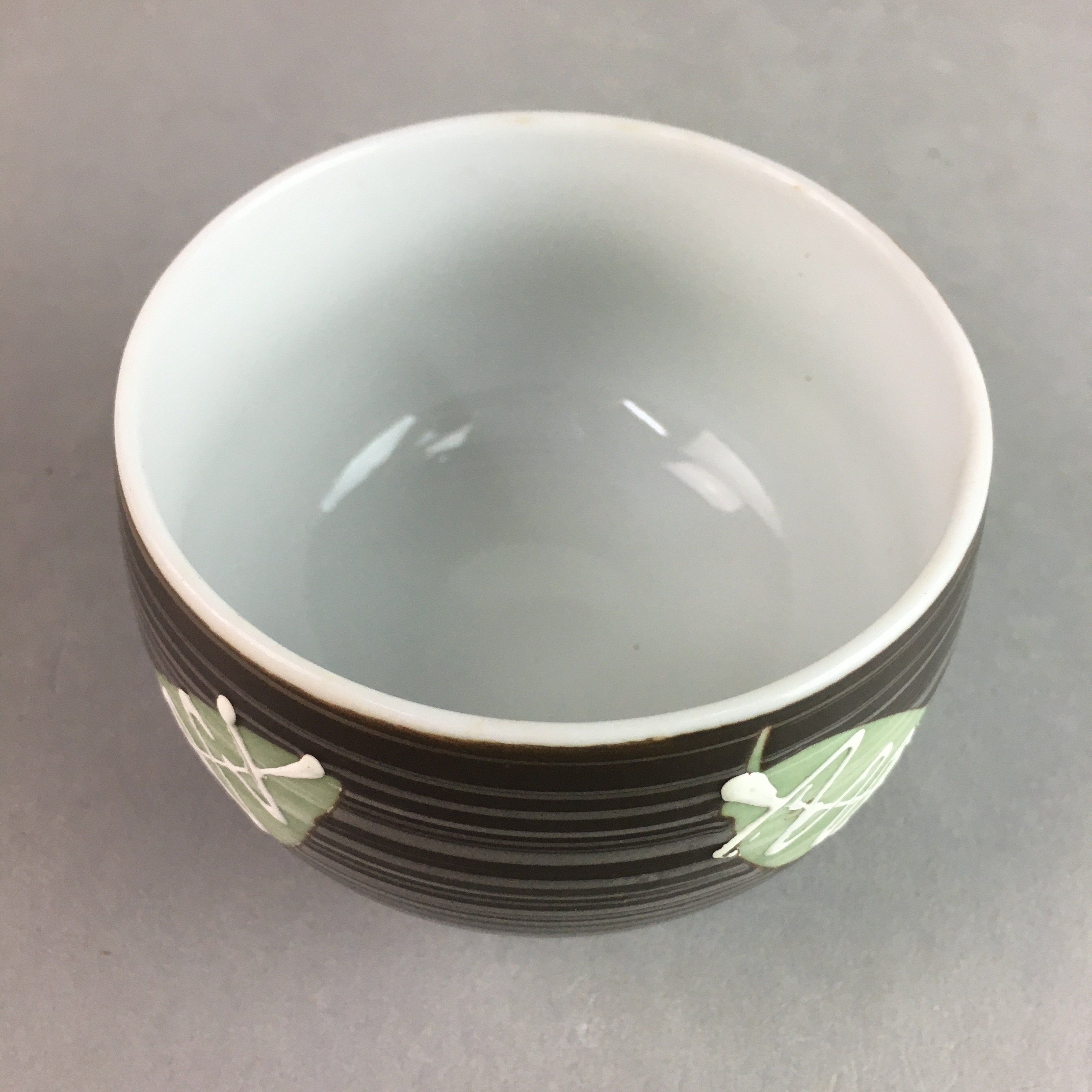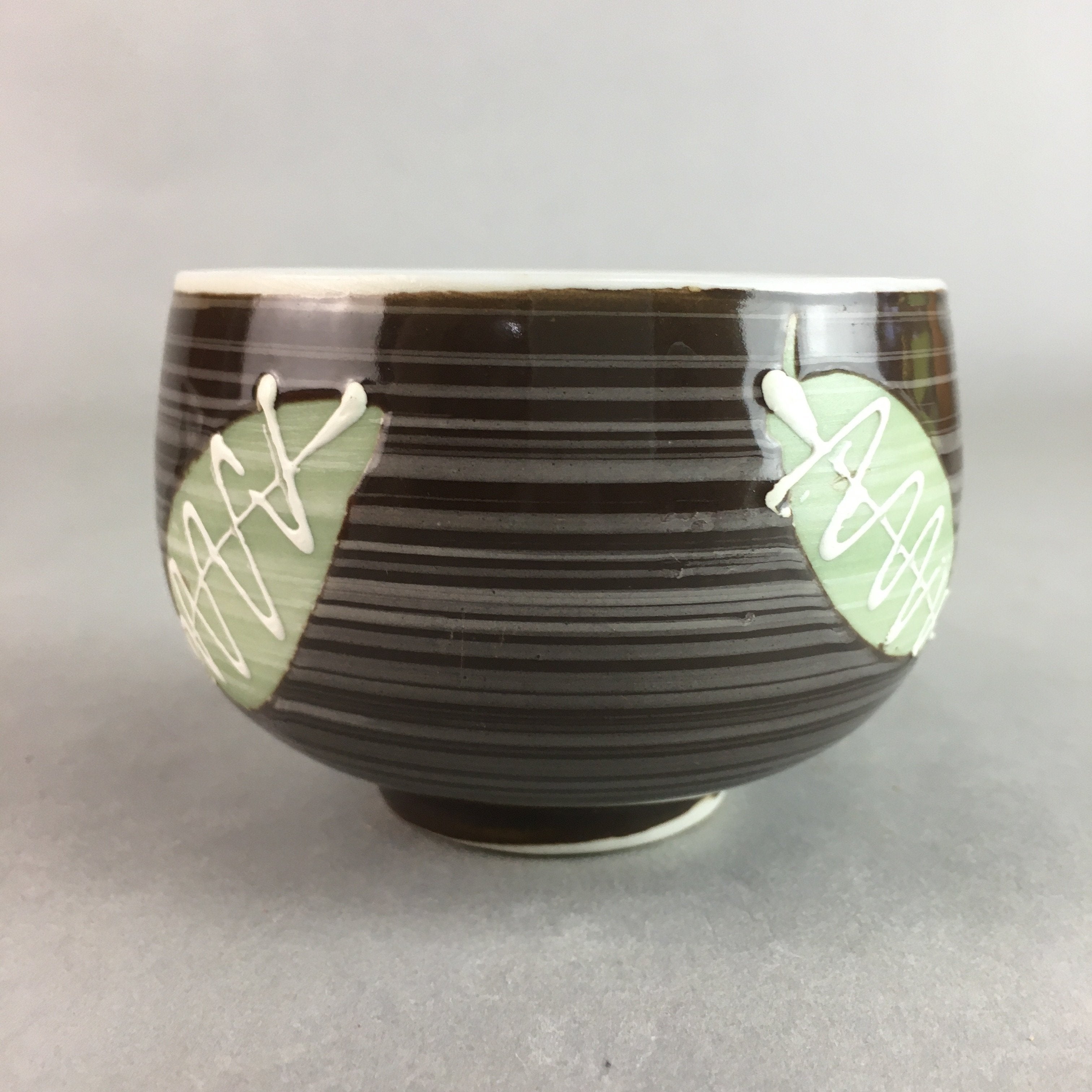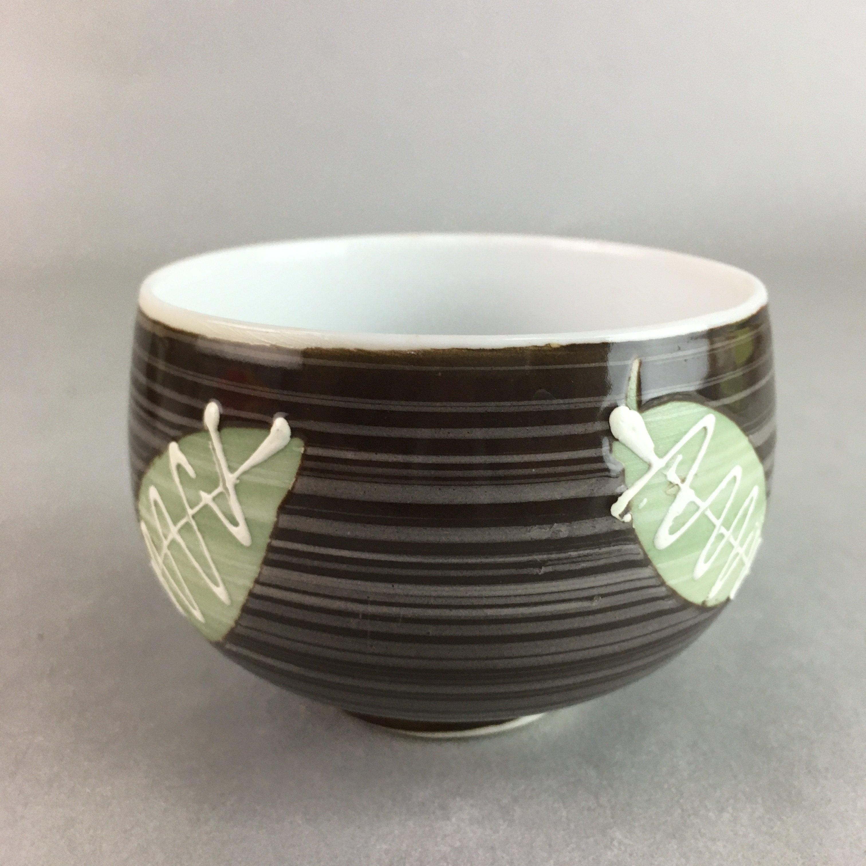 Japanese Porcelain Teacup Yunomi Vtg Sencha Brown Green Leaf Stripe TC137