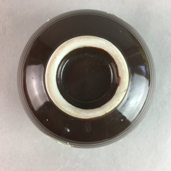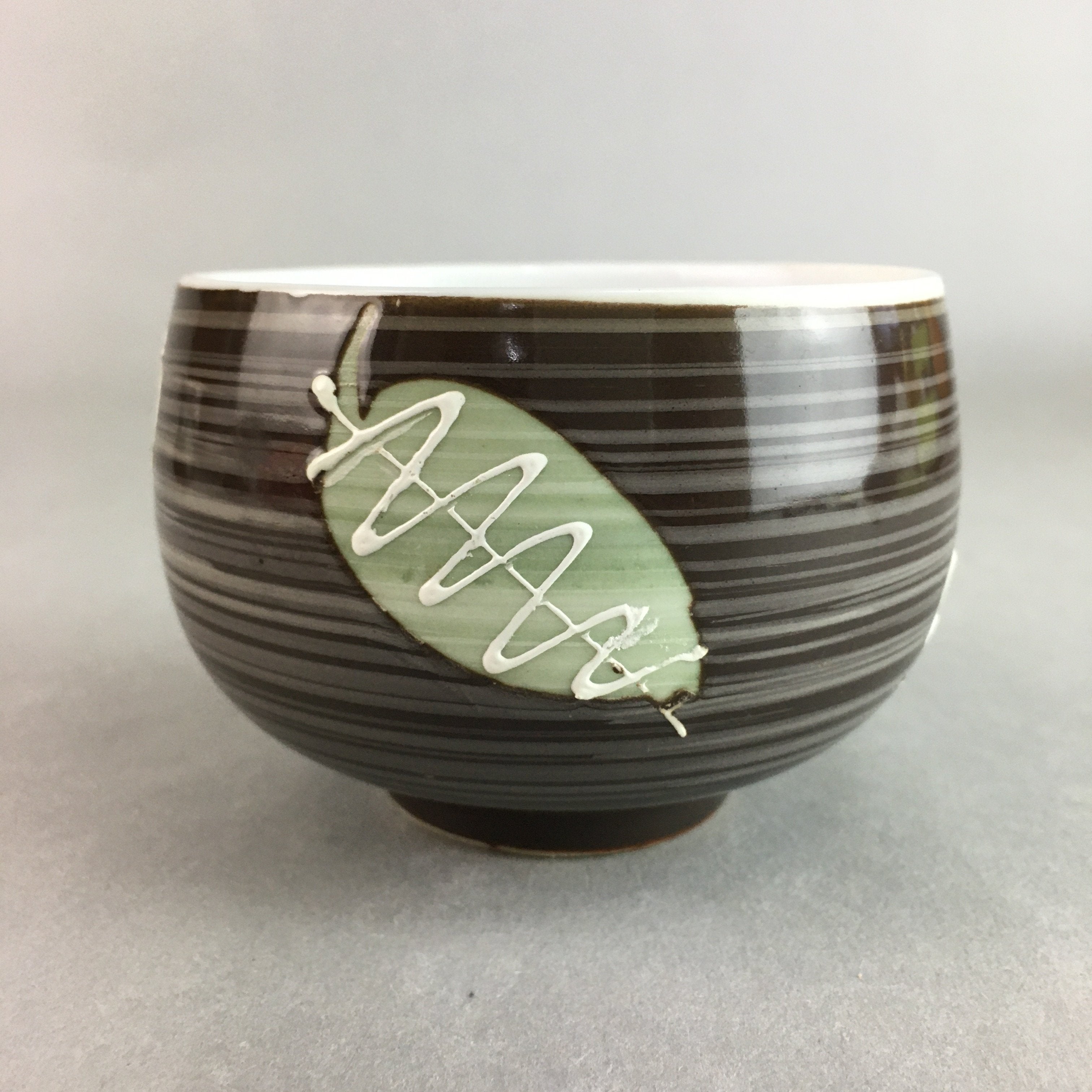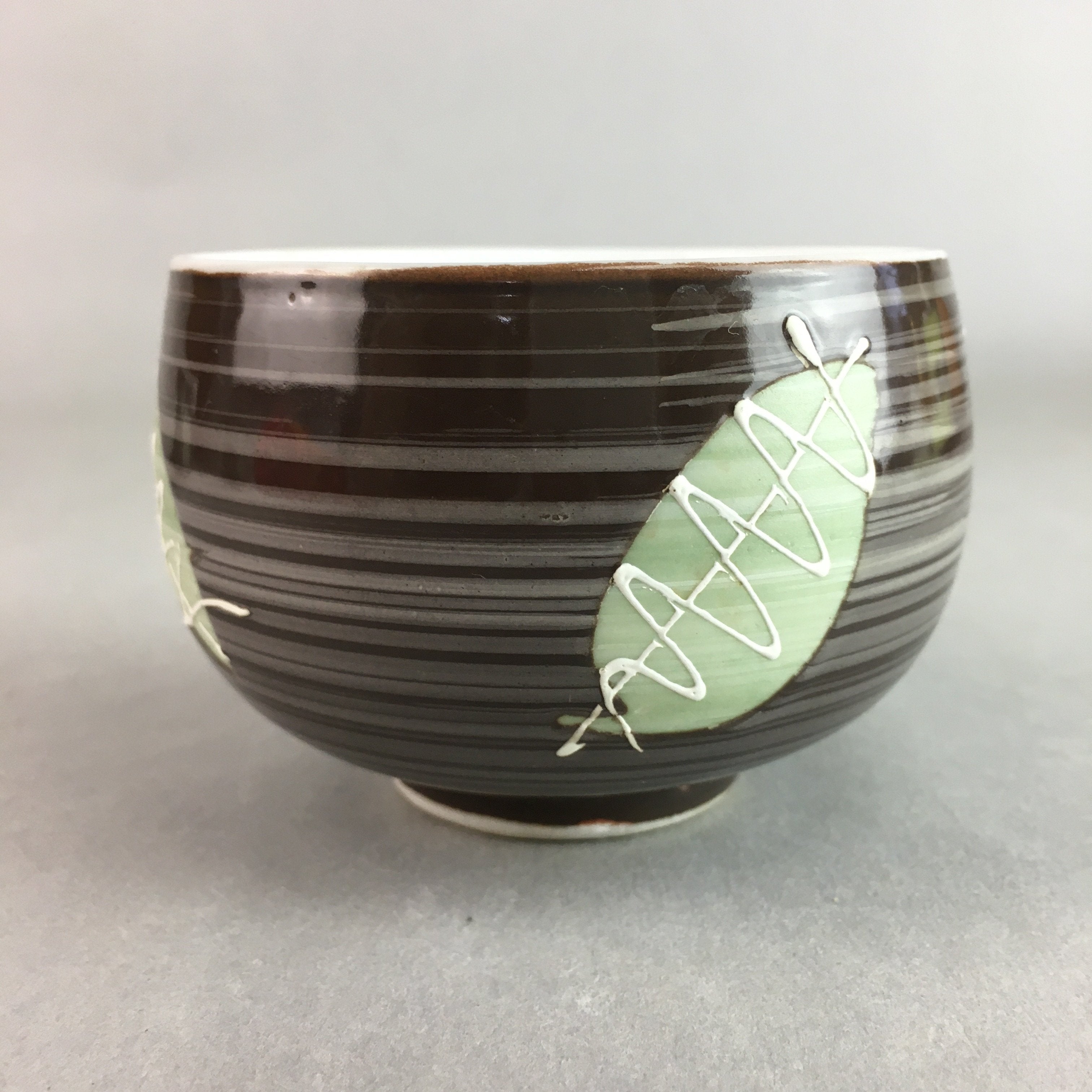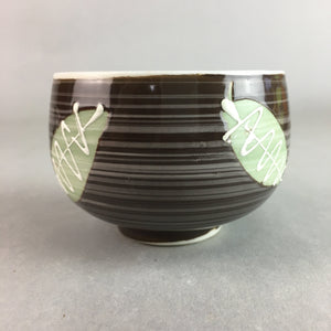 Japanese Porcelain Teacup Yunomi Vtg Sencha Brown Green Leaf Stripe TC137