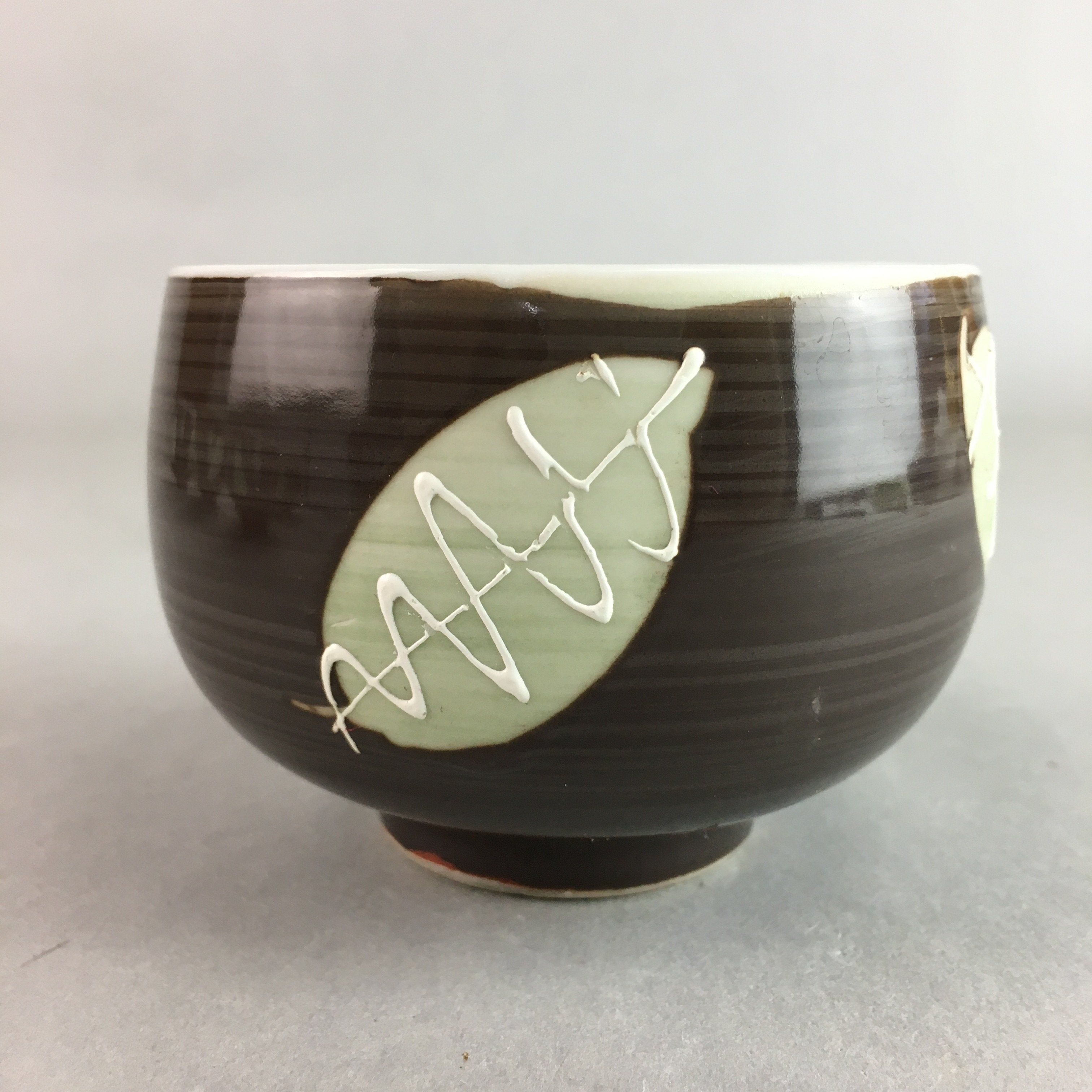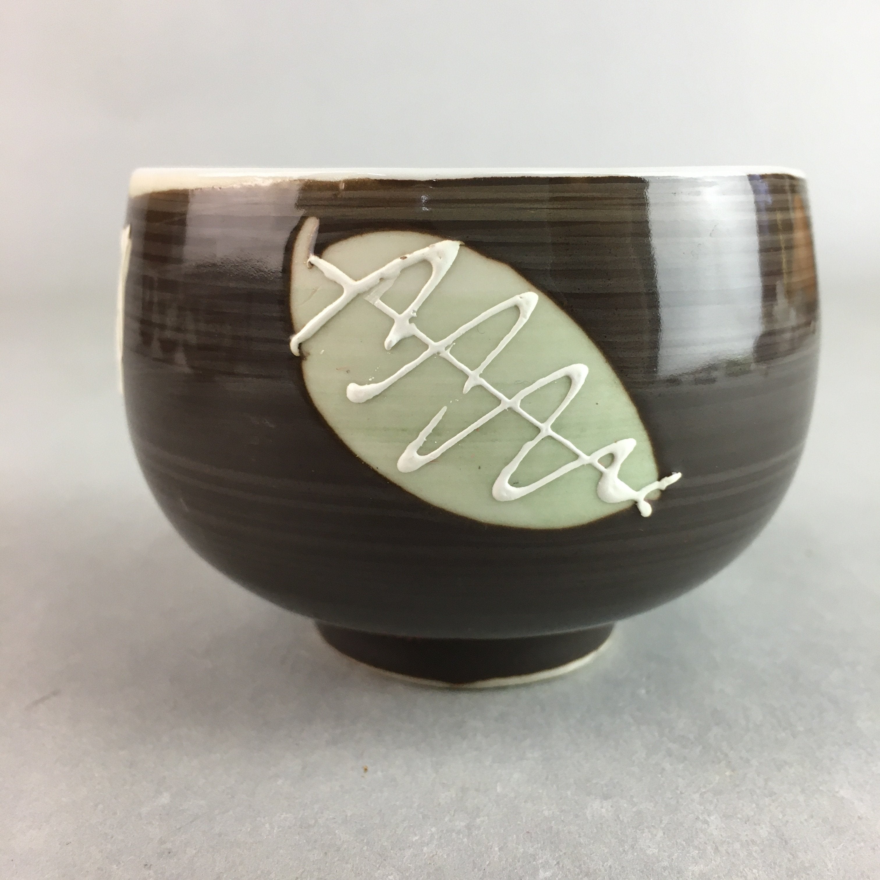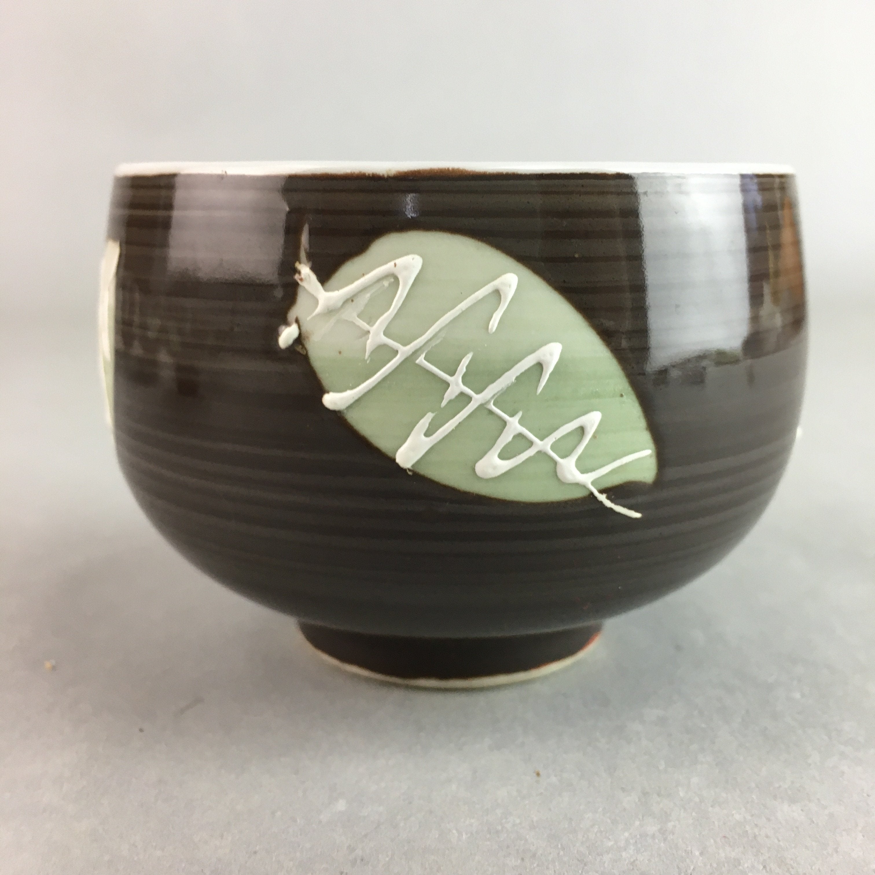 Japanese Porcelain Teacup Yunomi Vtg Sencha Brown Green Leaf Stripe TC140
