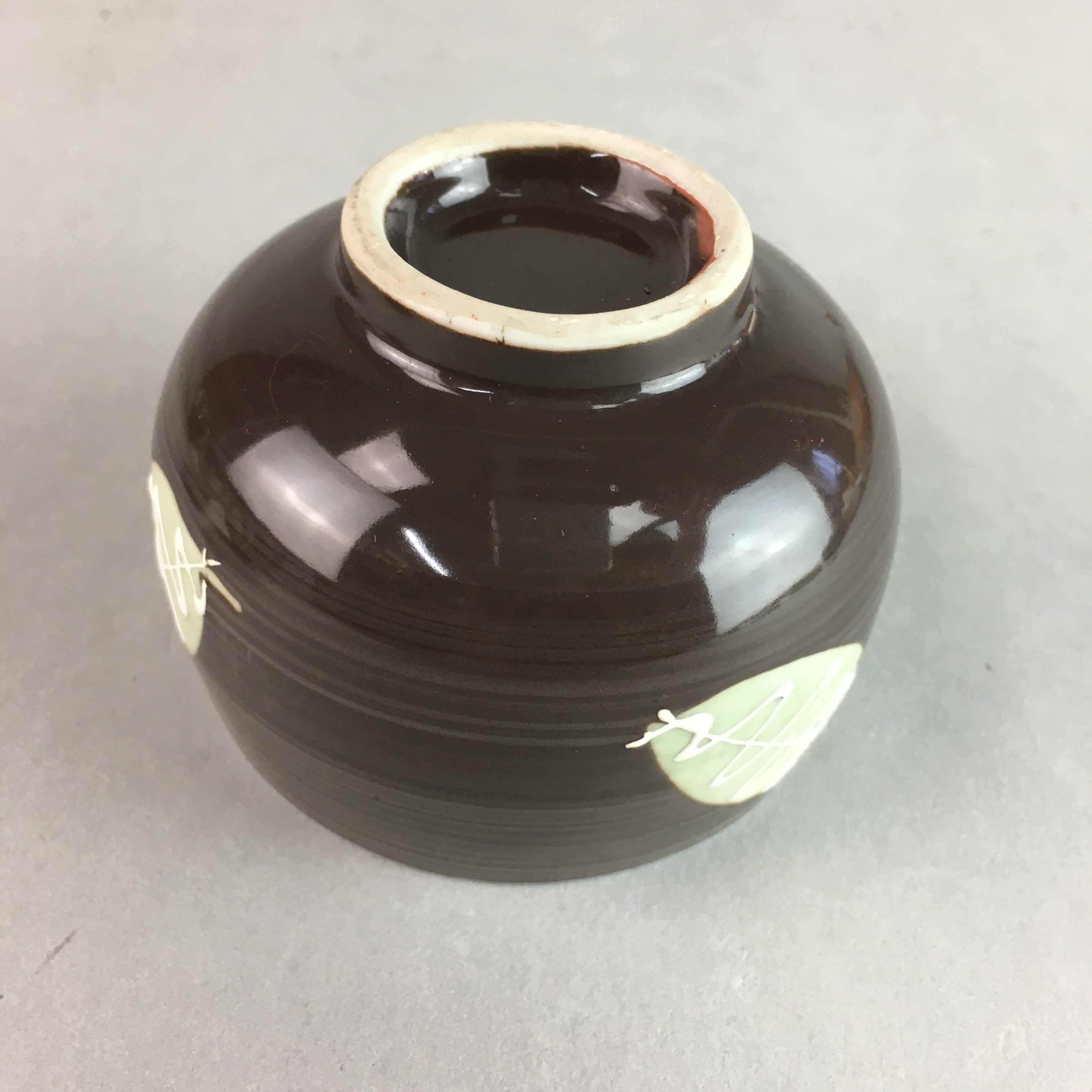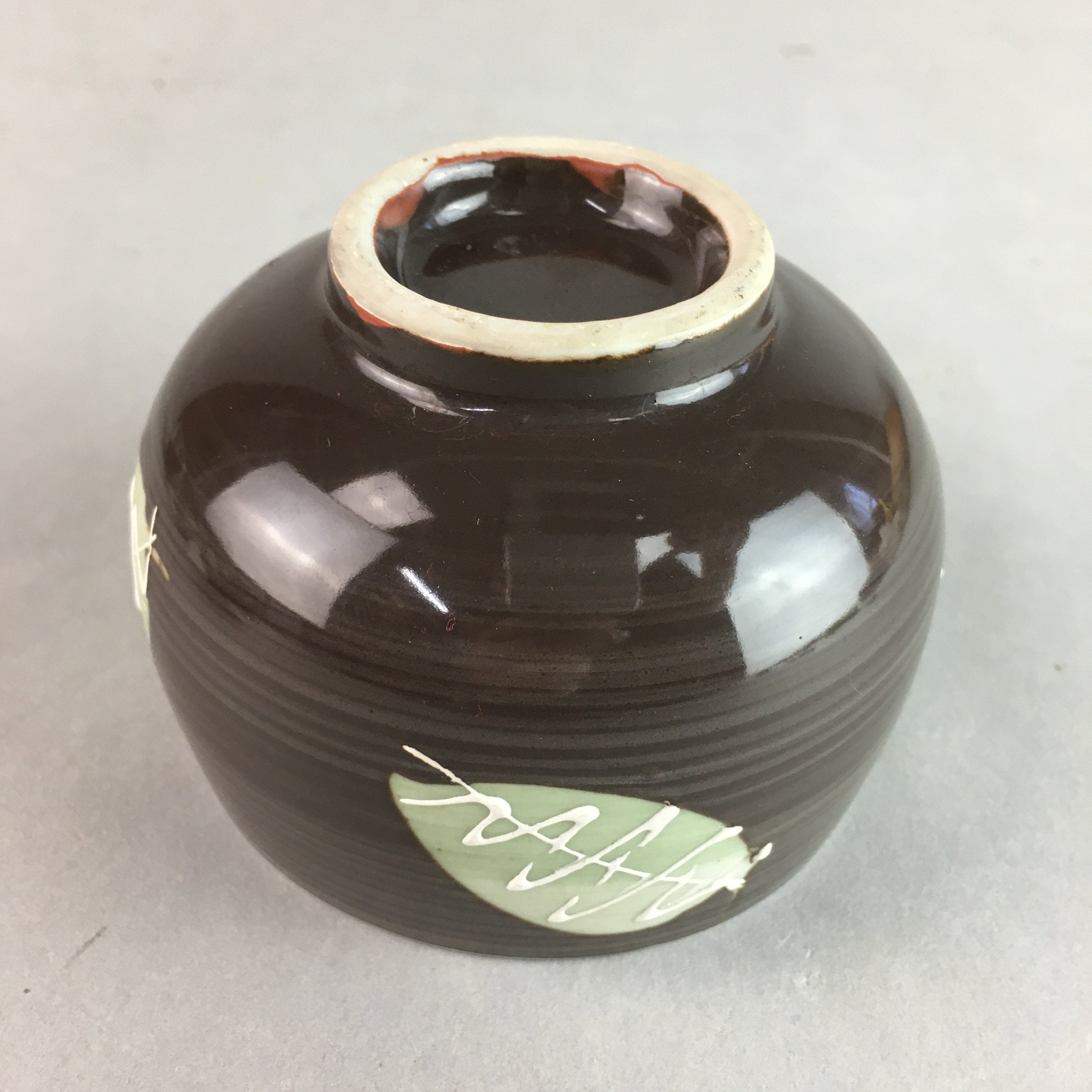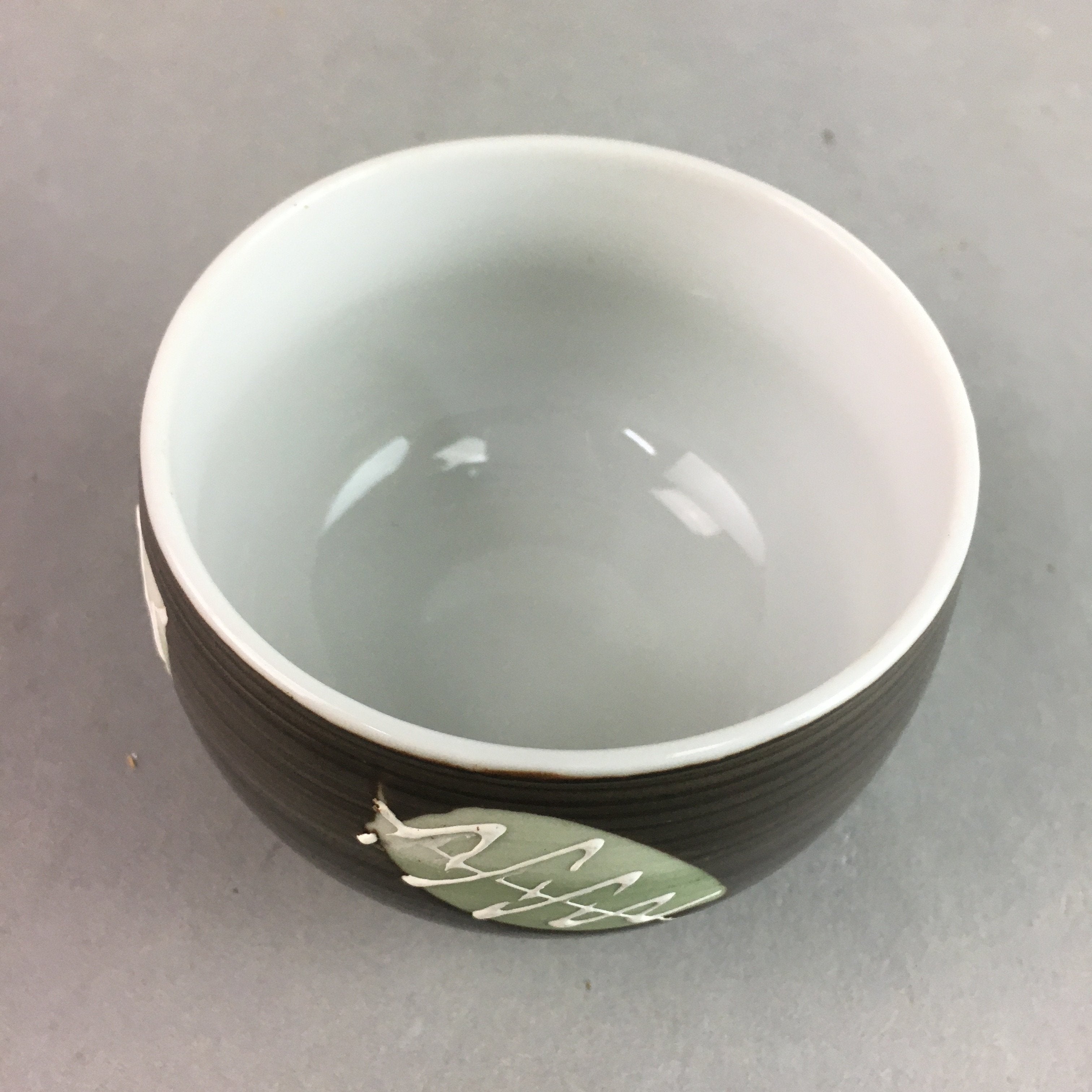 Japanese Porcelain Teacup Yunomi Vtg Sencha Brown Green Leaf Stripe TC140