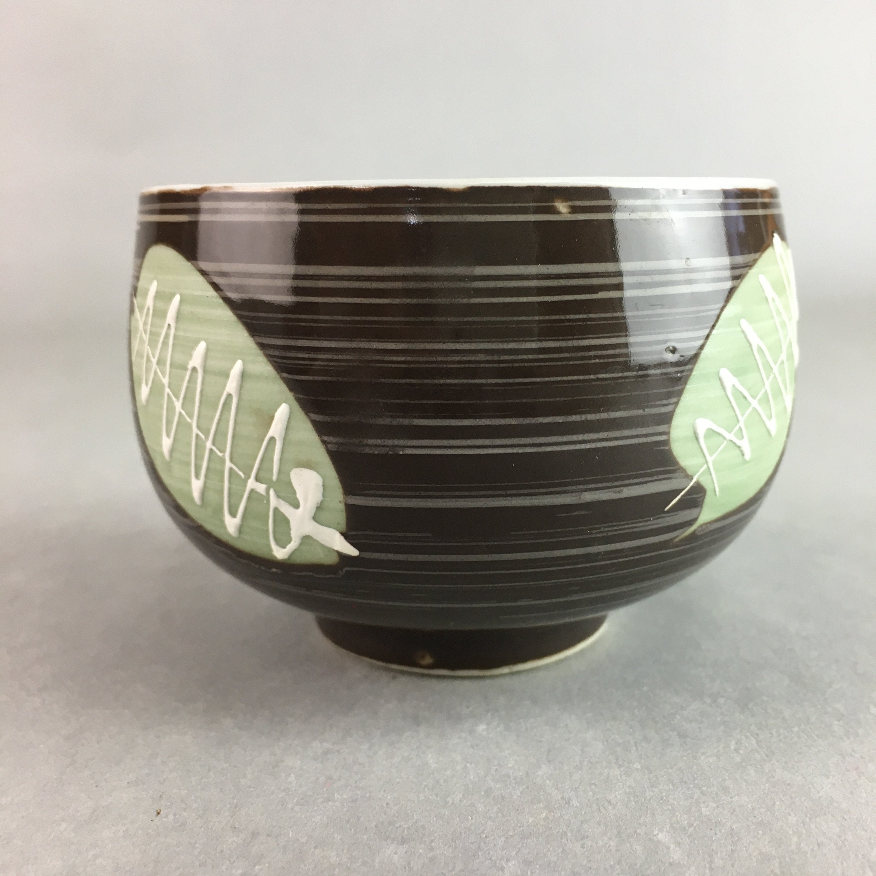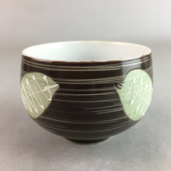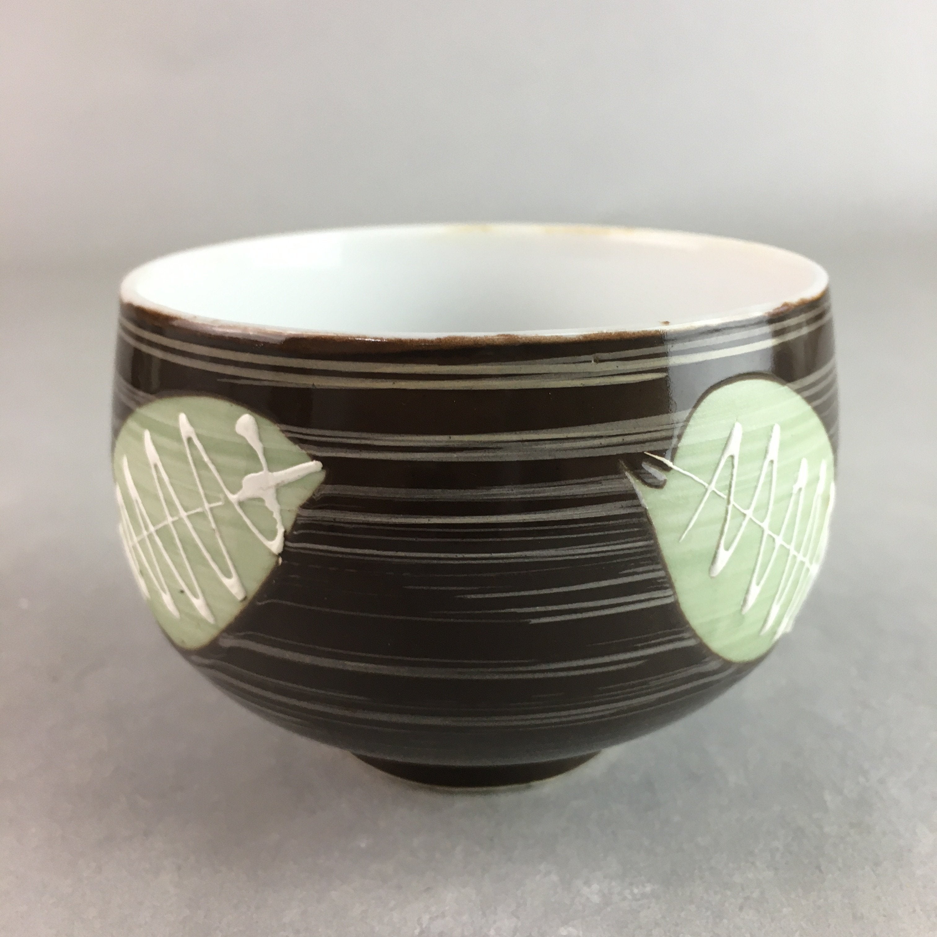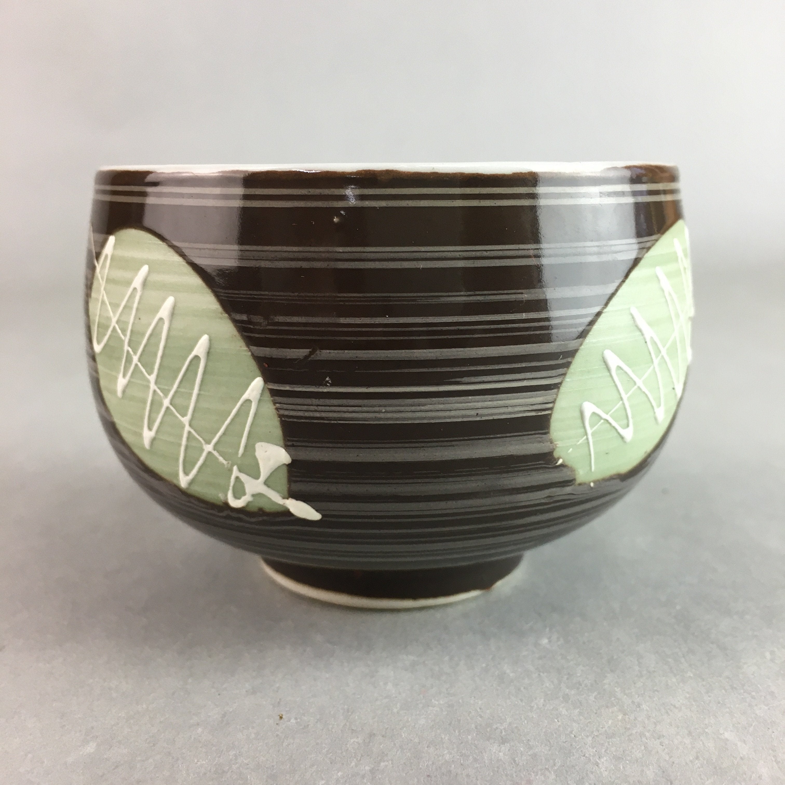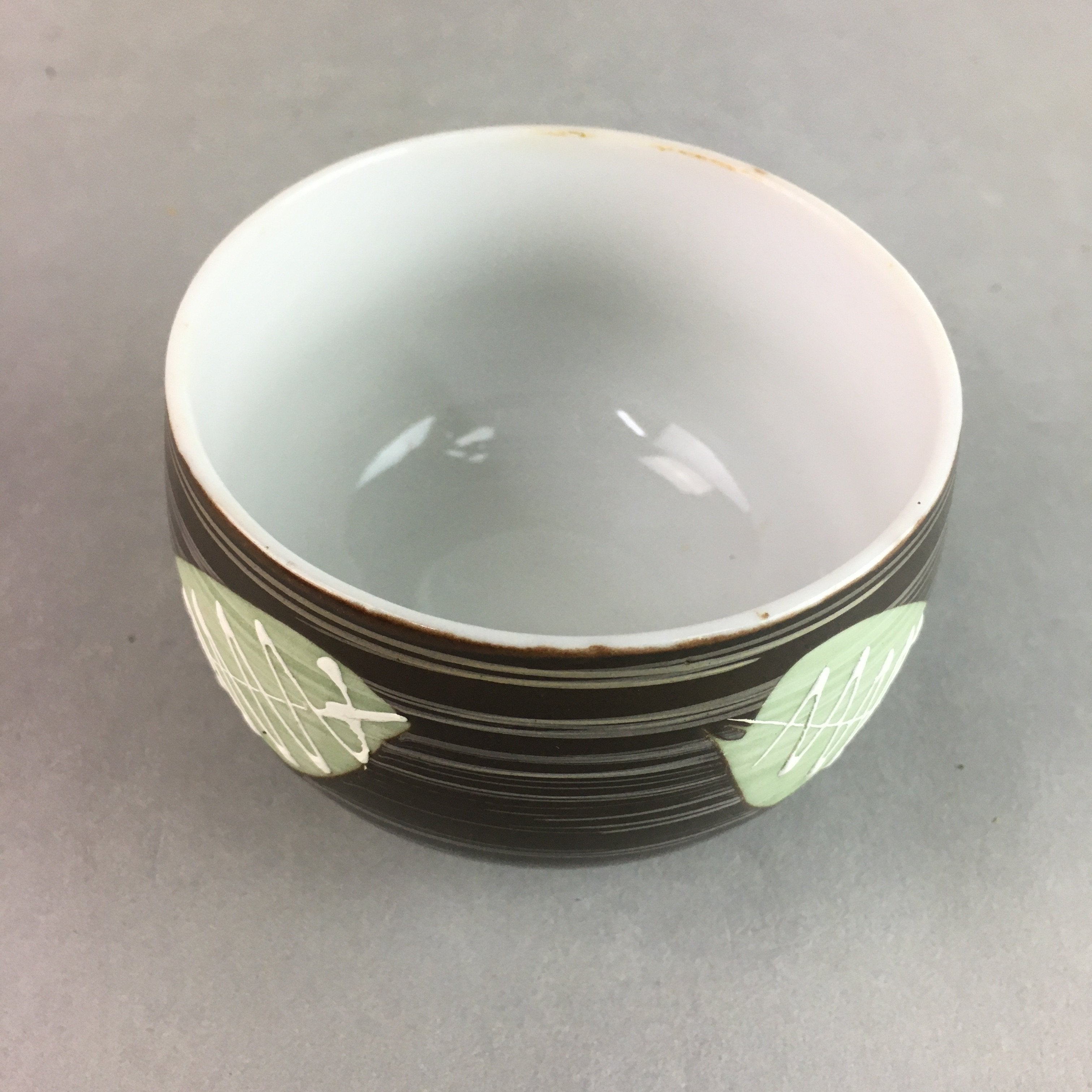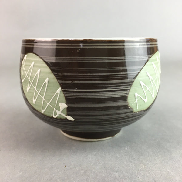 Japanese Porcelain Teacup Yunomi Vtg Sencha Brown Green Leaf Stripe TC142