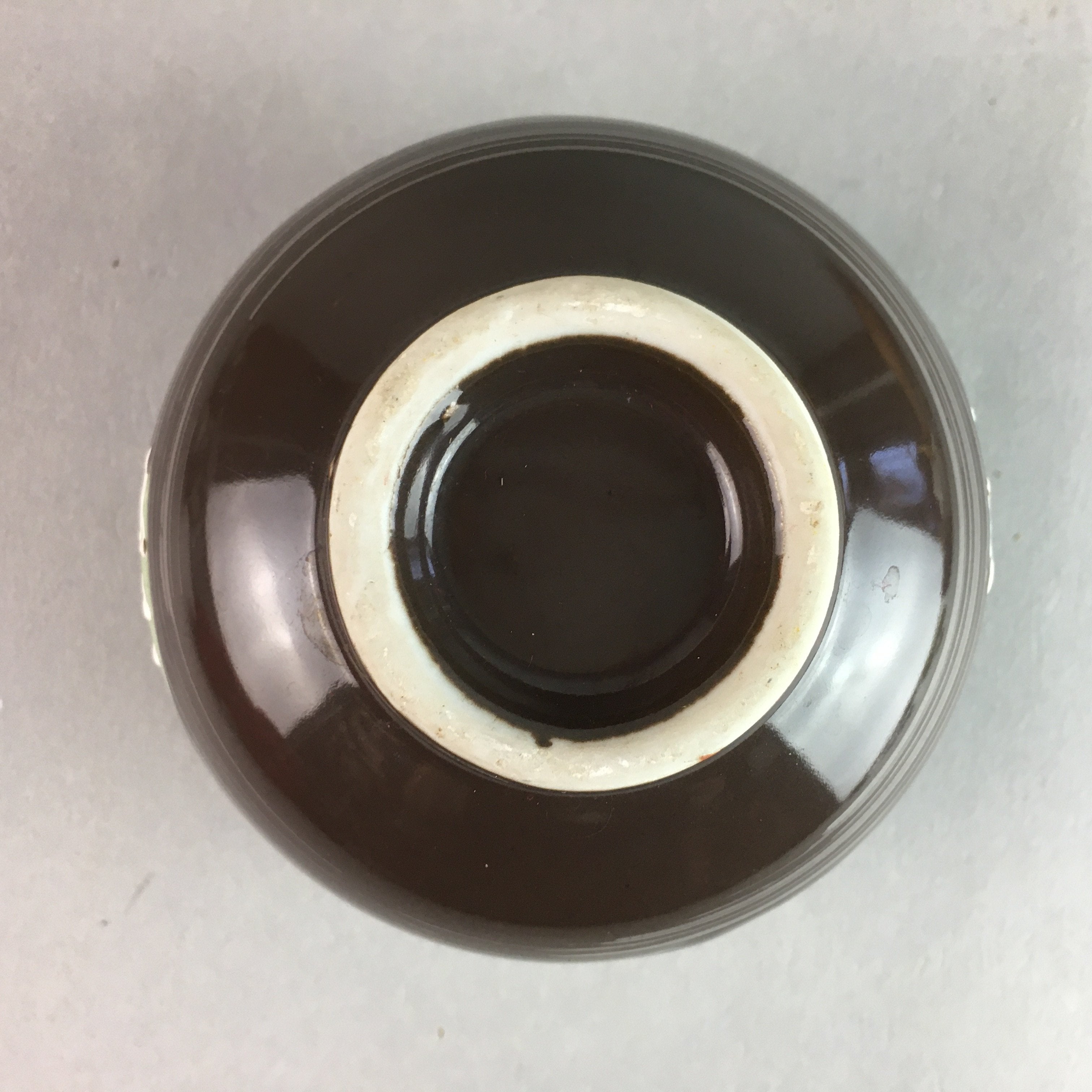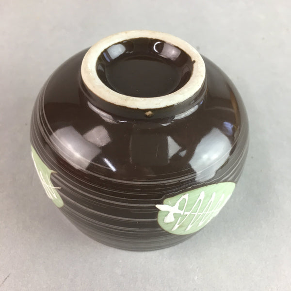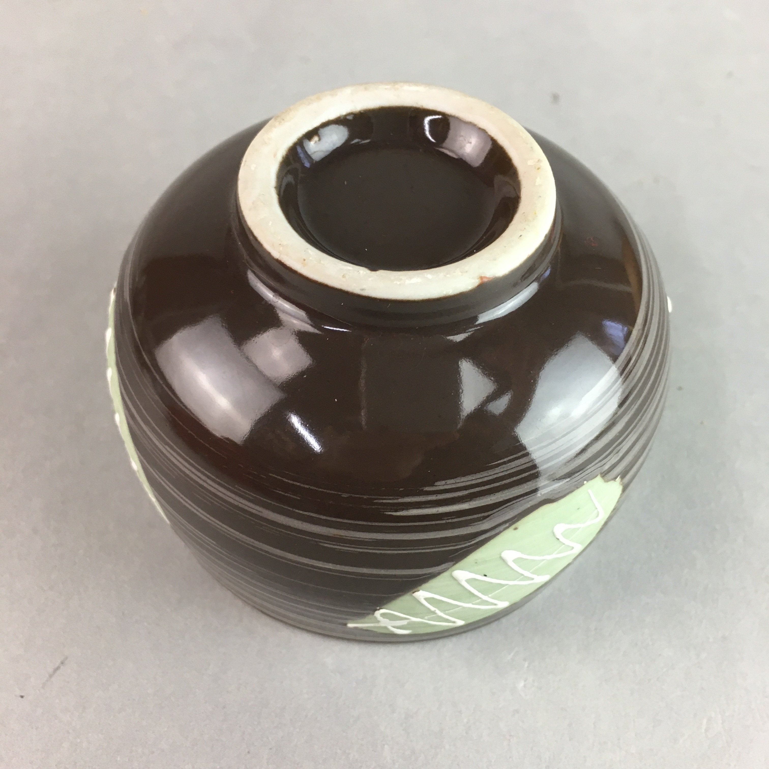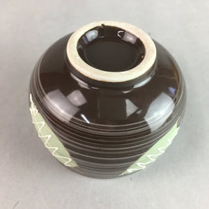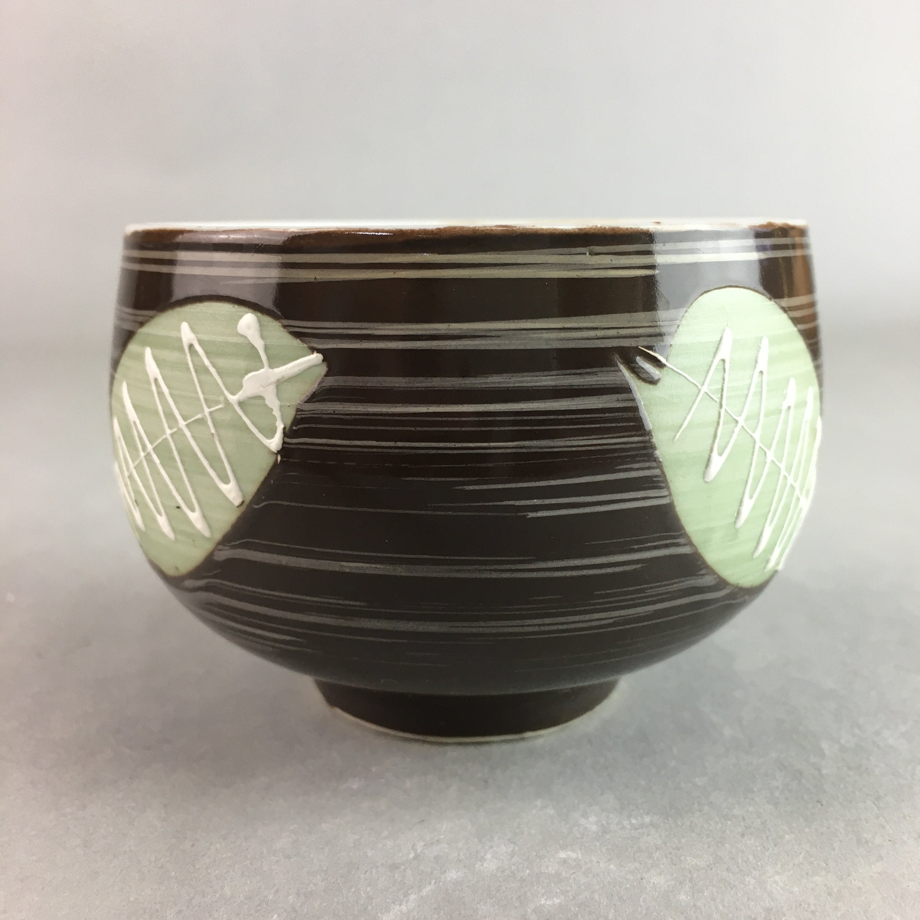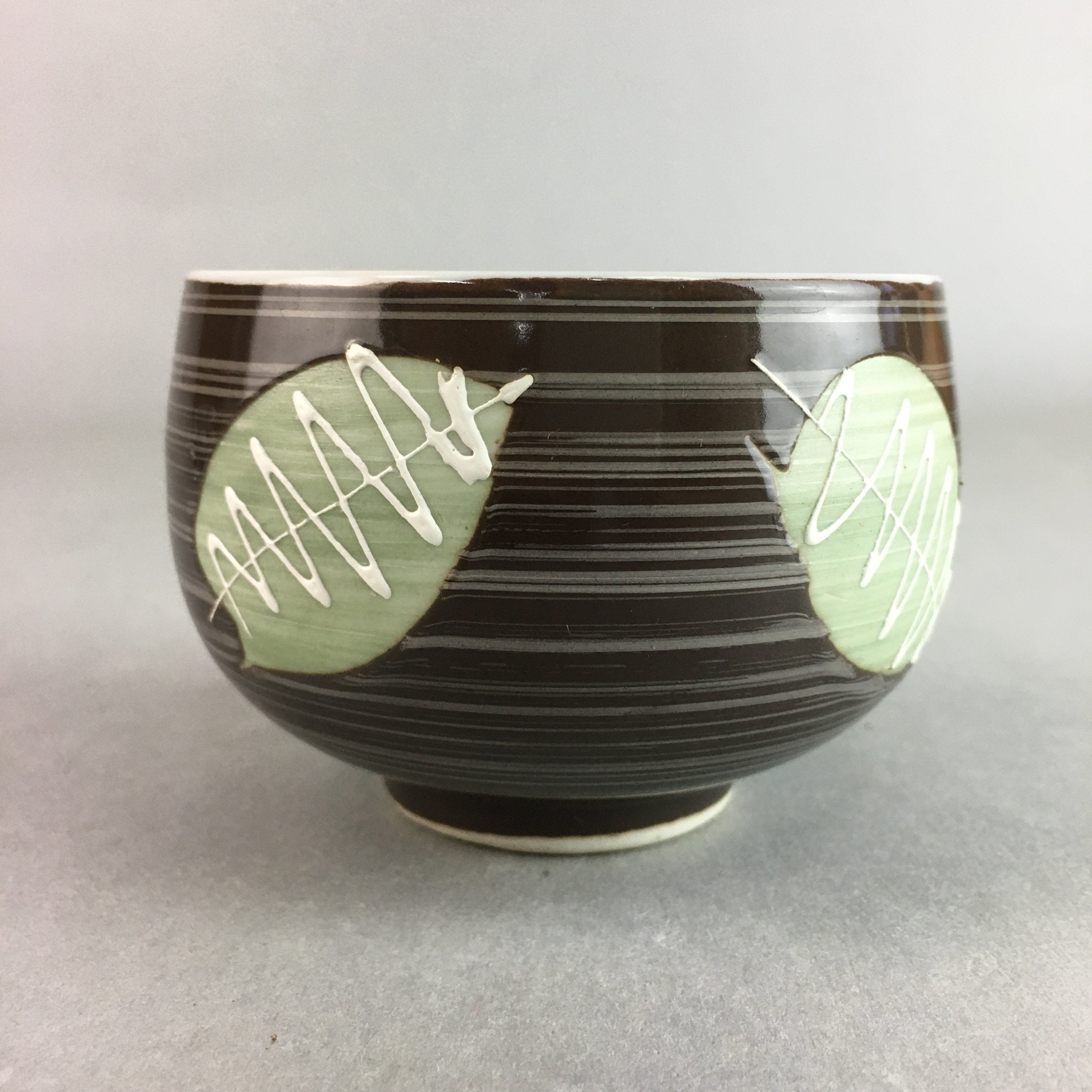 Japanese Porcelain Teacup Yunomi Vtg Sencha Brown Green Leaf Stripe TC142