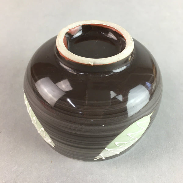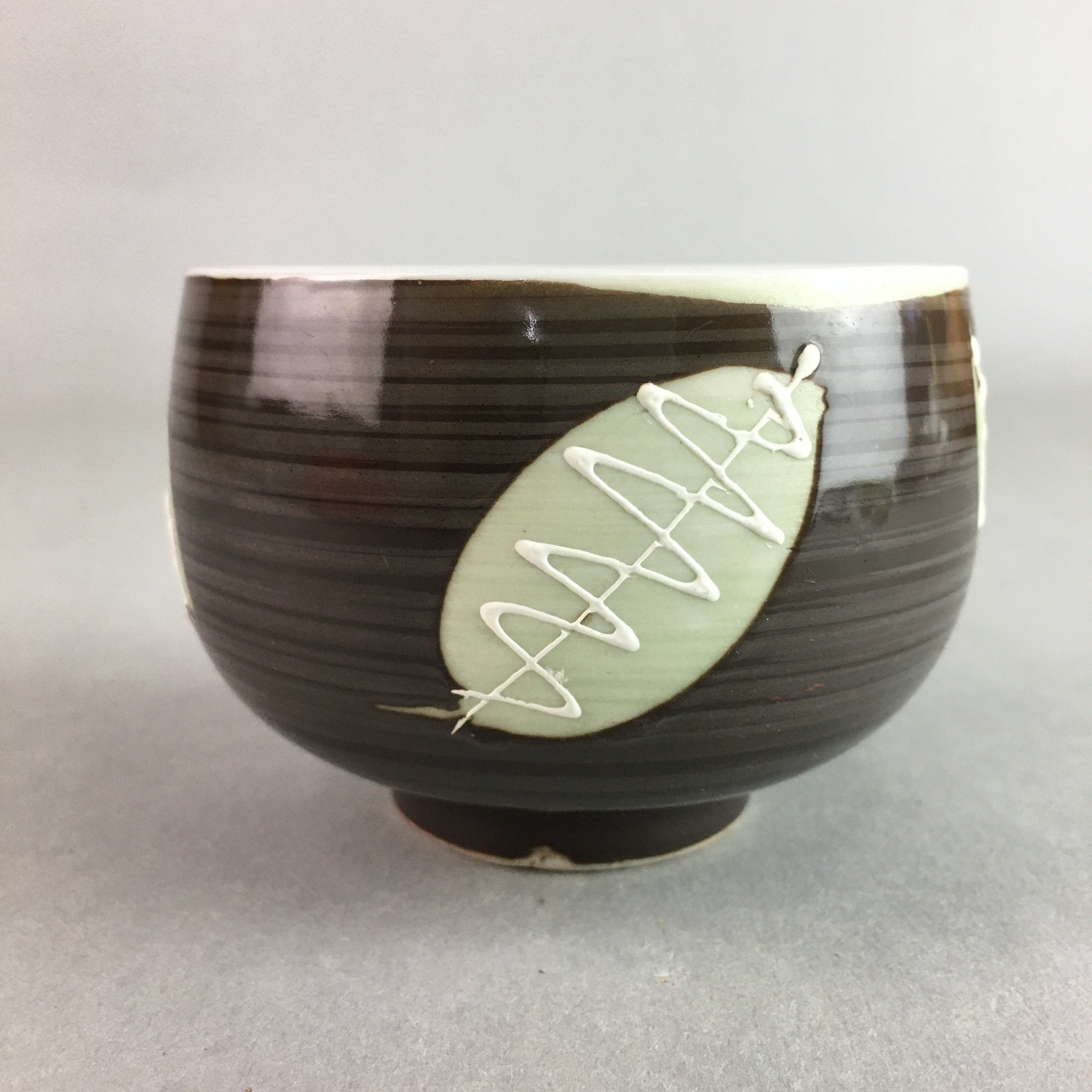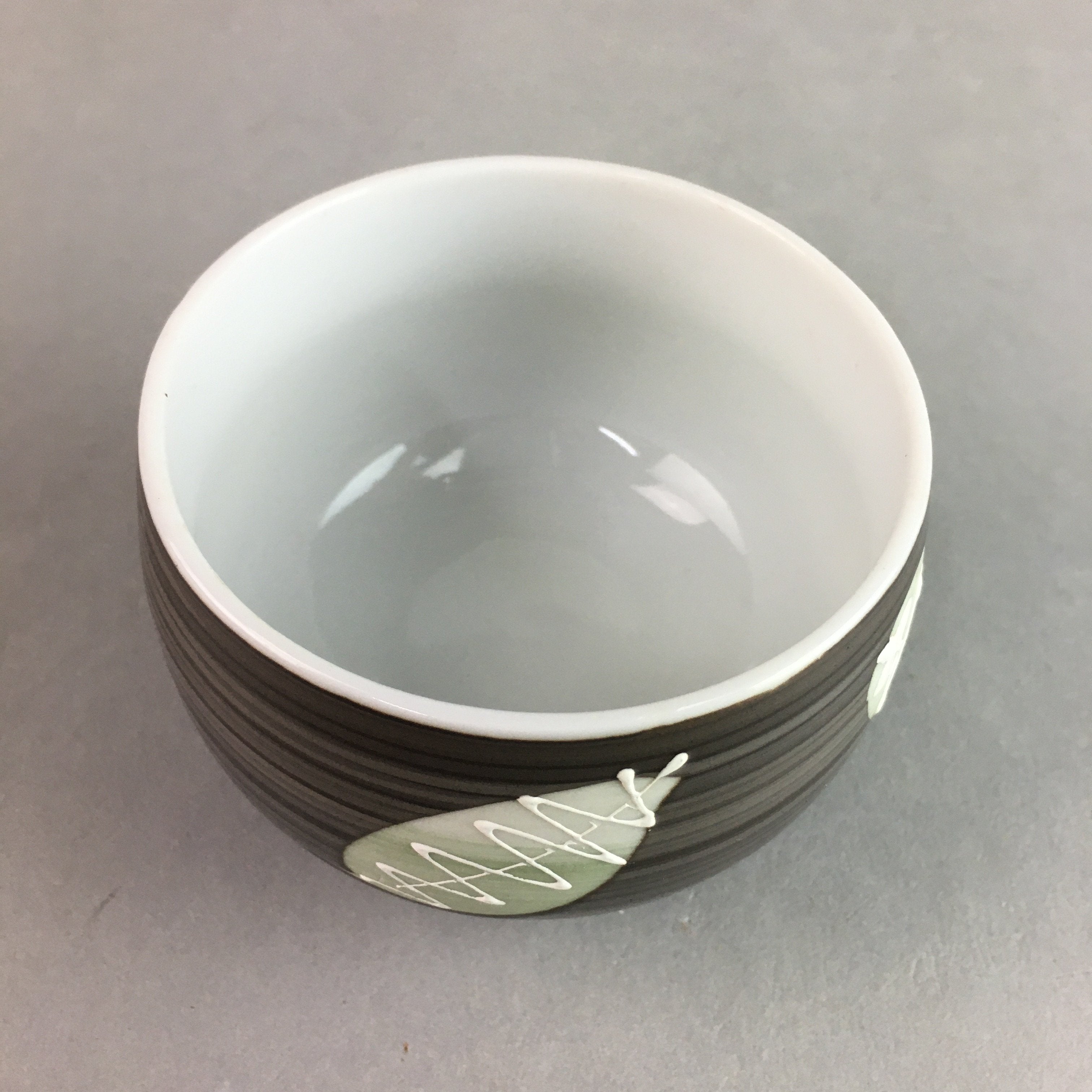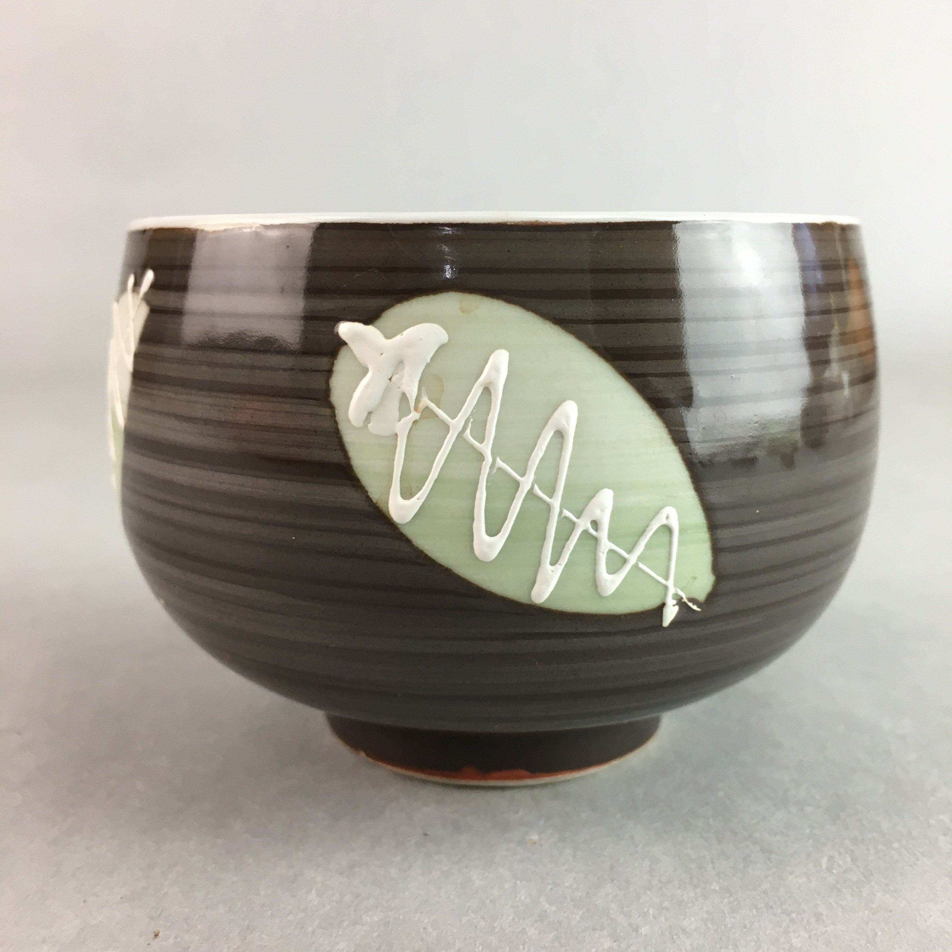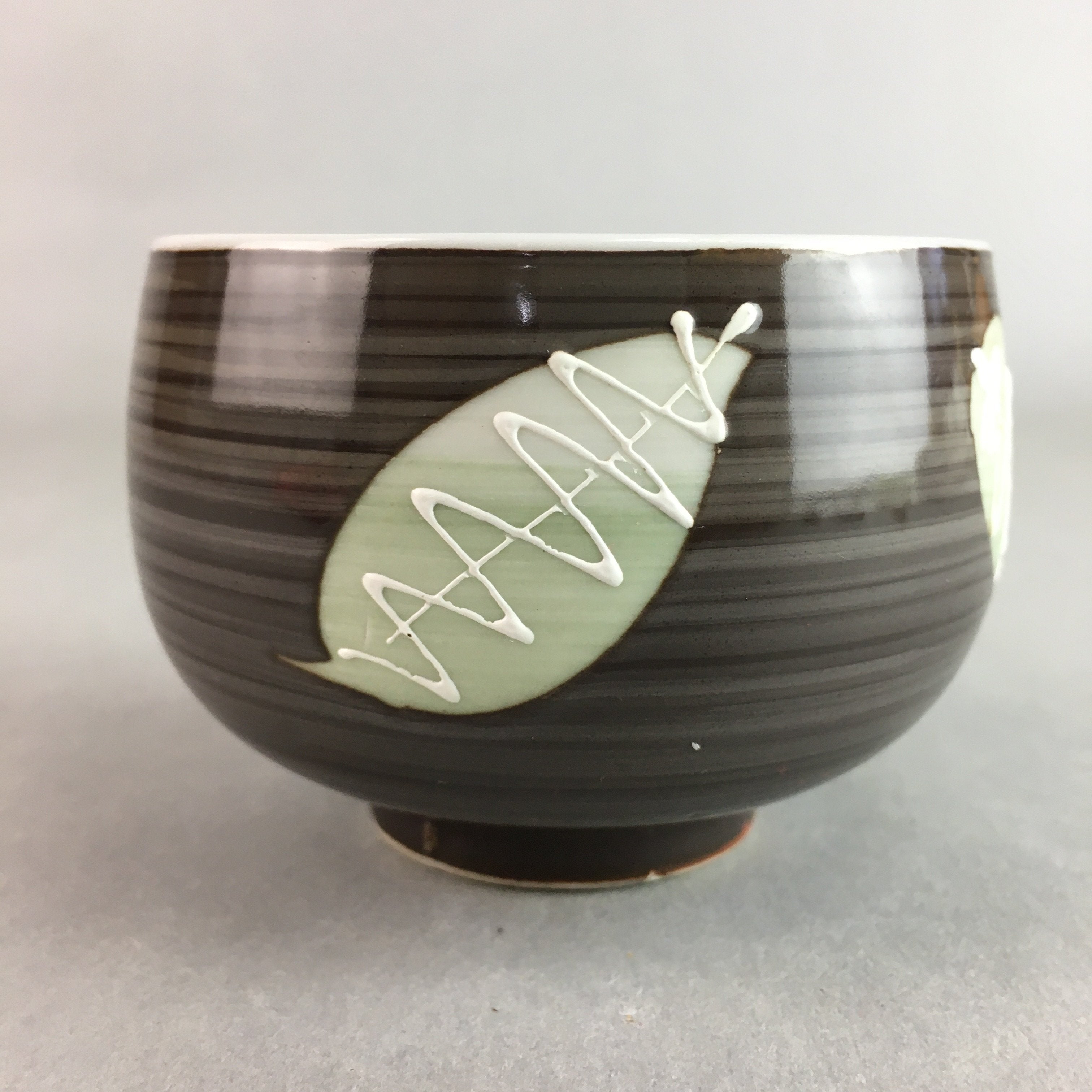 Japanese Porcelain Teacup Yunomi Vtg Sencha Brown Green Leaf Stripe TC144
