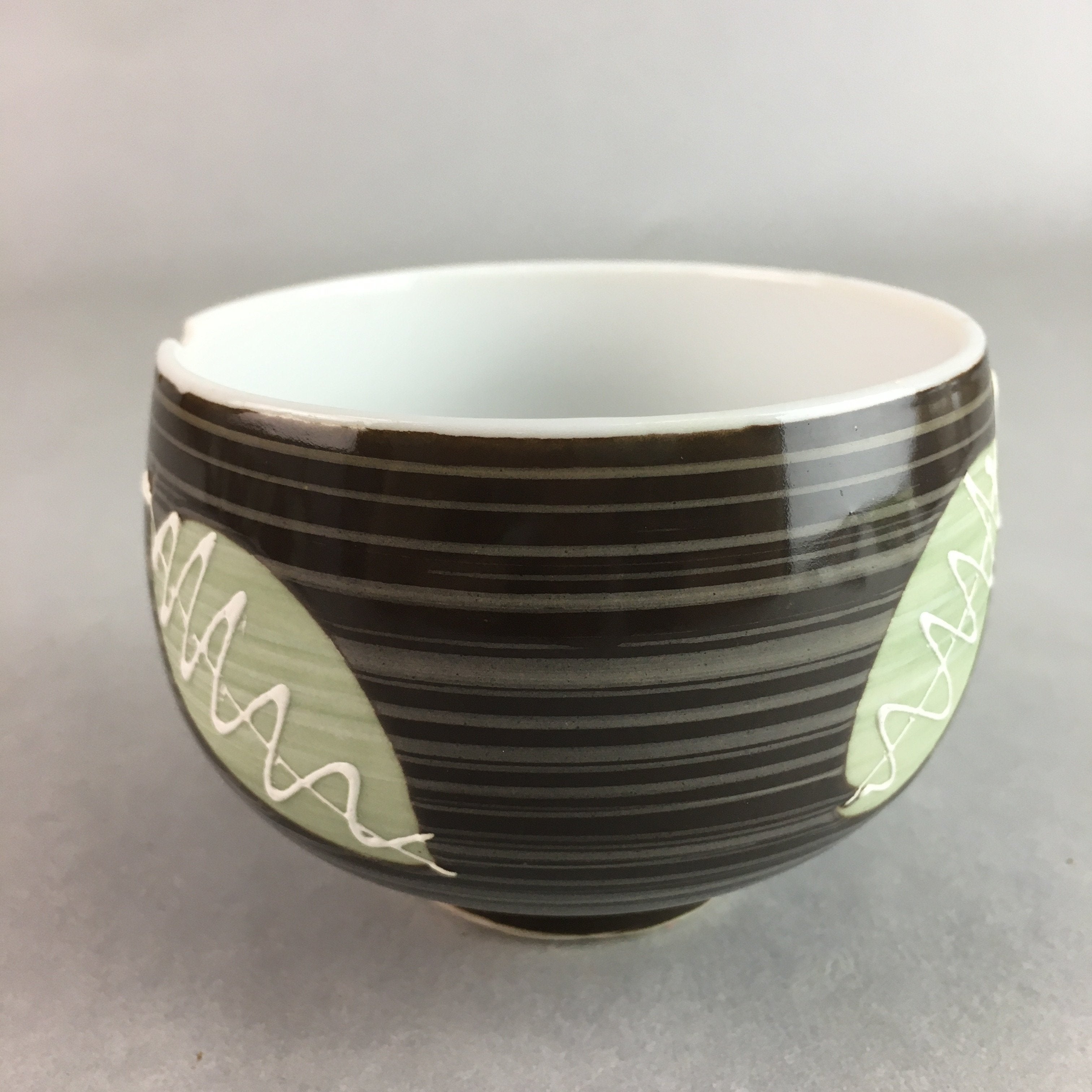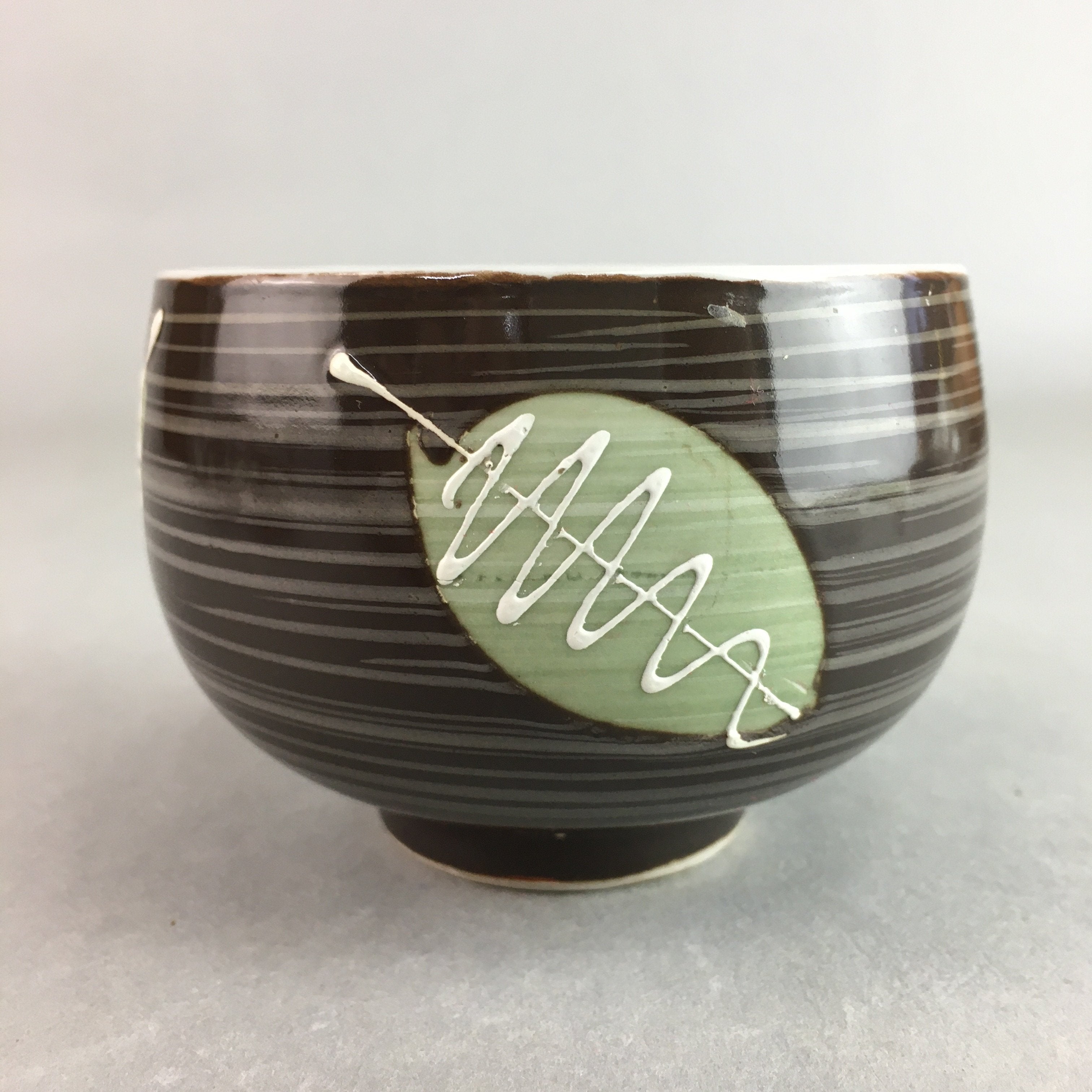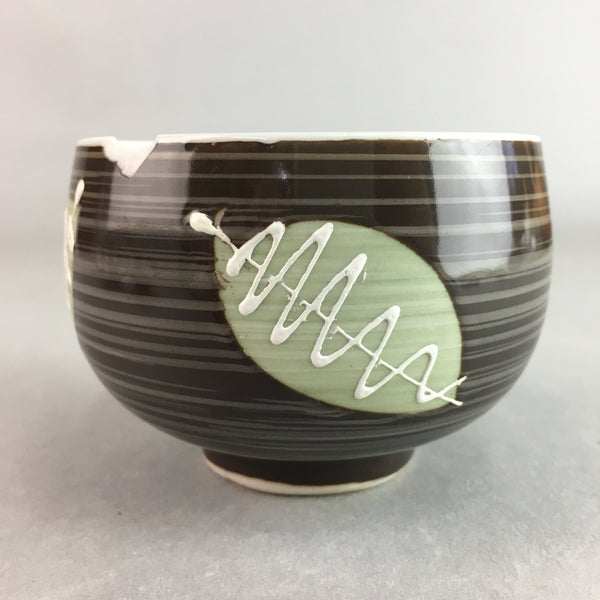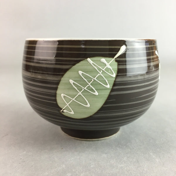 Japanese Porcelain Teacup Yunomi Vtg Sencha Brown Green Leaf Stripe TC145
