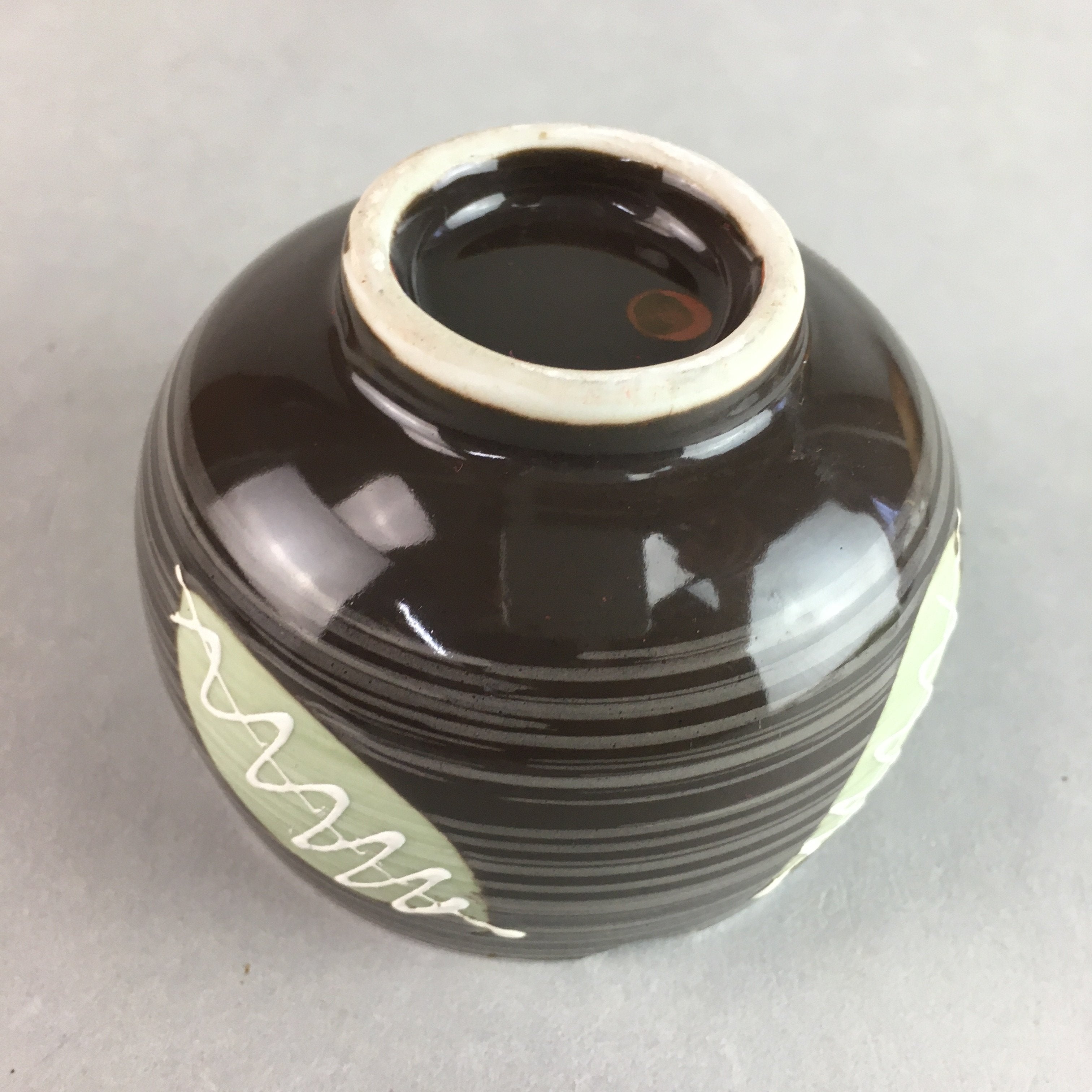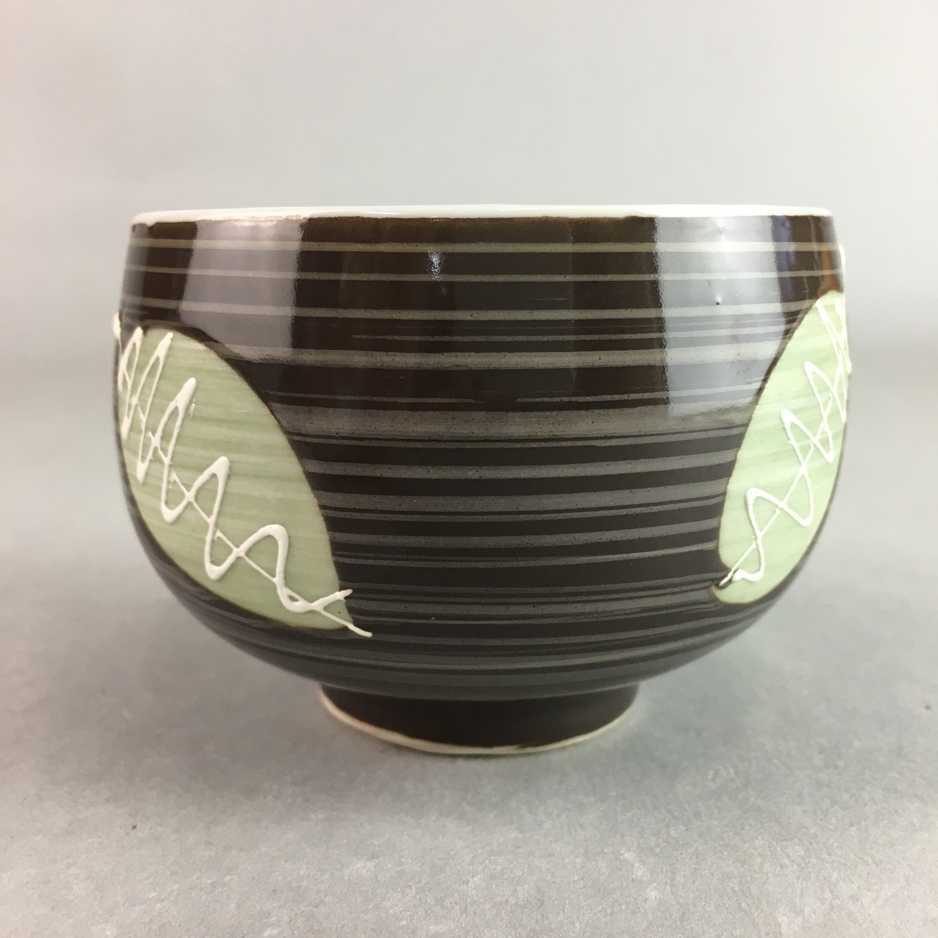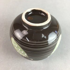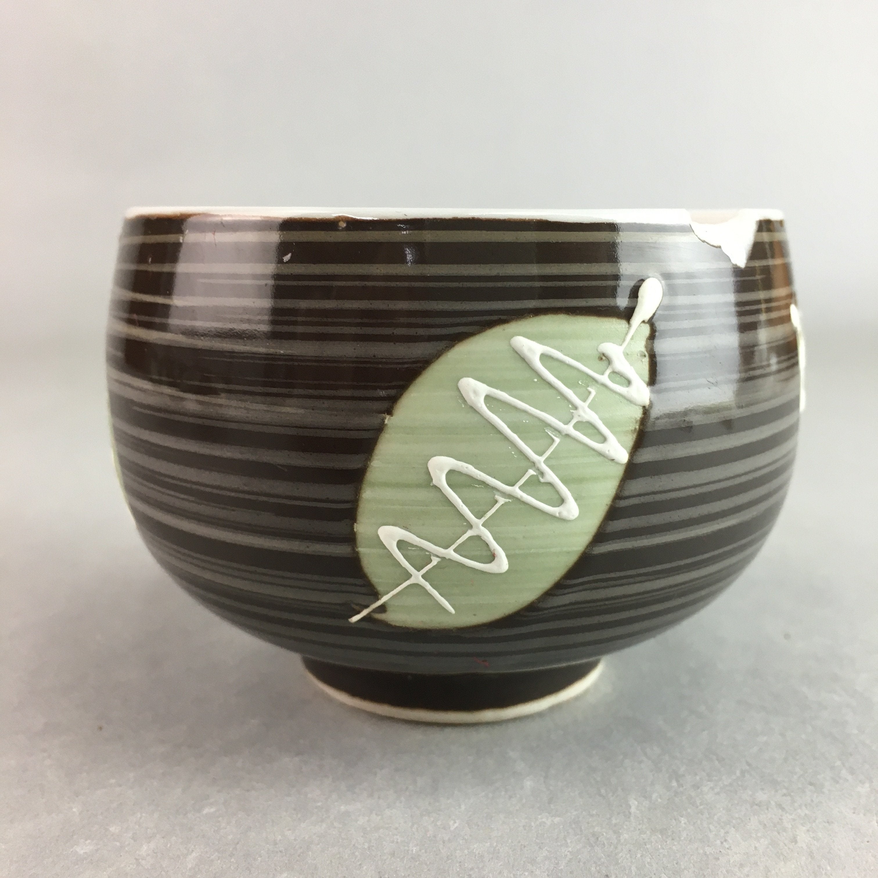 Japanese Porcelain Teacup Yunomi Vtg Sencha Brown Green Leaf Stripe TC145