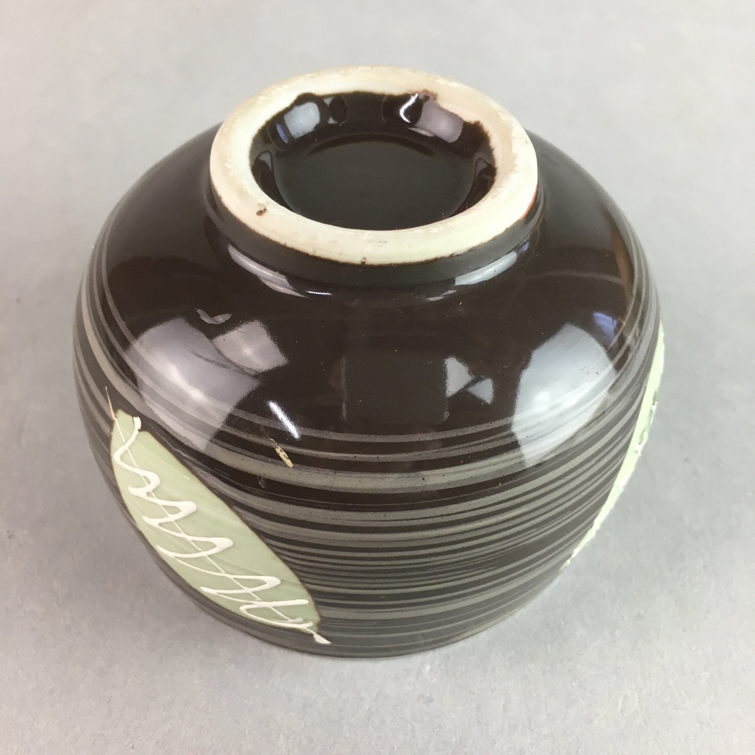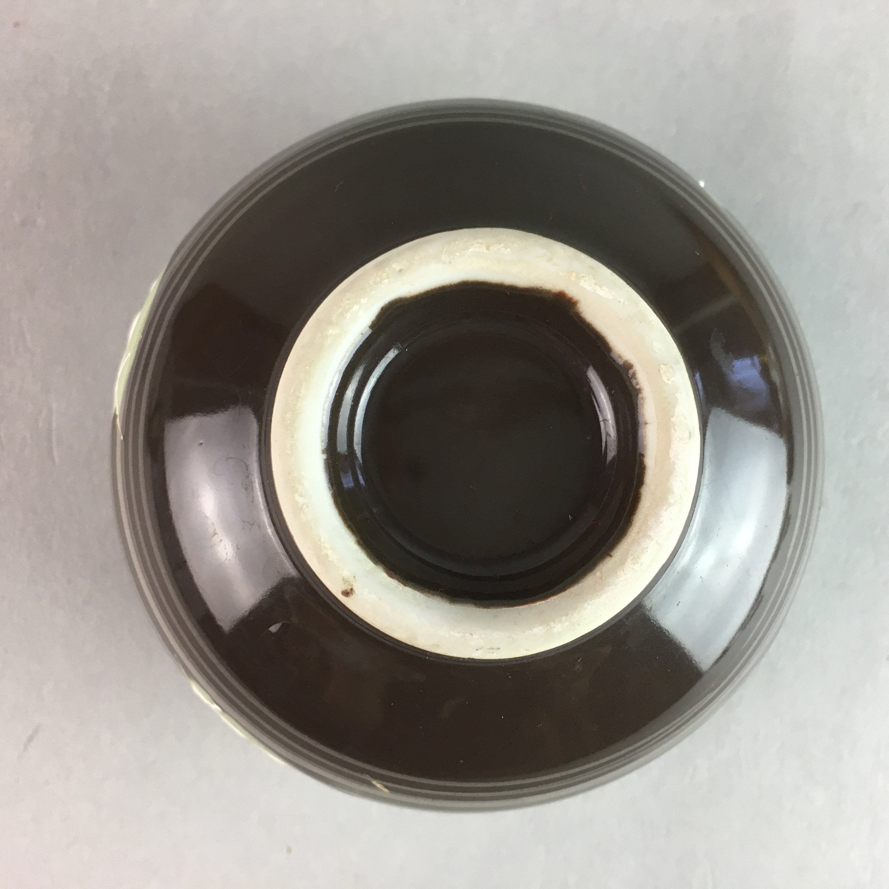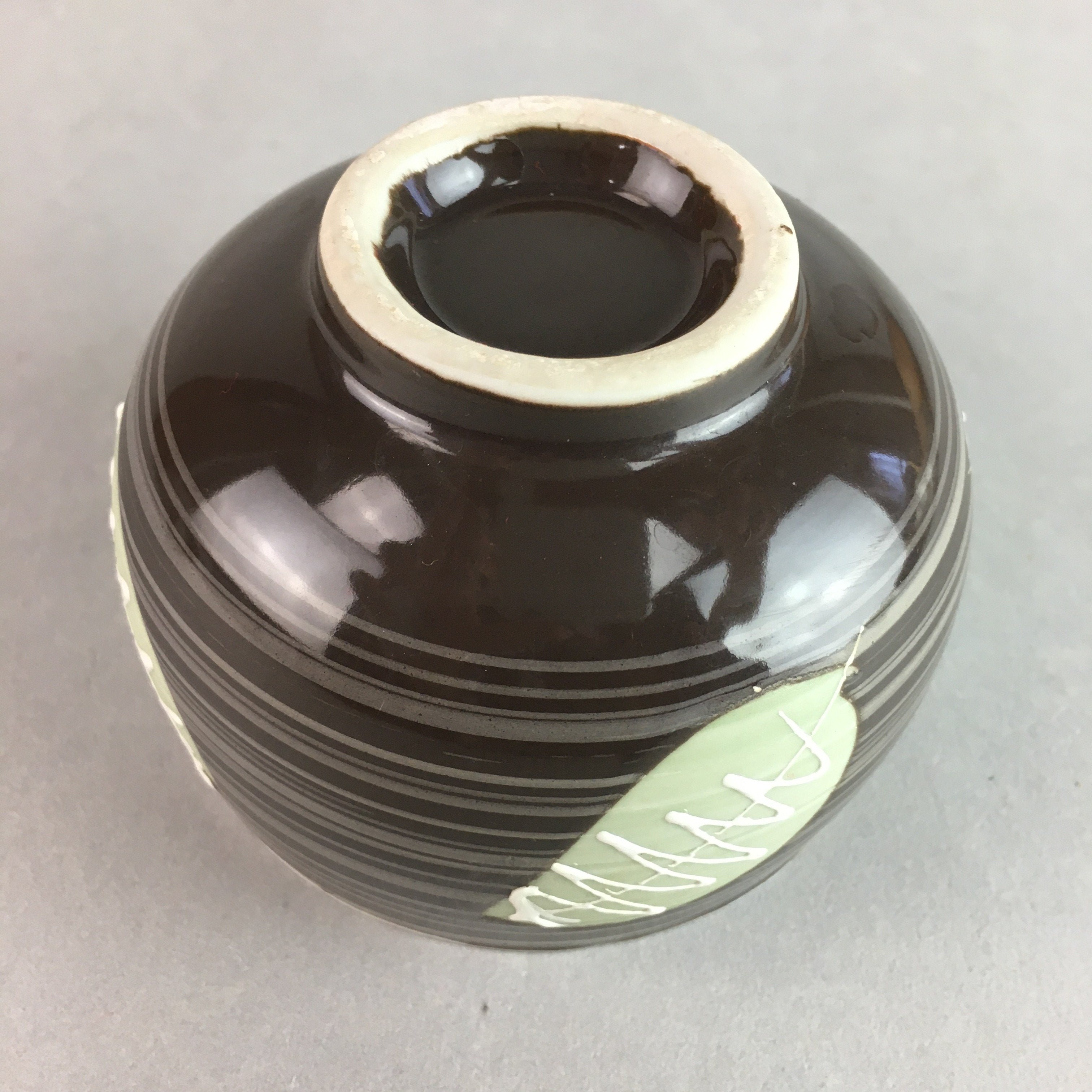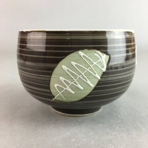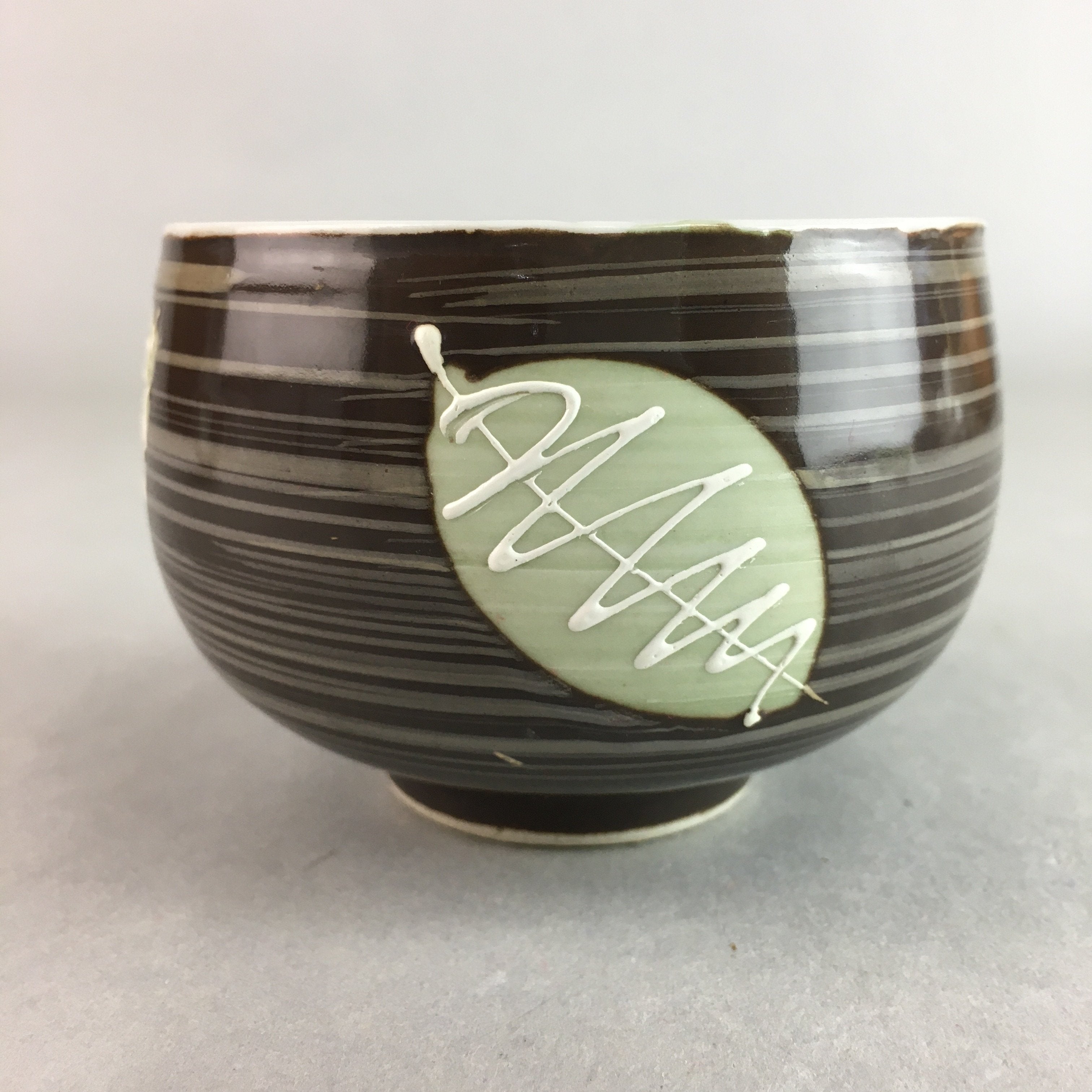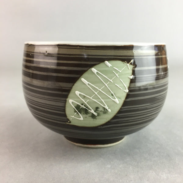 Japanese Porcelain Teacup Yunomi Vtg Sencha Brown Green Leaf Stripe TC148