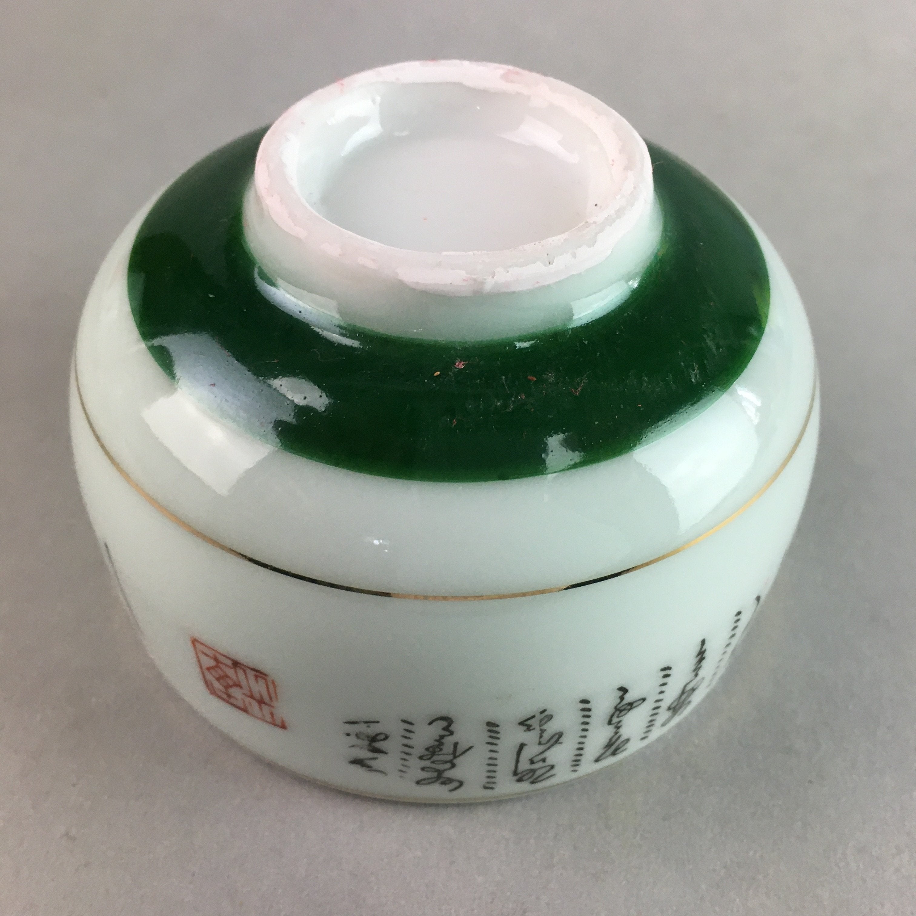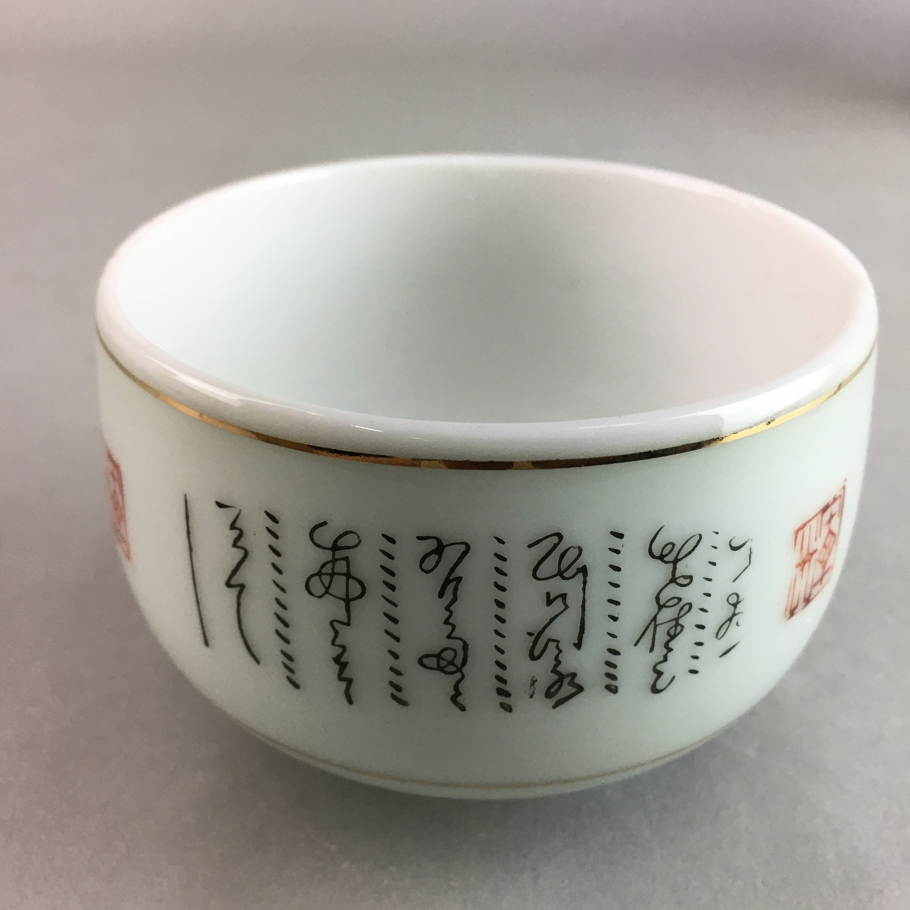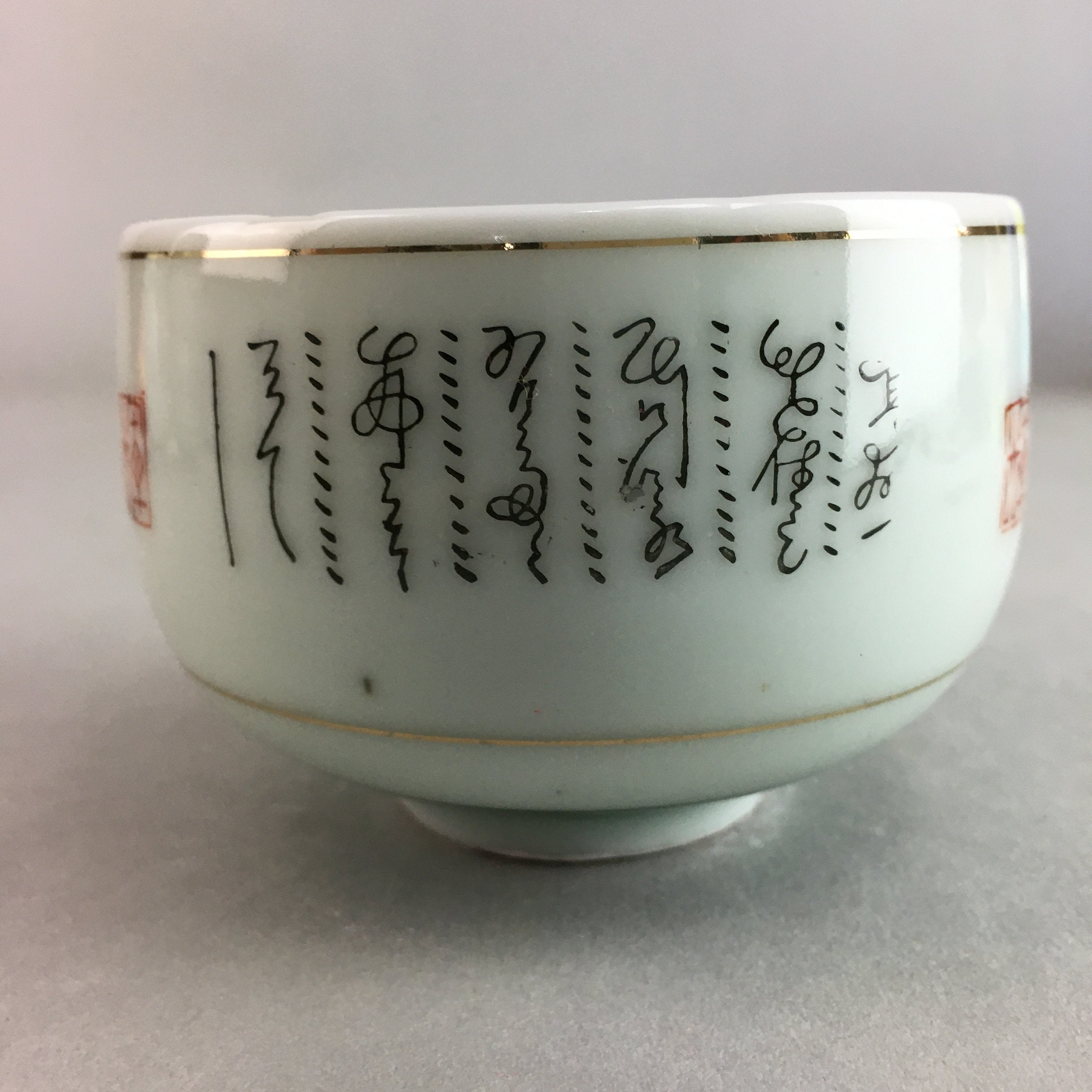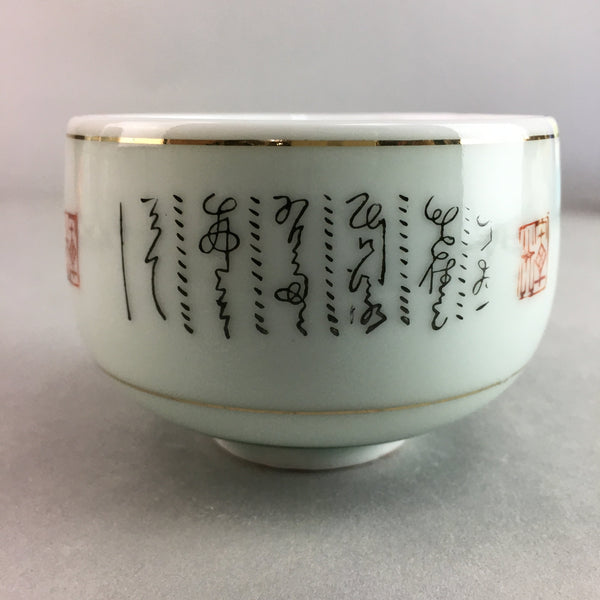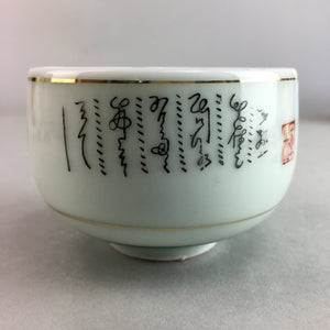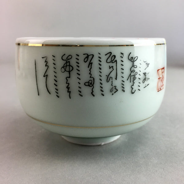 Japanese Porcelain Teacup Yunomi Vtg Sencha White Kanji Sentence Green TC128
