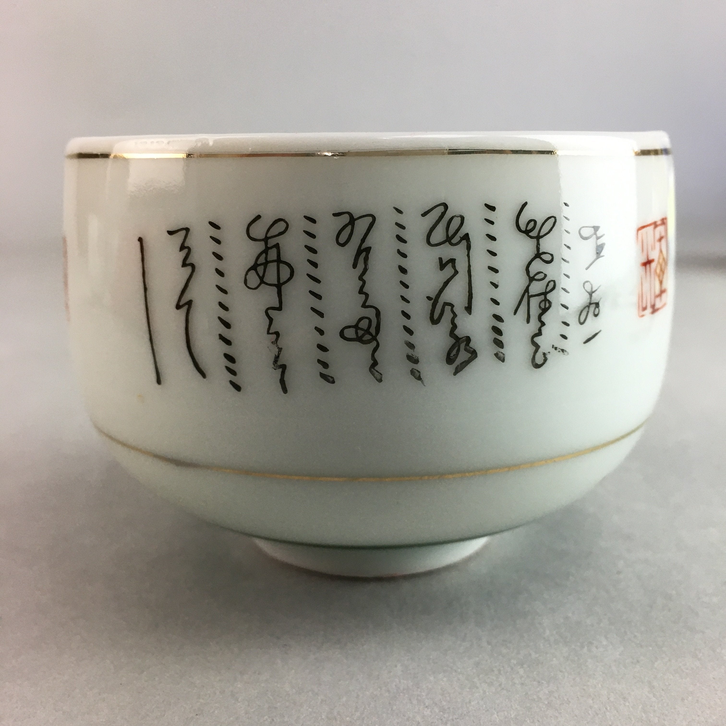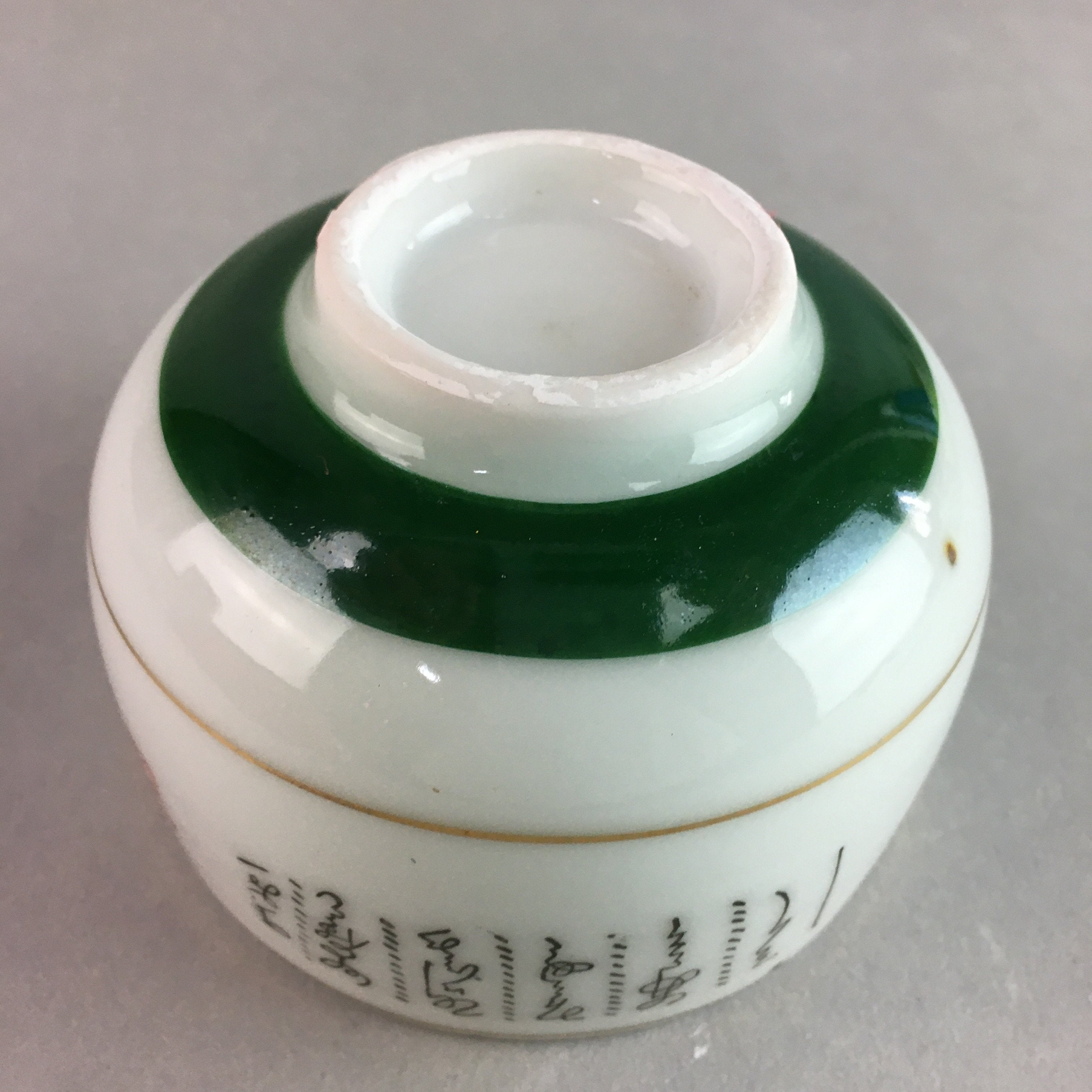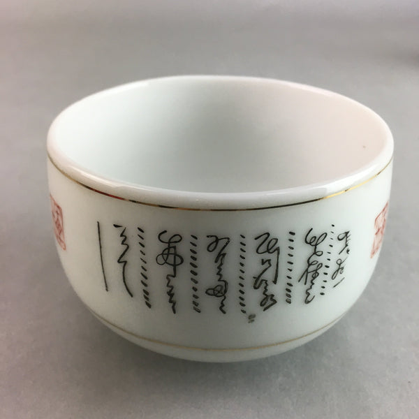 Japanese Porcelain Teacup Yunomi Vtg Sencha White Kanji Sentence Green TC130