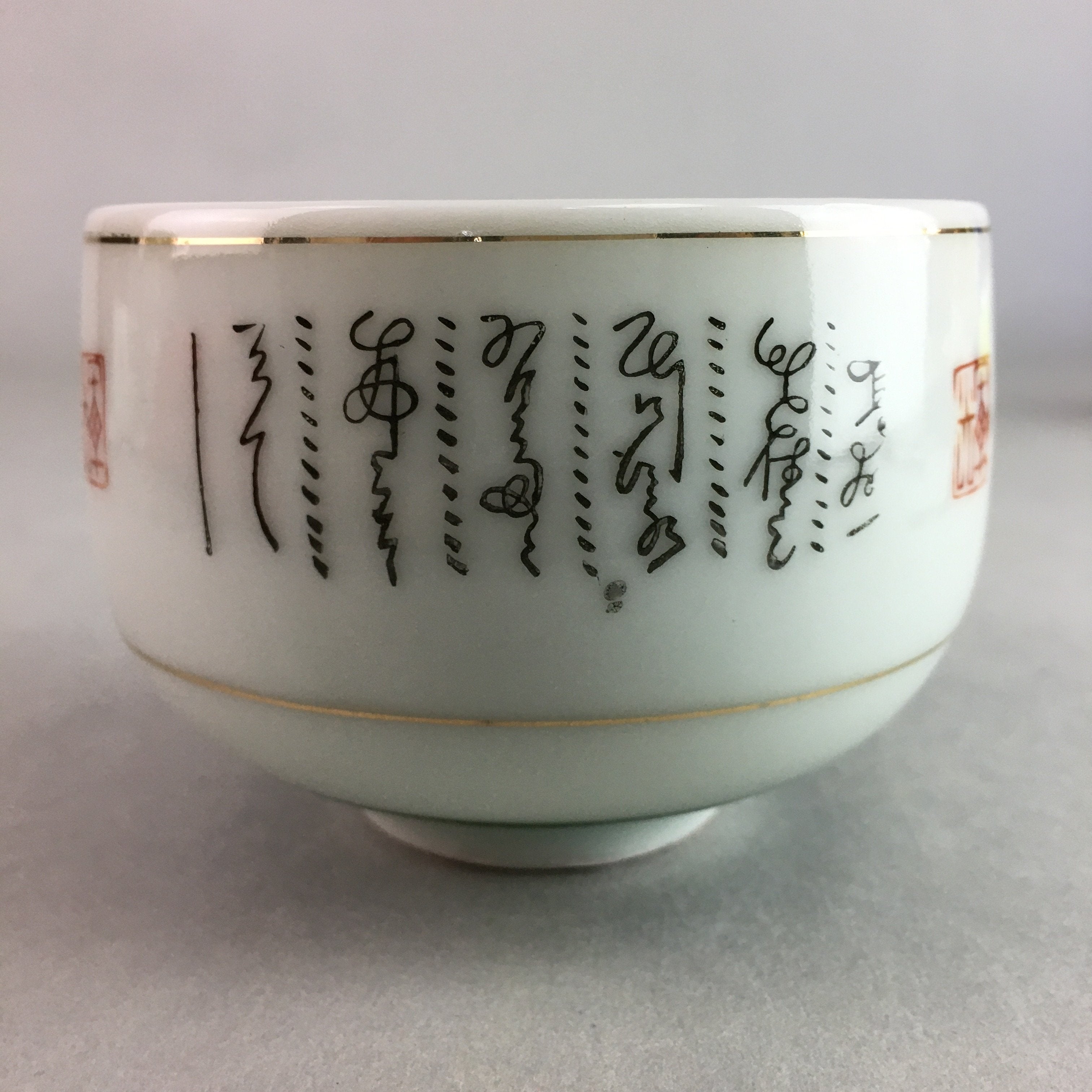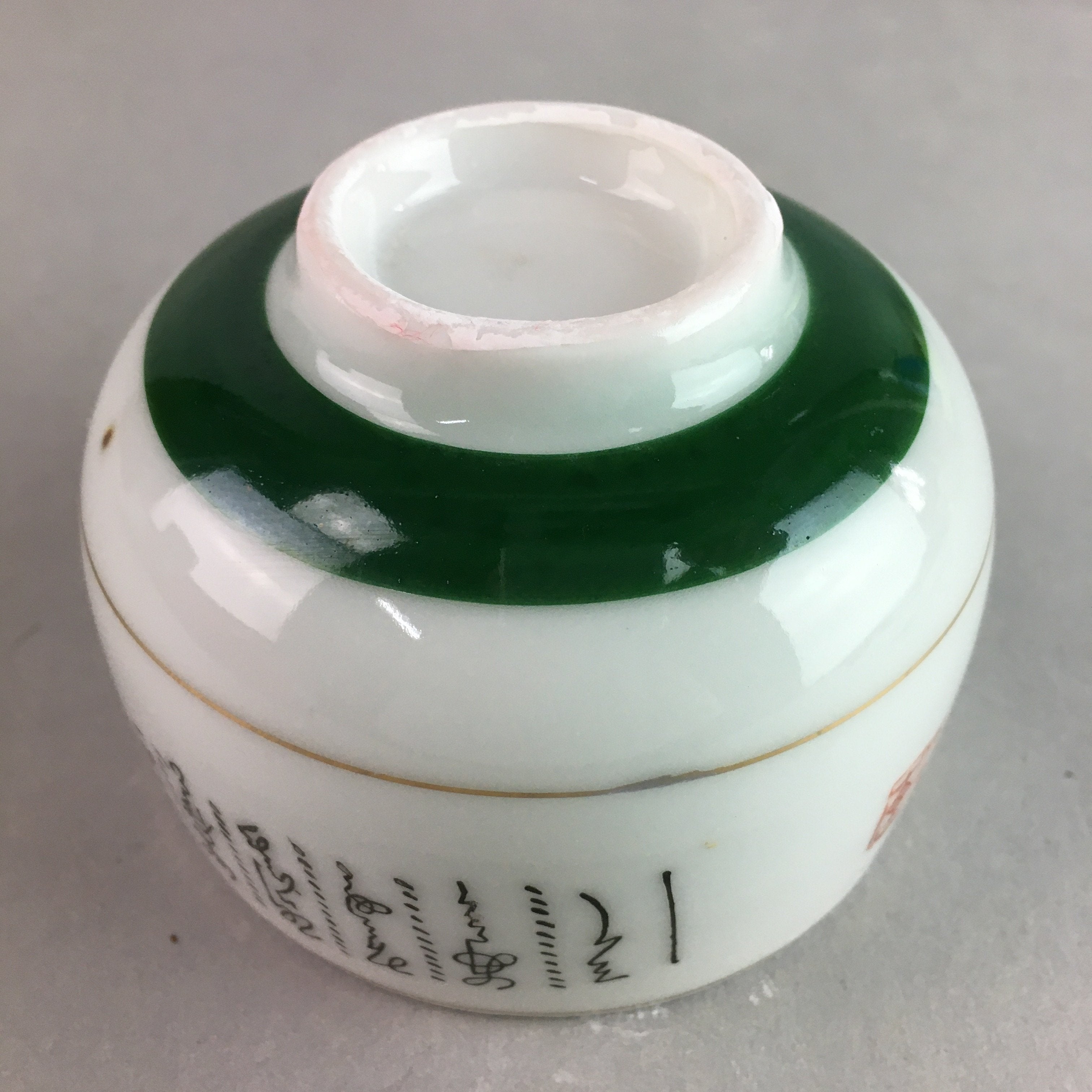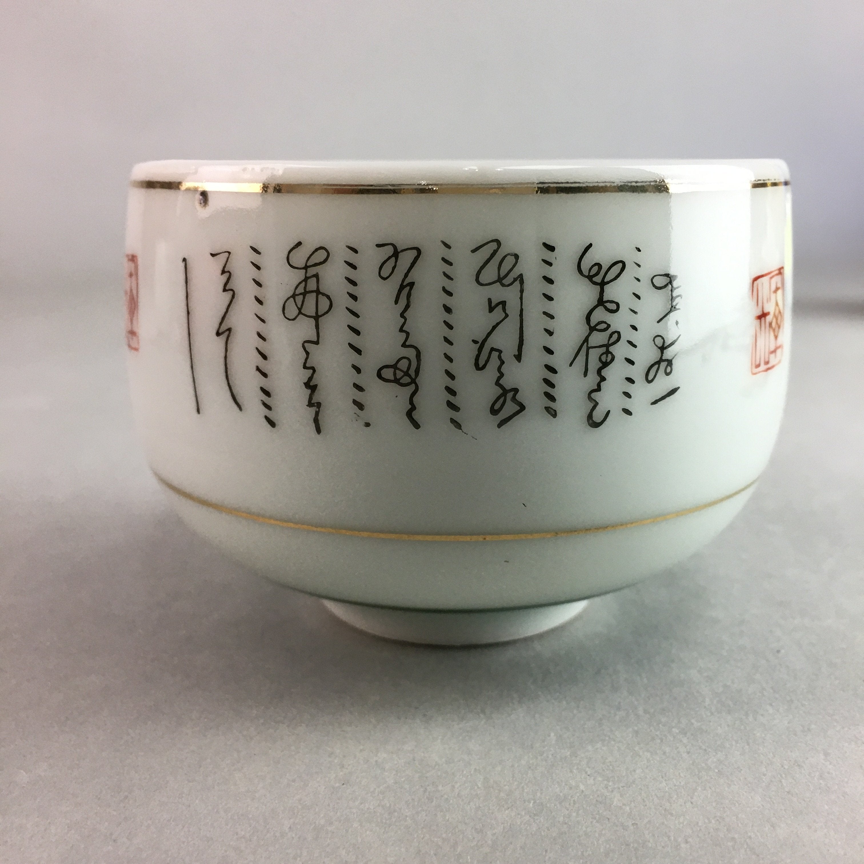Japanese Porcelain Teacup Yunomi Vtg Sencha White Kanji Sentence Green TC130