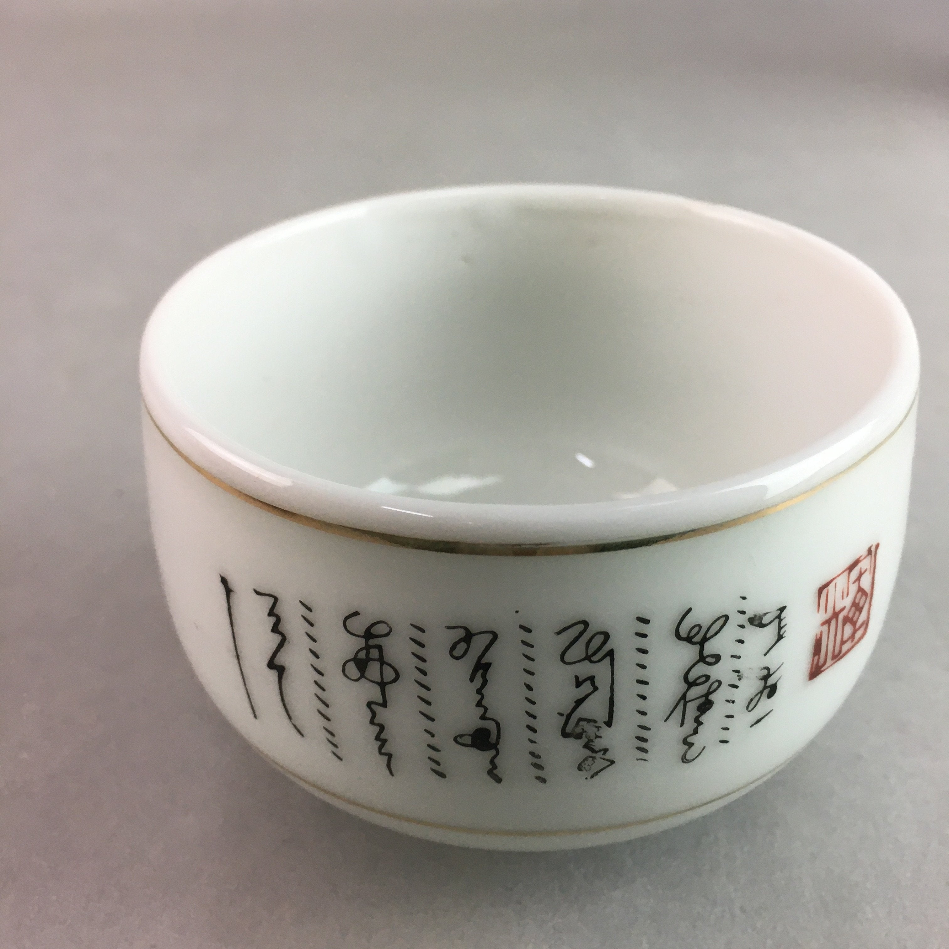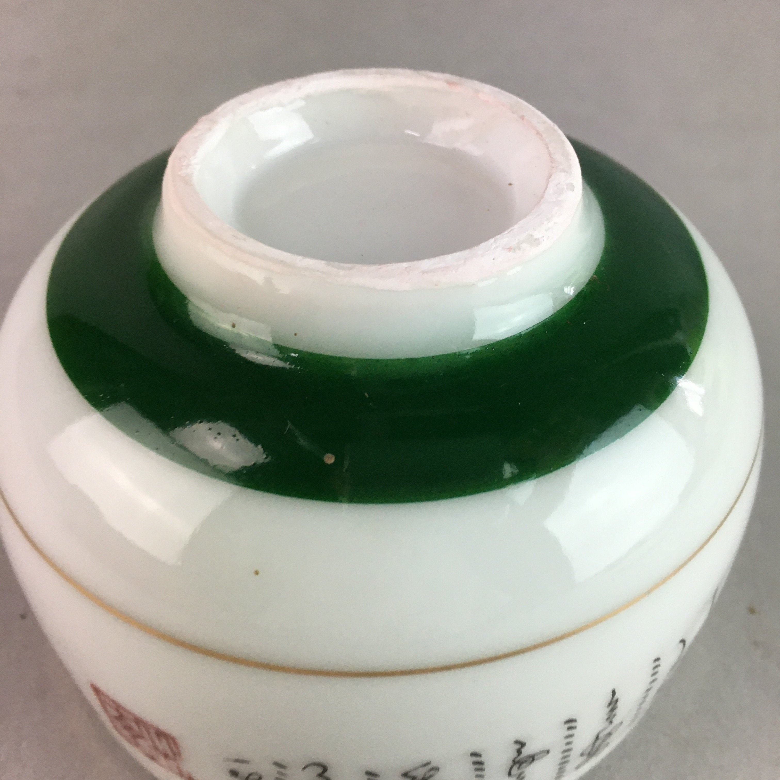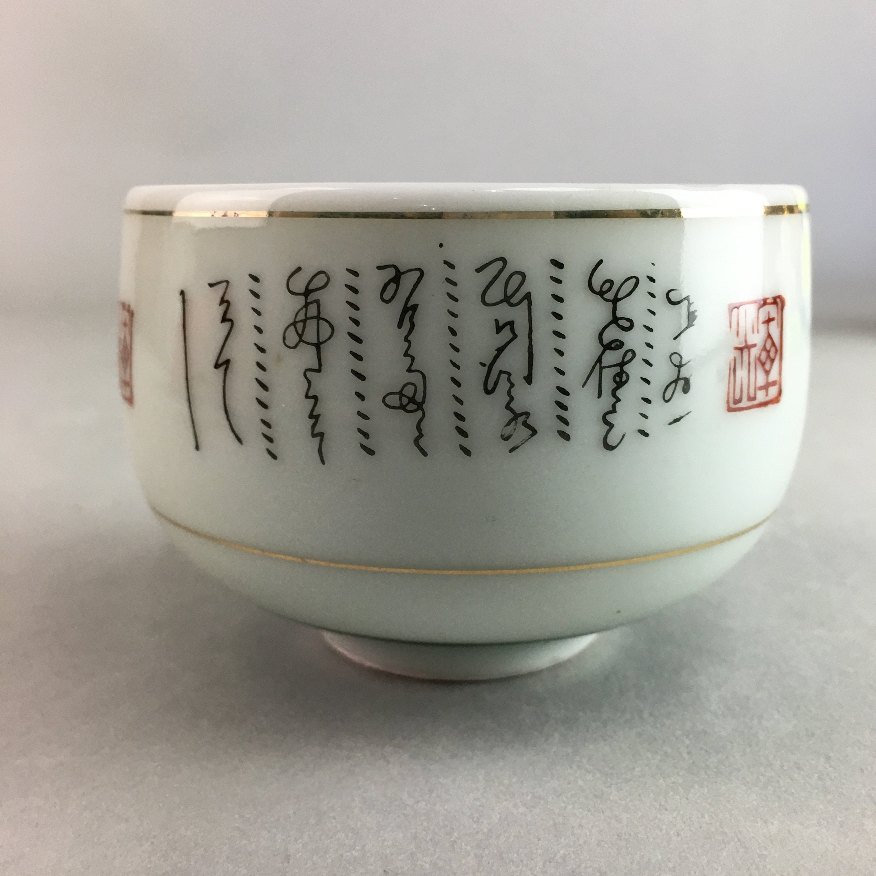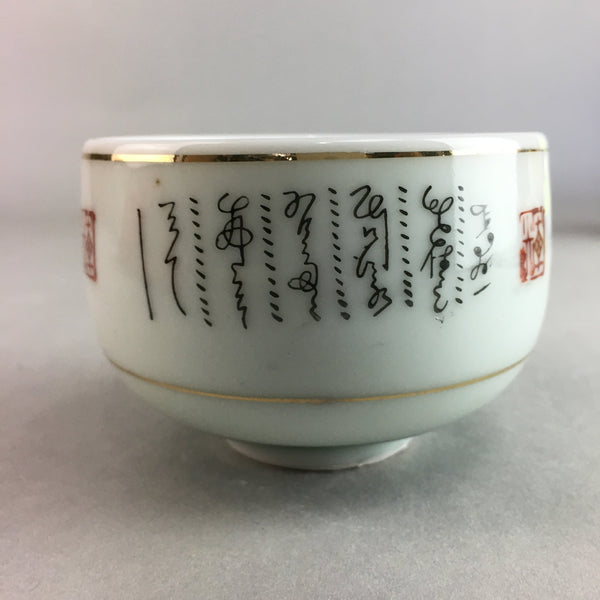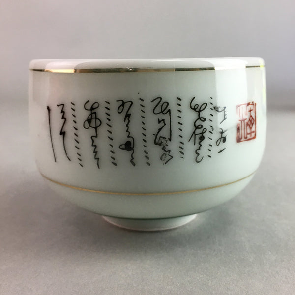 Japanese Porcelain Teacup Yunomi Vtg Sencha White Kanji Sentence Green TC132