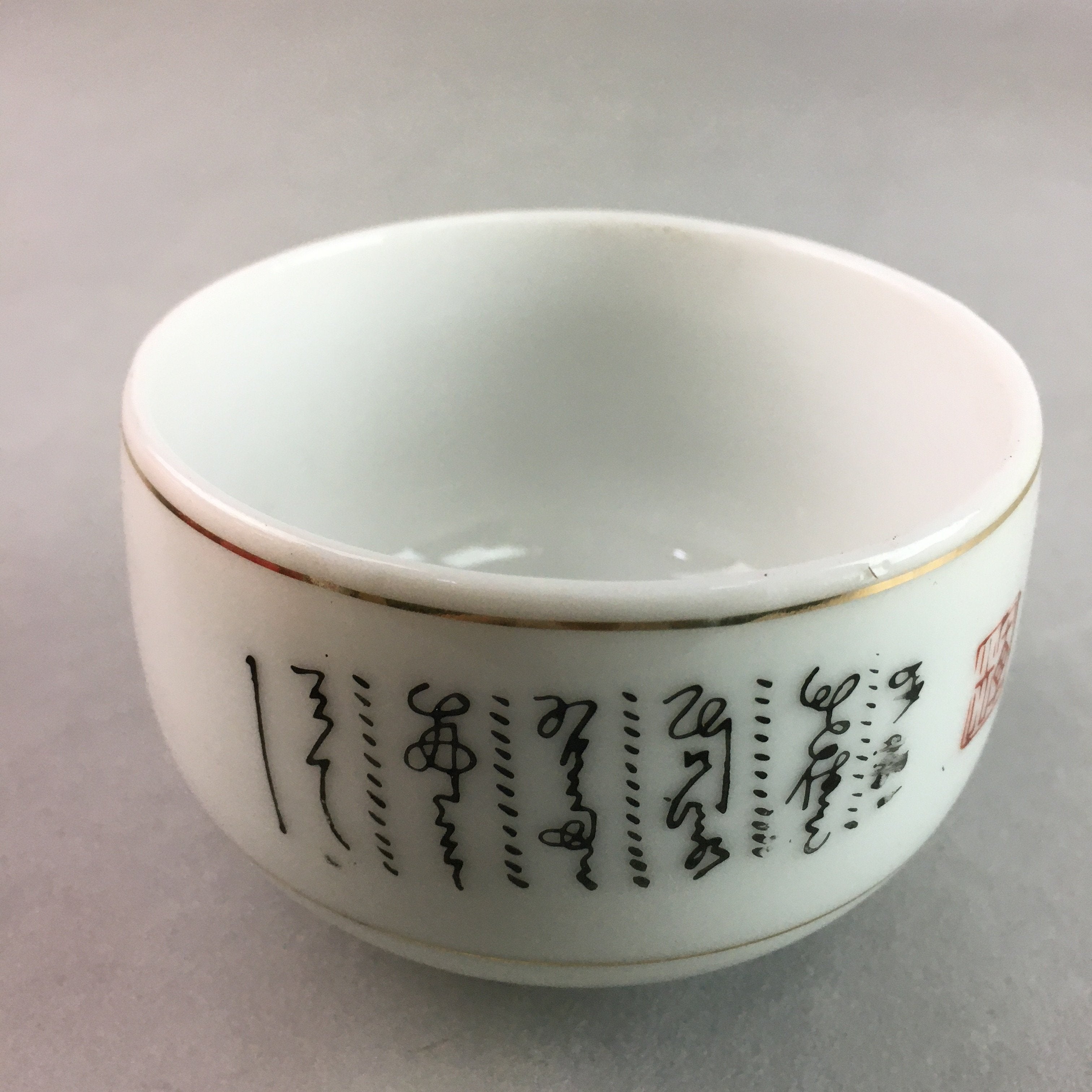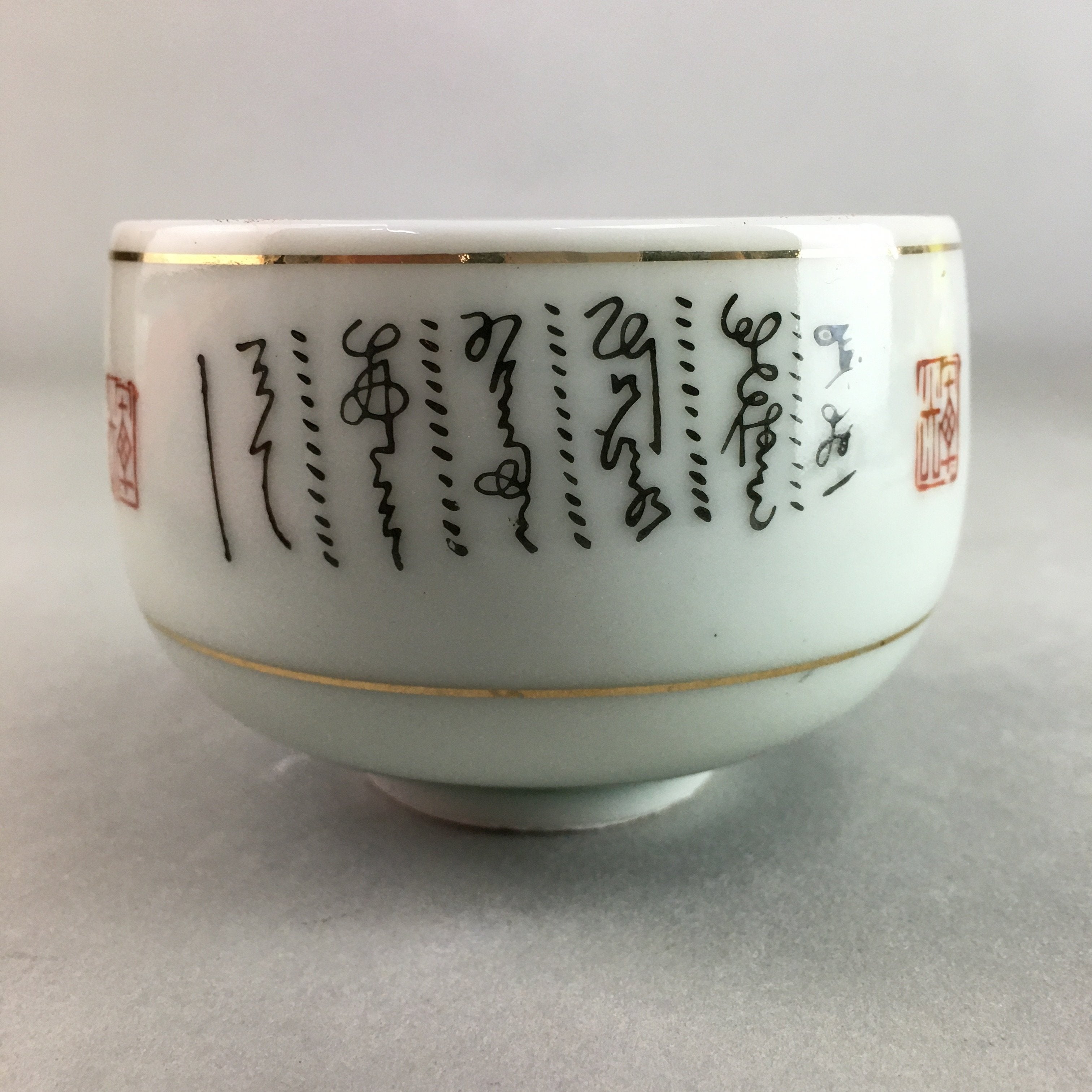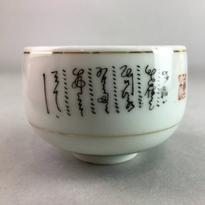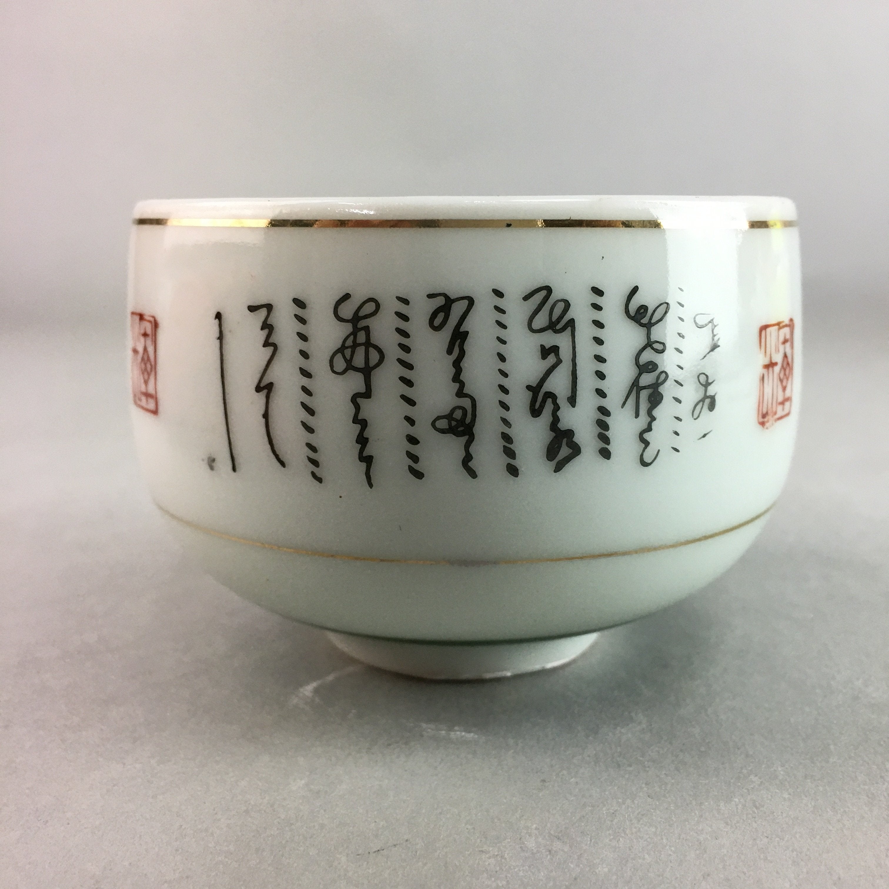Japanese Porcelain Teacup Yunomi Vtg Sencha White Kanji Sentence Green TC133