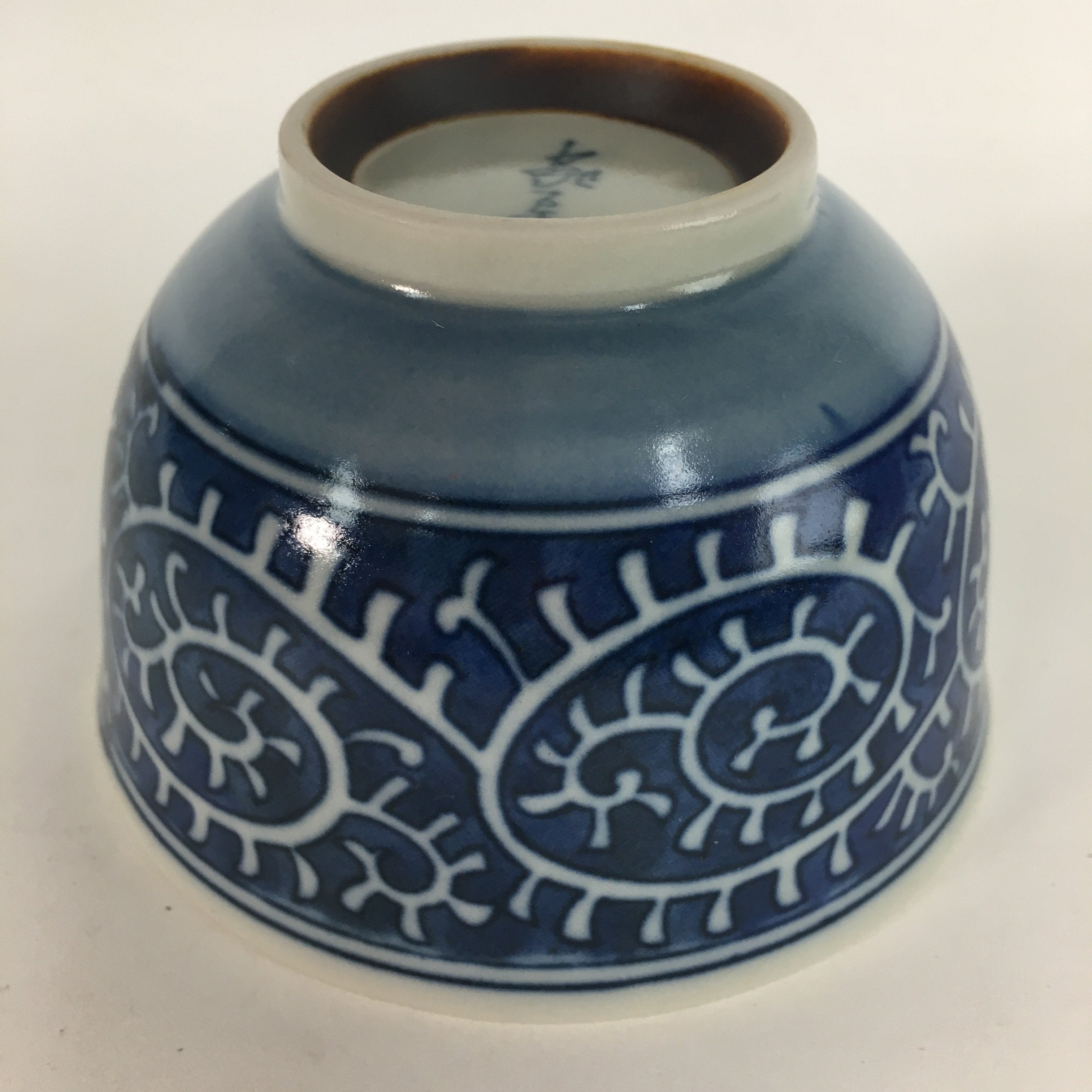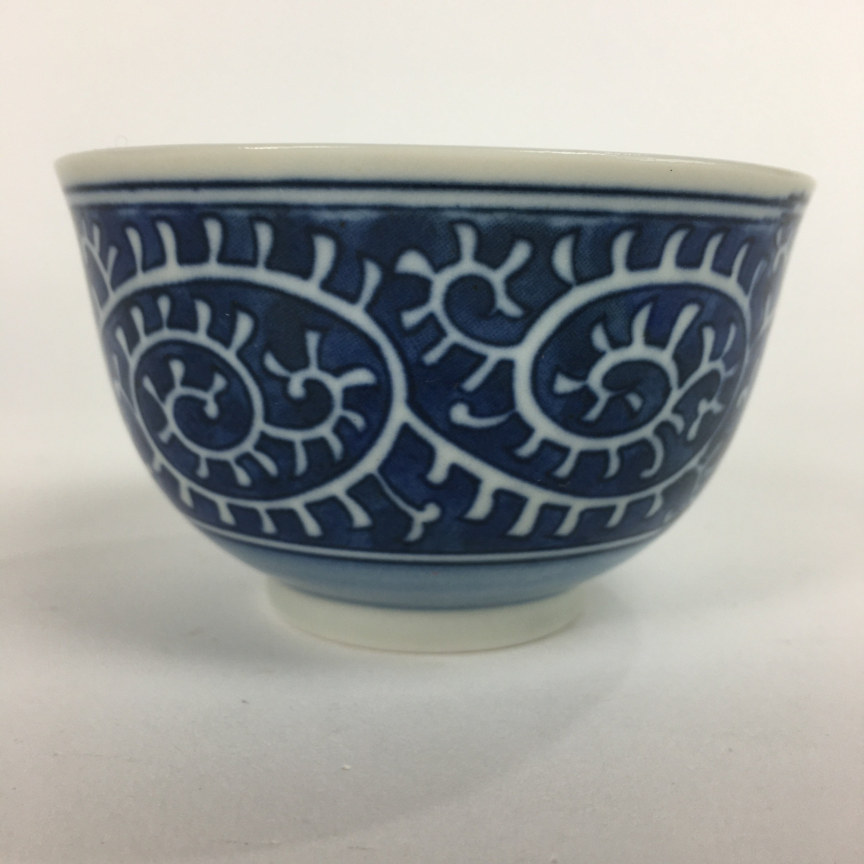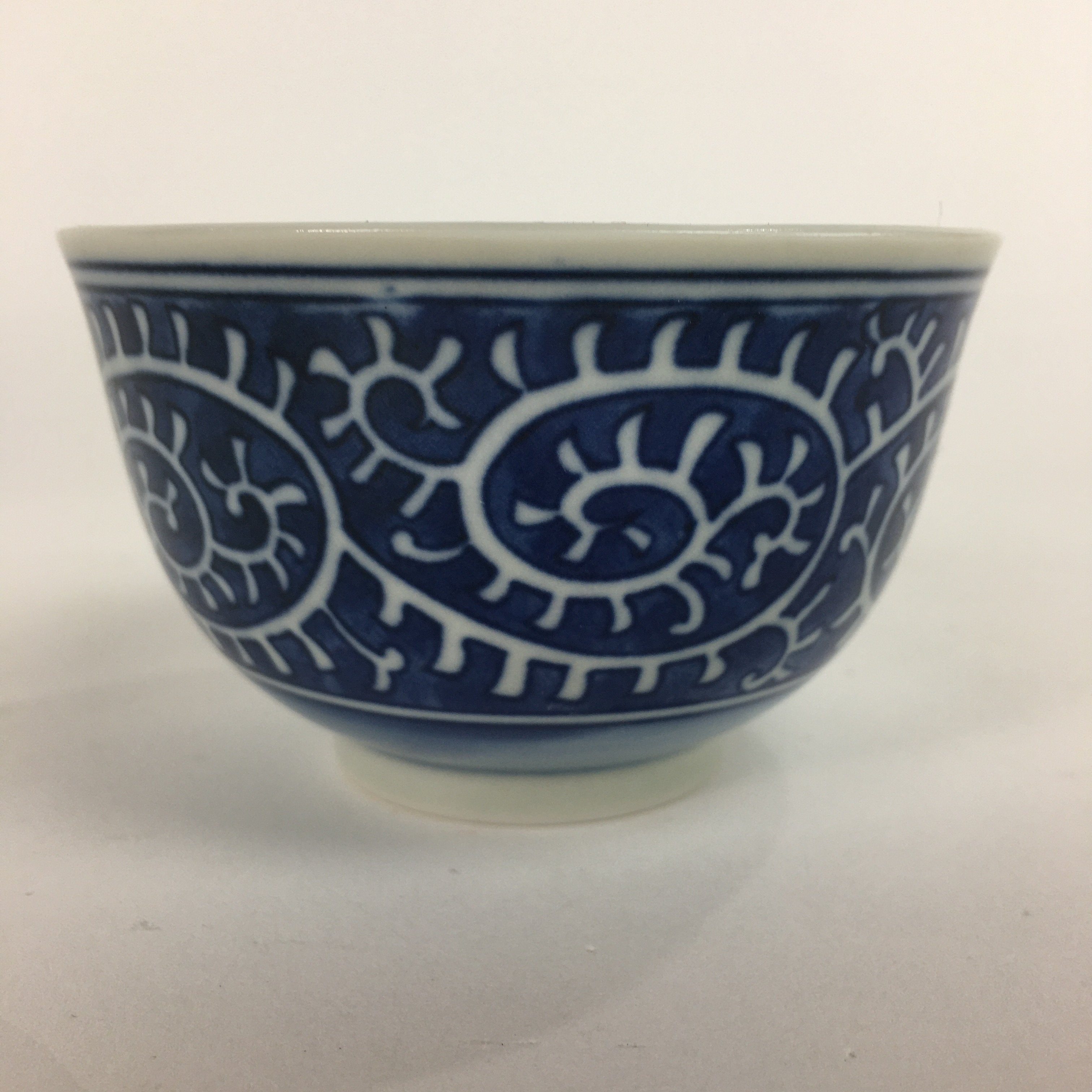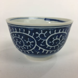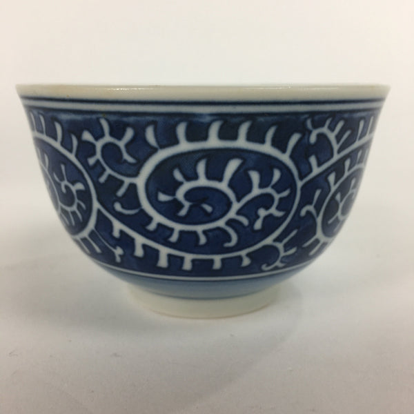 Japanese Porcelain Teacup Yunomi Vtg White Blue Karakusa pattern Sencha TC194