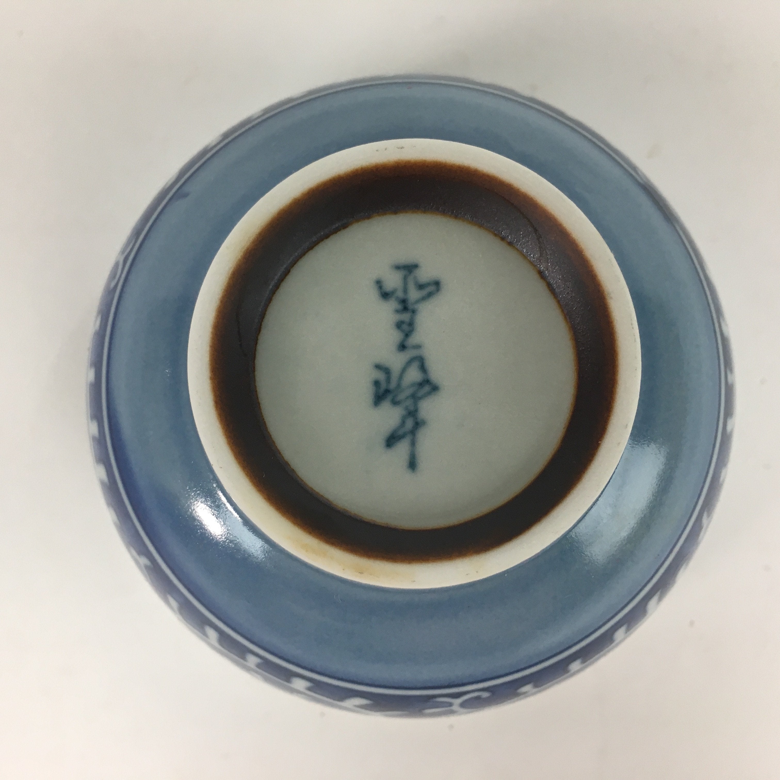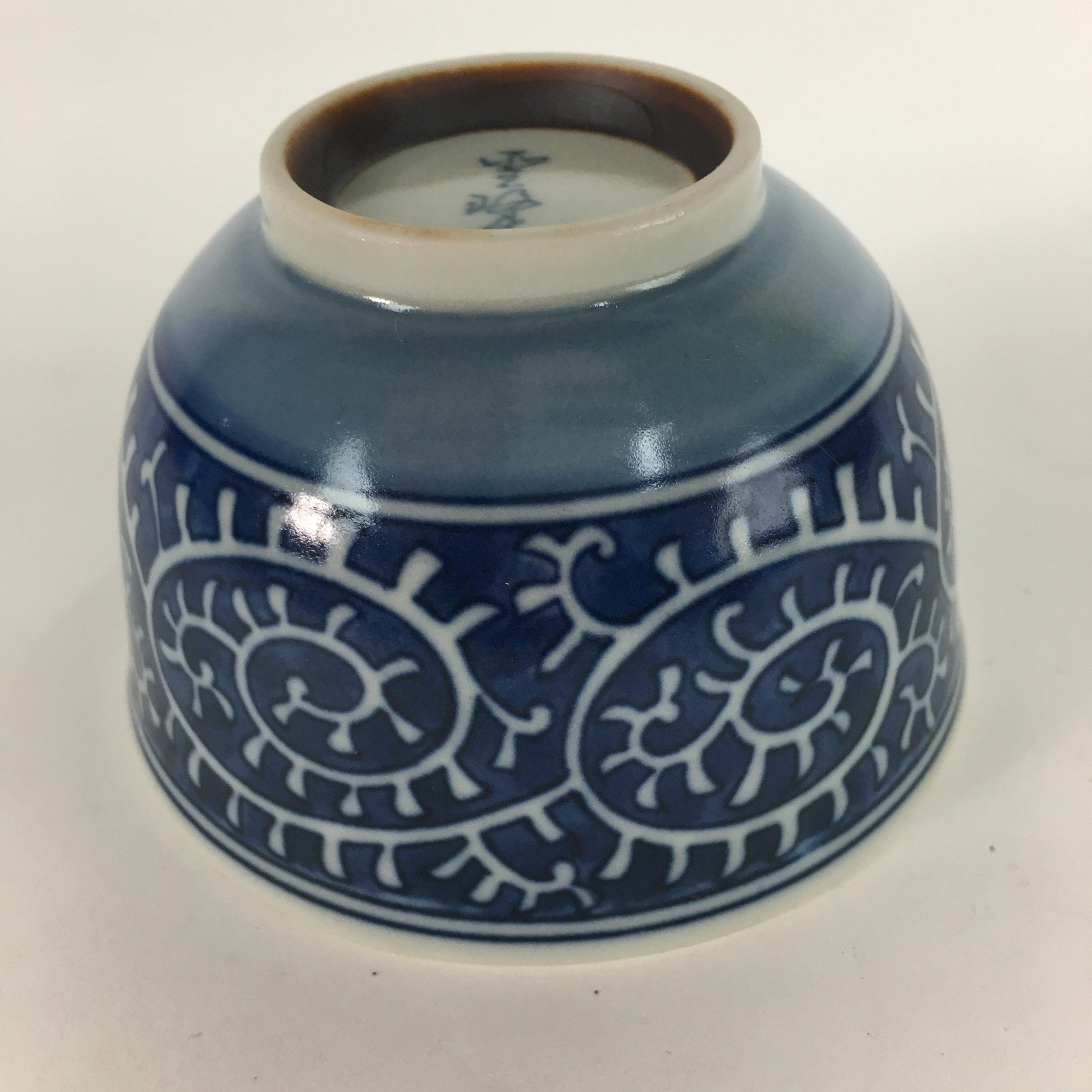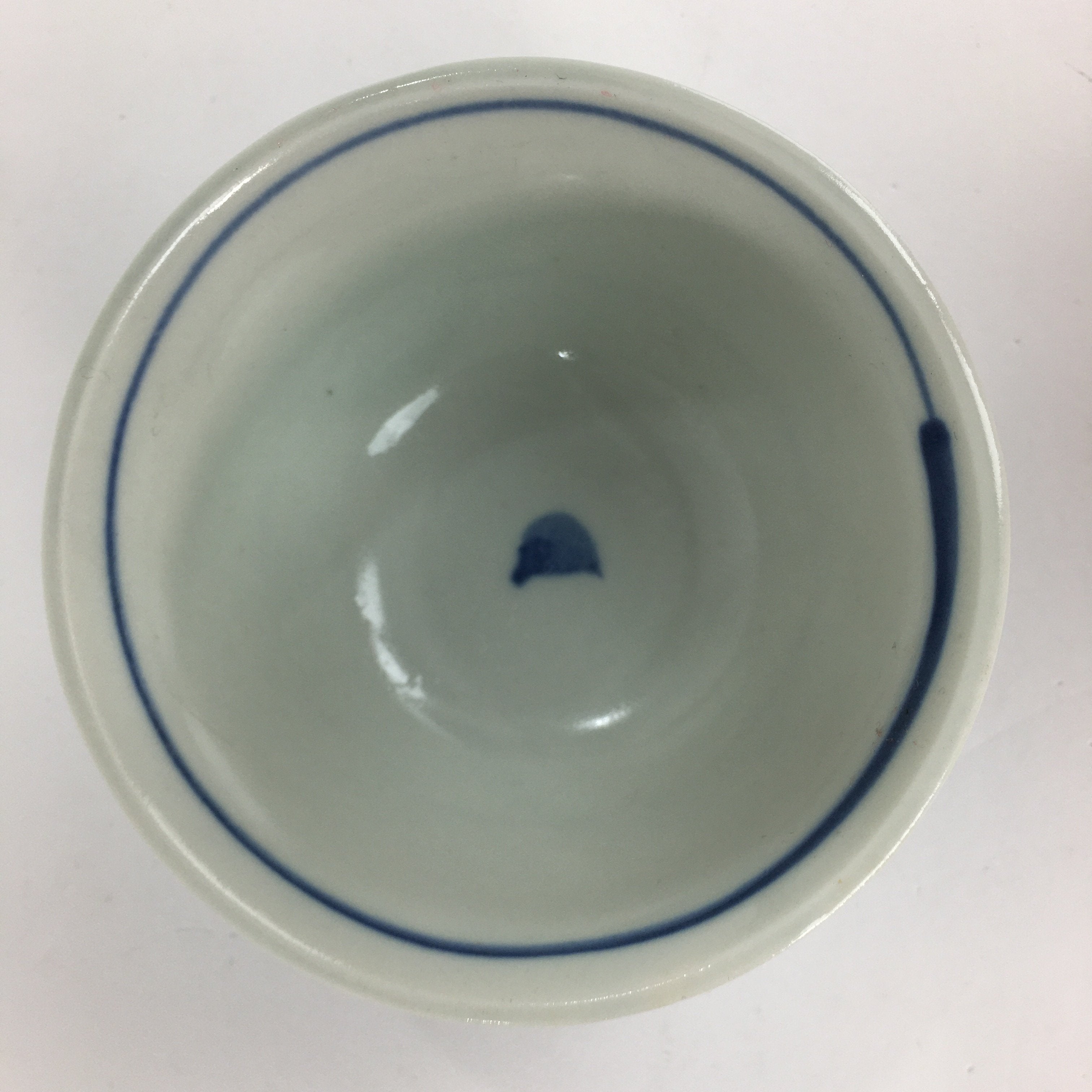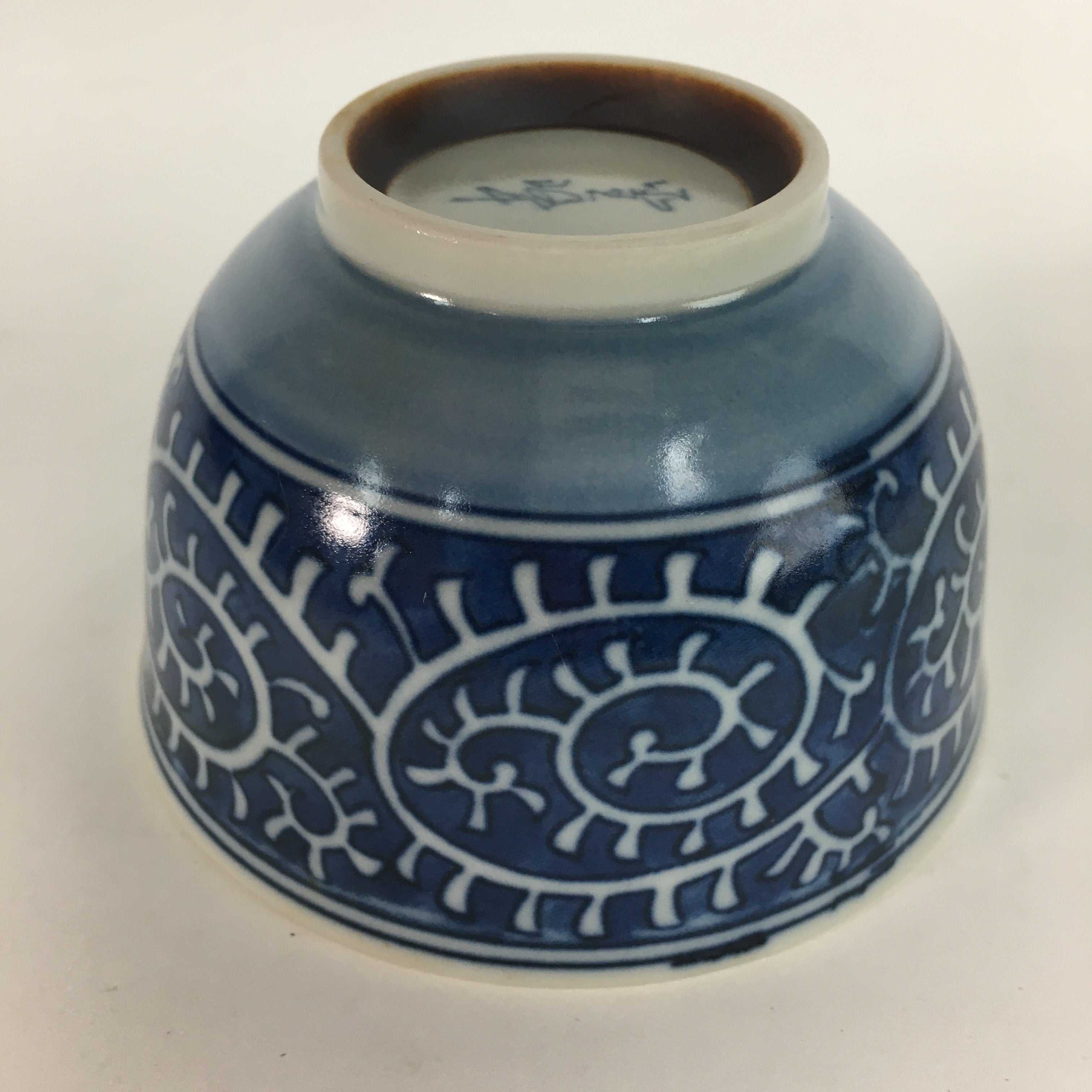 Japanese Porcelain Teacup Yunomi Vtg White Blue Karakusa pattern Sencha TC194