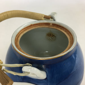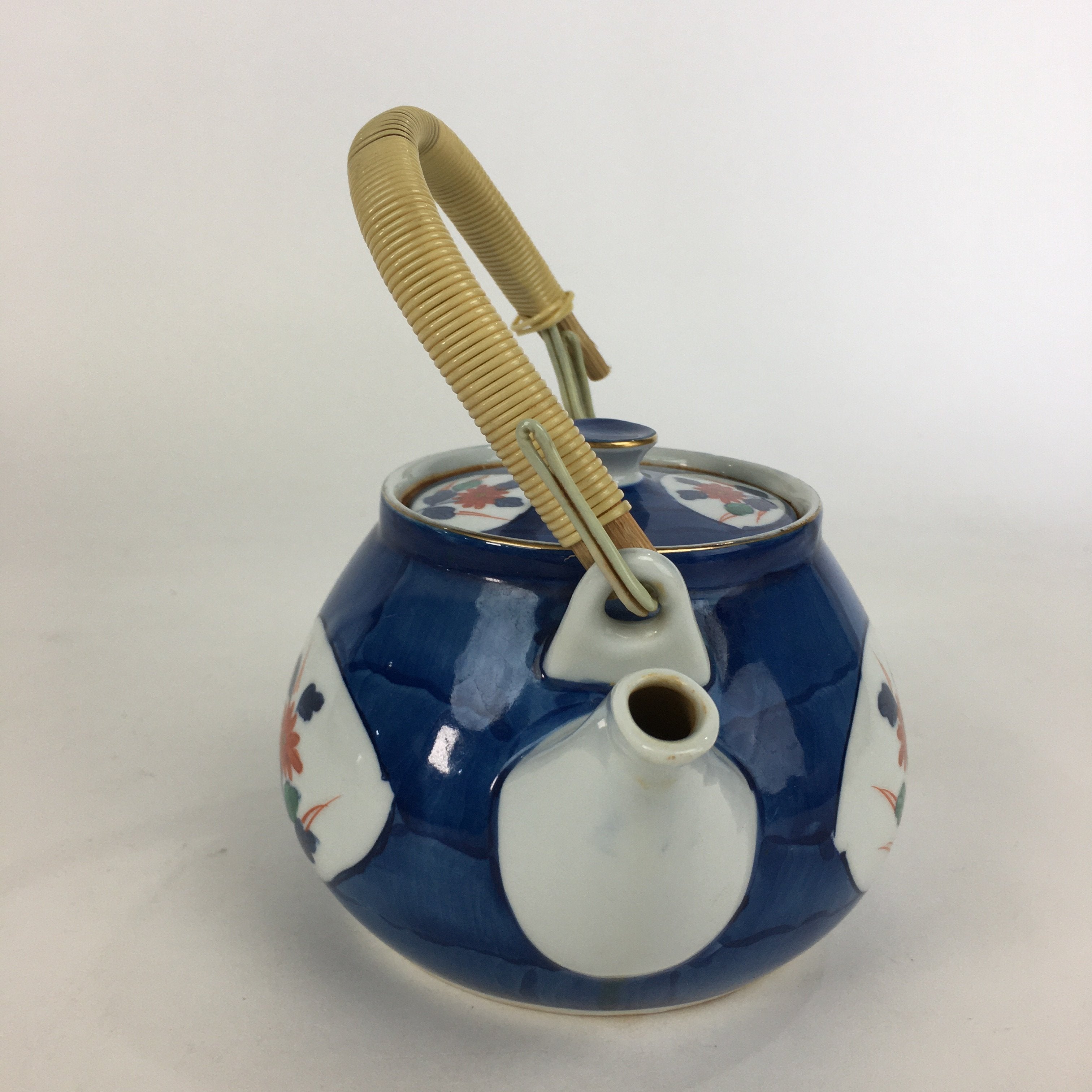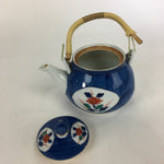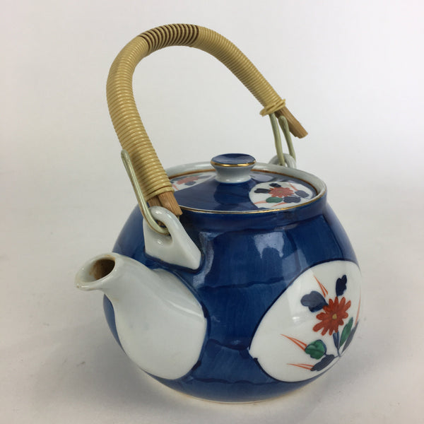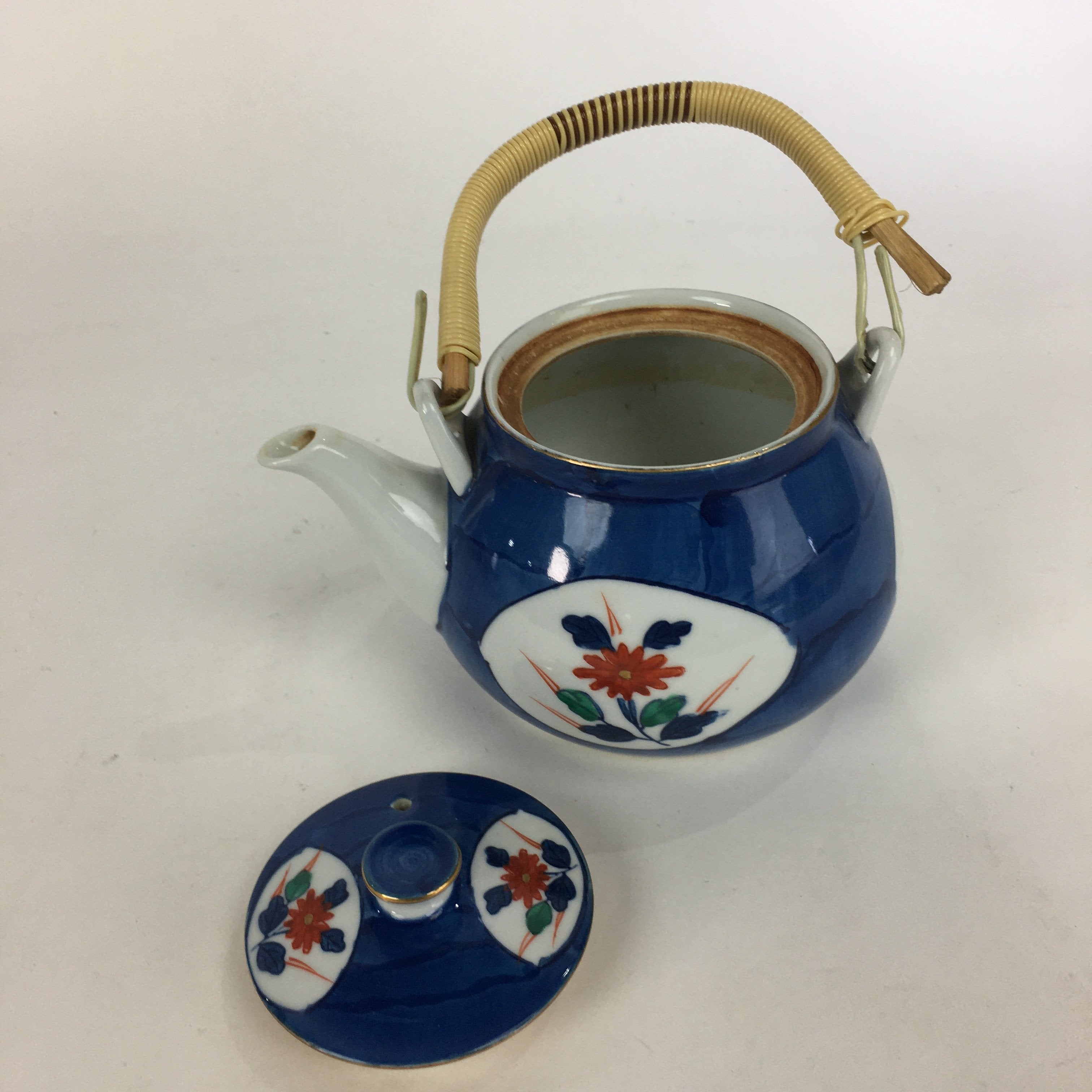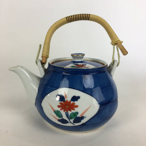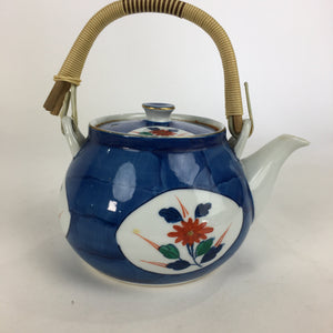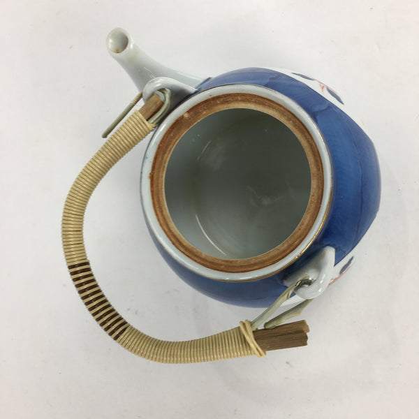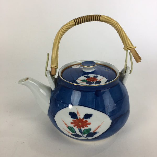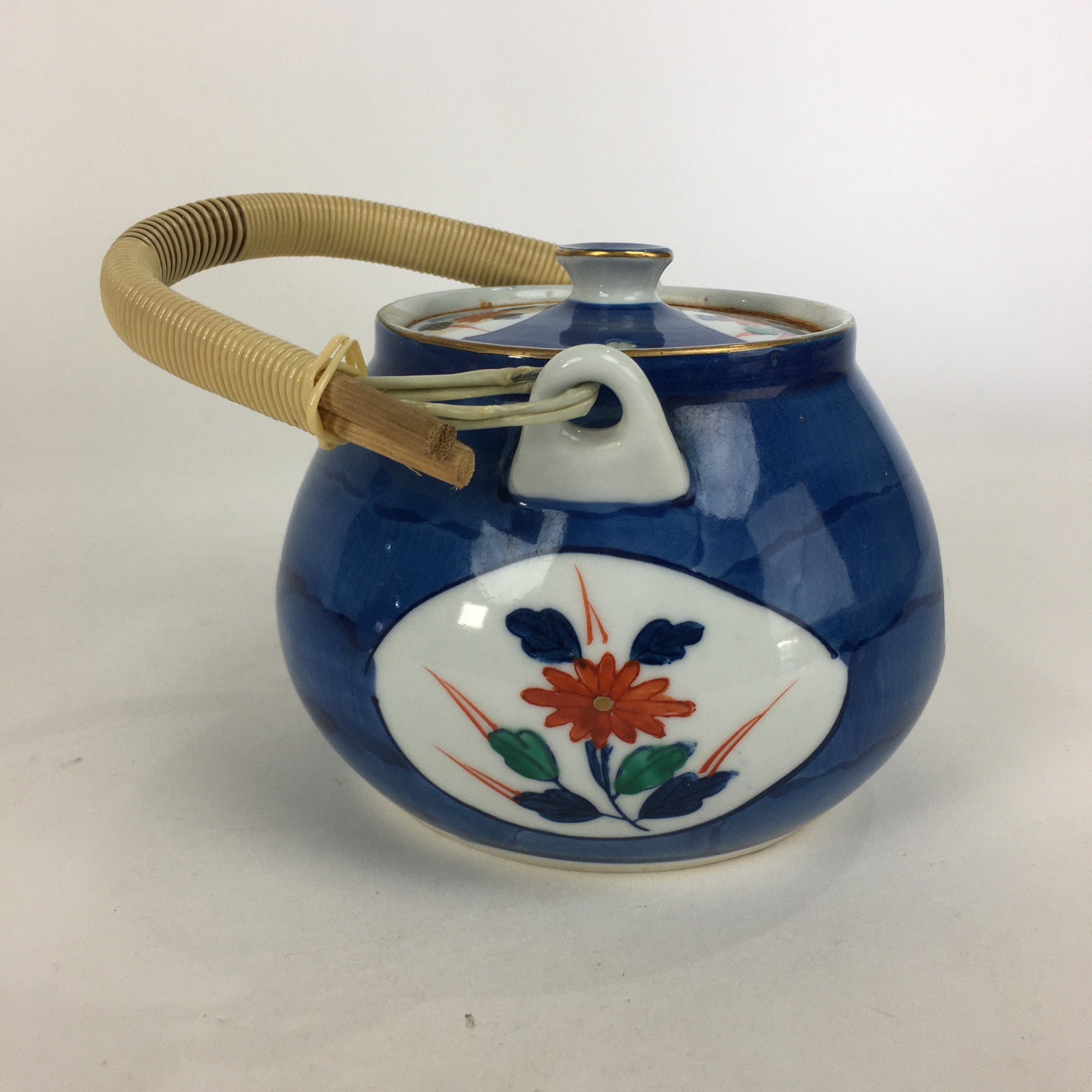 Japanese Porcelain Teapot Vtg Kyusu Pottery White Blue Red Flower Sencha PP596