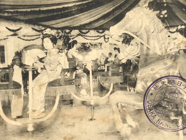 Japanese BW Postcard Osaka Rakutenchi Merry Go Round C1920 Taisho Kimo | chidorivintage.com