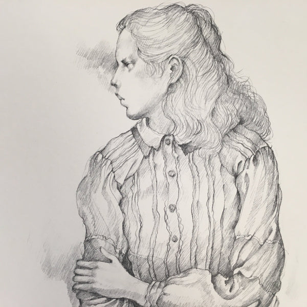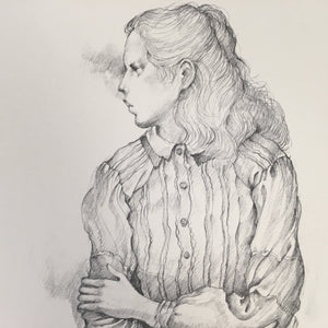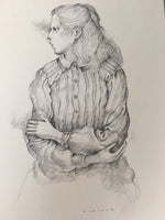 Japanese Art Print Sketching Drawing Woman Profile Dessins Vtg Pencil P277