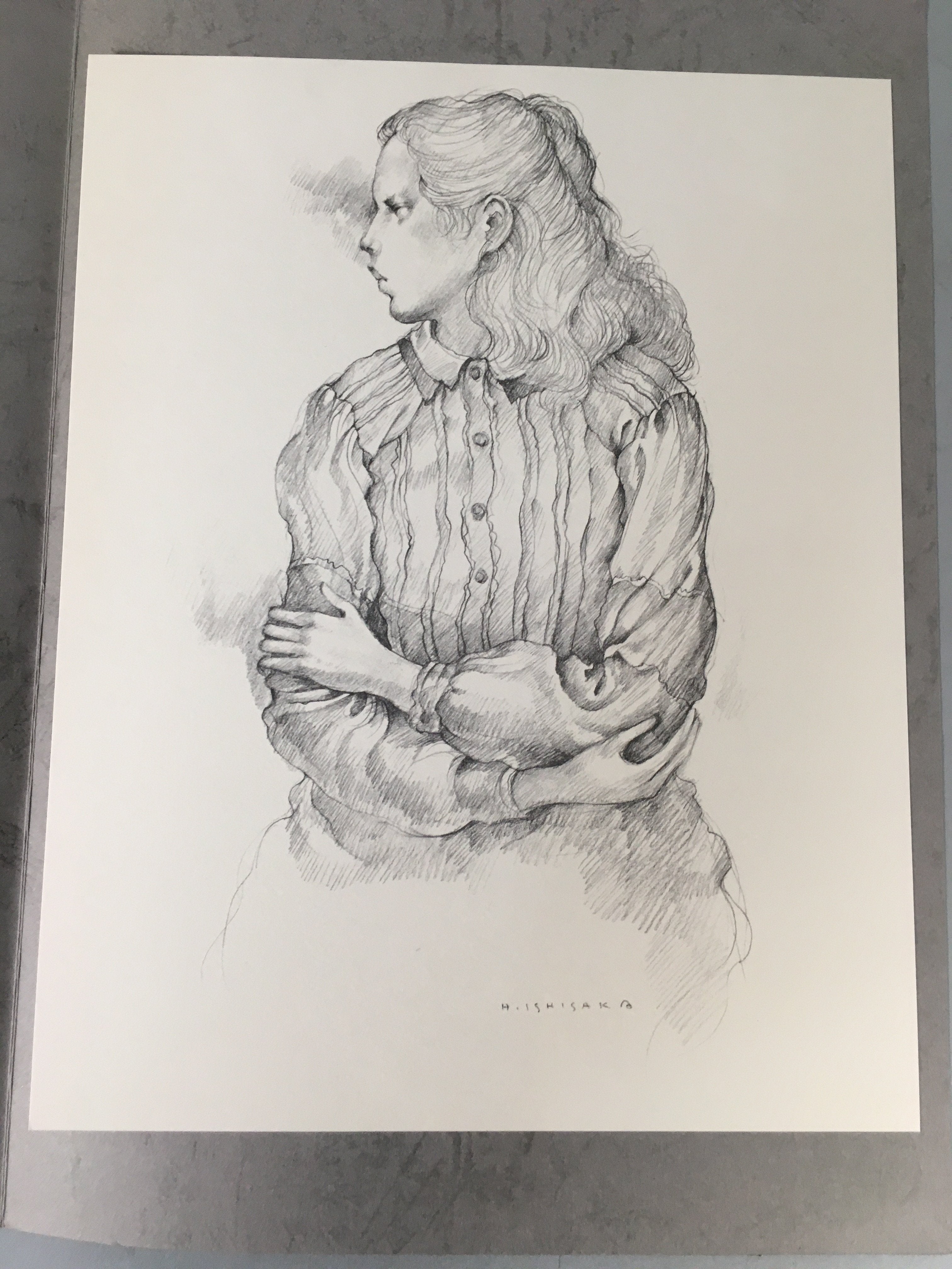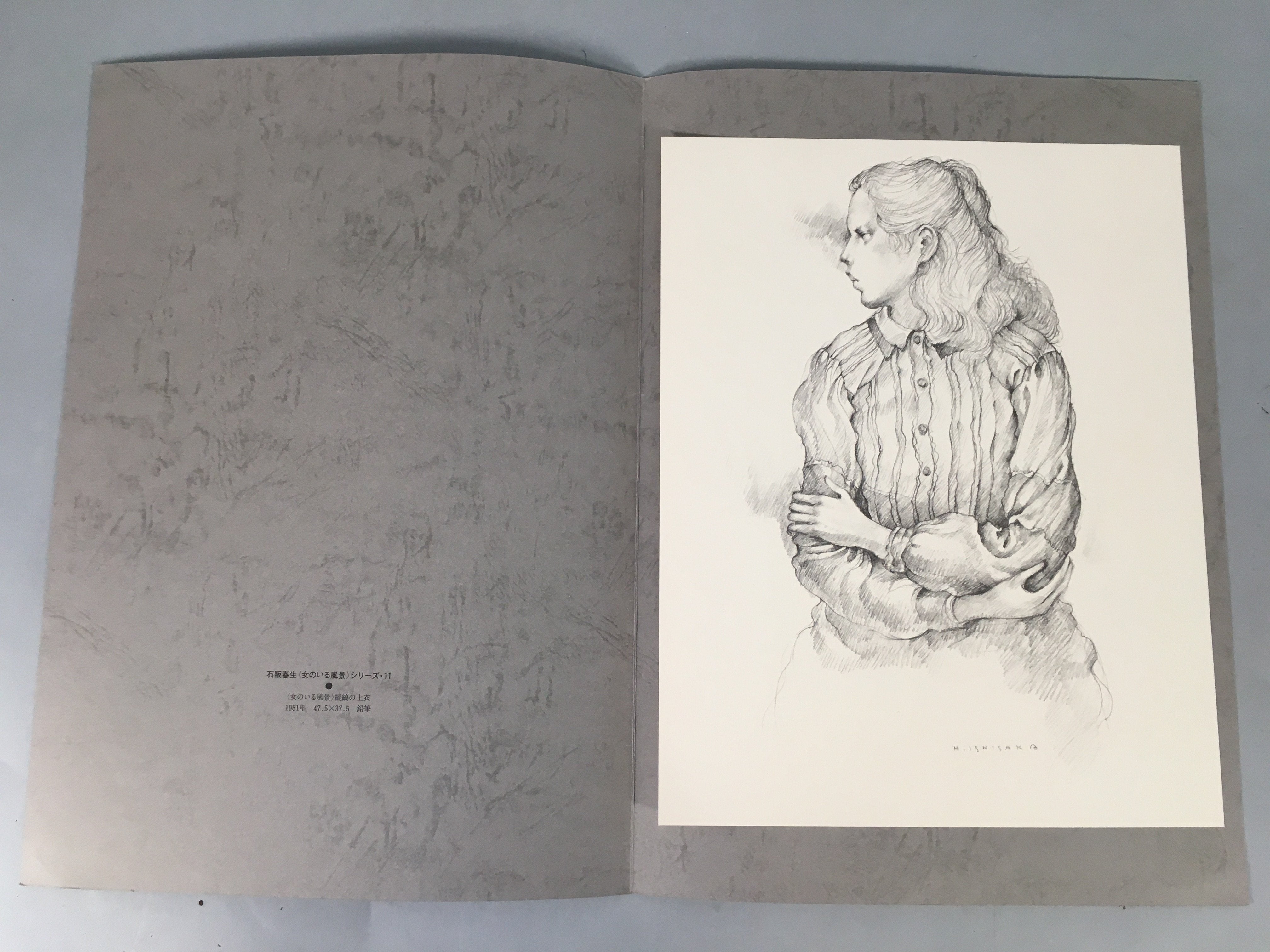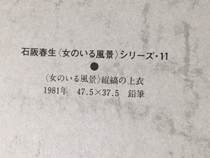• Kanji on the inside of the cover: Ishisaka Haruo, series of 'scenery with woman' 11, 'scenery with woman' vertical stripe pattern tops, 1981, pencil