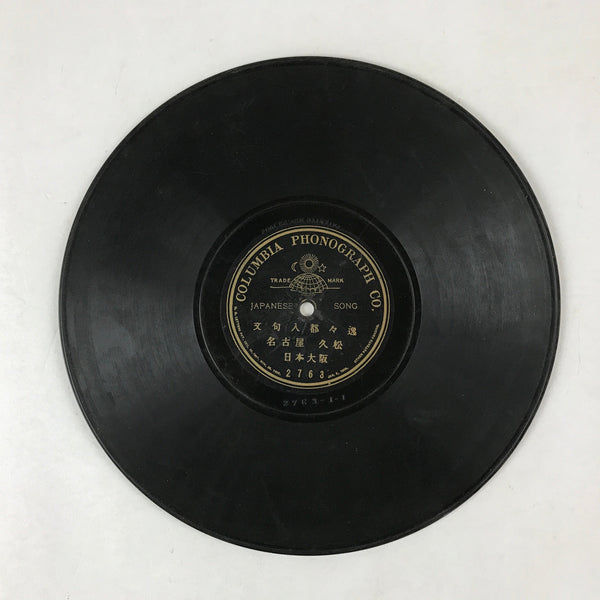 This is a vintage Japanese 78 rpm record. It features four different Japanese folk songs. It was released by the Columbia Phonograph Company. The record numbers are 2763 and 2755. This item wasn't tested.