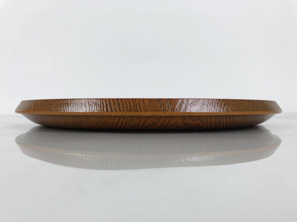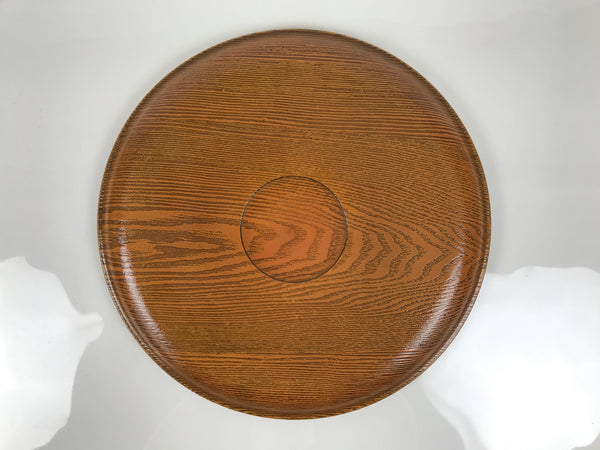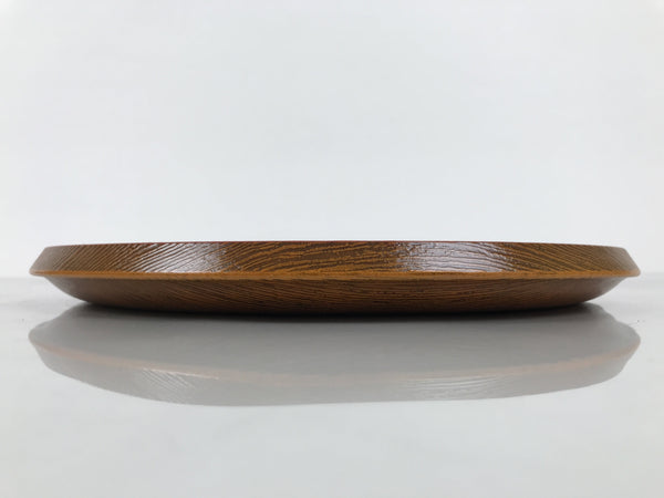 Japanese Resin Lacquer Replica Serving Tray Obon Vtg Round Brown Grain L567