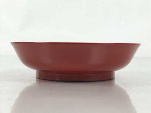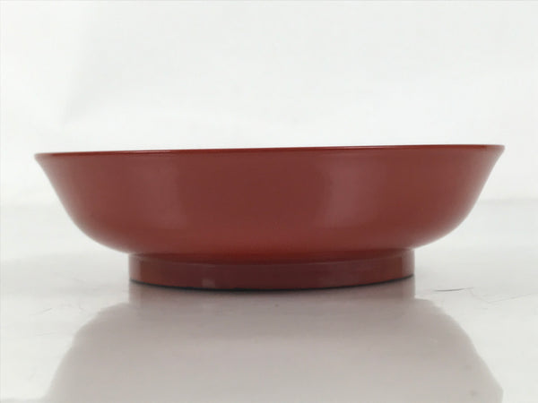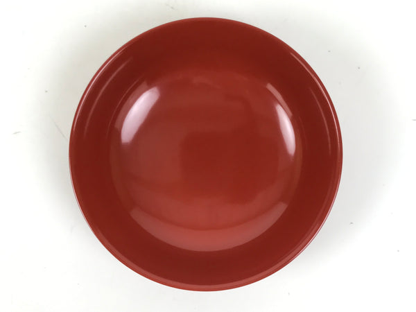 This is a Japanese vintage small bowl, or kobachi, typically used for serving cold salad, fruit, and other side dishes. This round dish is made of resin and mimics traditional lacquerware. It is mostly a gorgeous red color with a black underside.