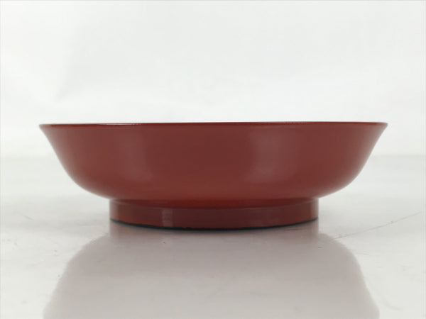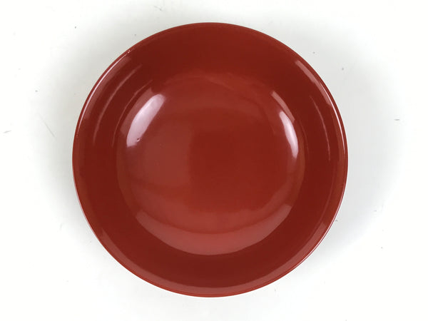 This is a Japanese vintage small bowl, or kobachi, typically used for serving cold salad, fruit, and other side dishes. This round dish is made of resin and mimics traditional lacquerware. It is mostly a gorgeous red color with a black underside.