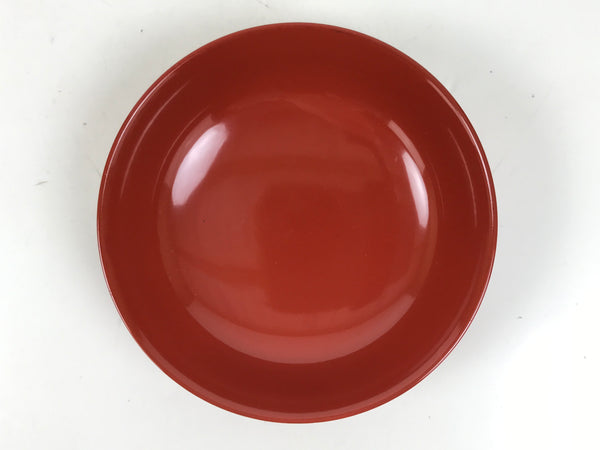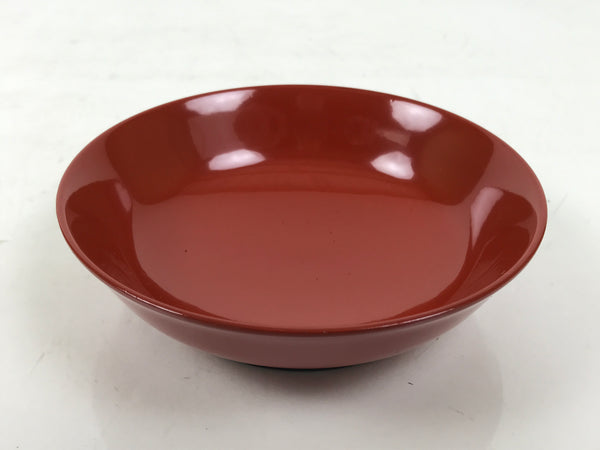 This is a Japanese vintage small bowl, or kobachi, typically used for serving cold salad, fruit, and other side dishes. This round dish is made of resin and mimics traditional lacquerware. It is mostly a gorgeous red color with a black underside.
