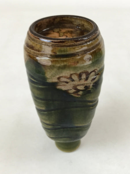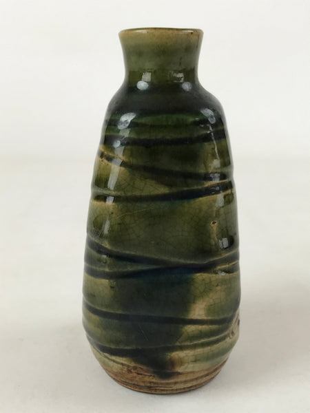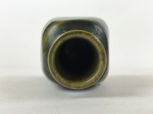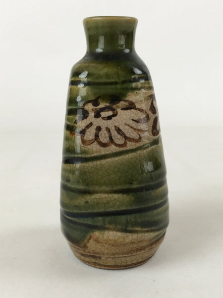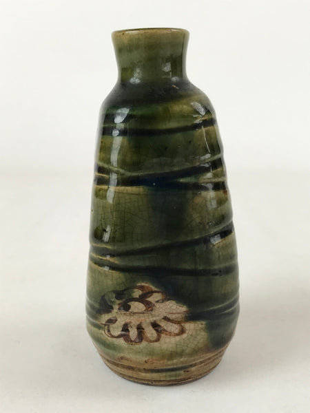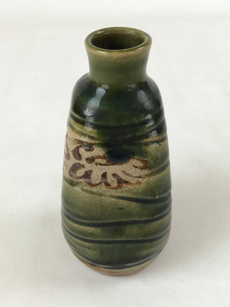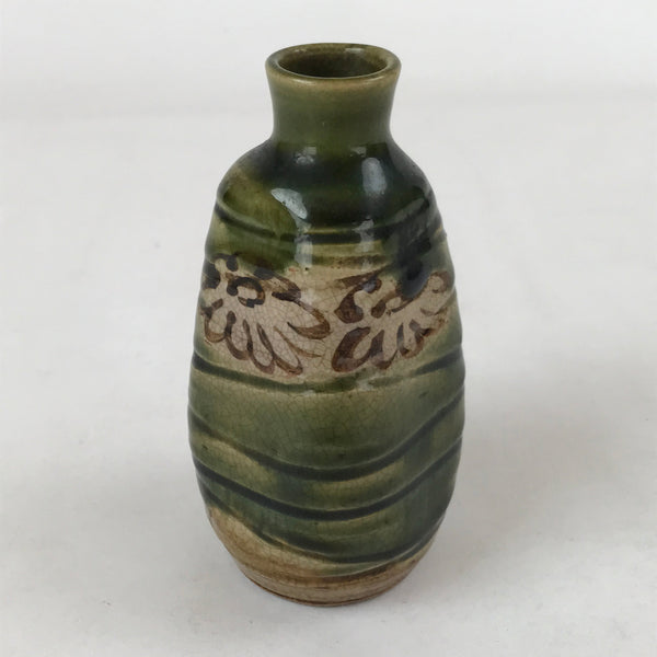 Japanese Sake Bottle Ceramic Oribe Tokkuri Vtg Ichi-Go Dark Green Flowers TS621