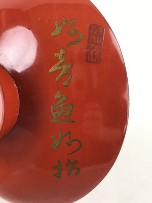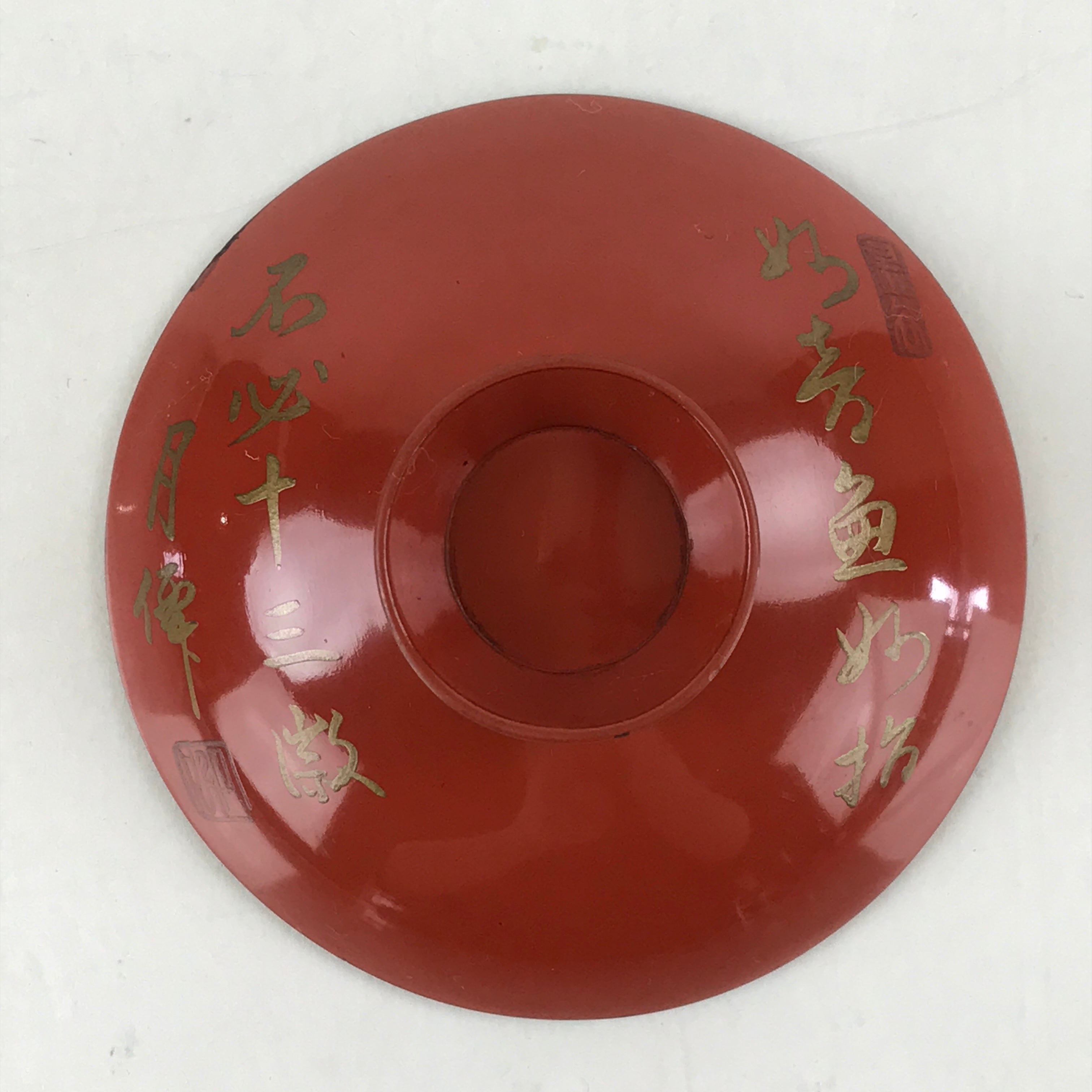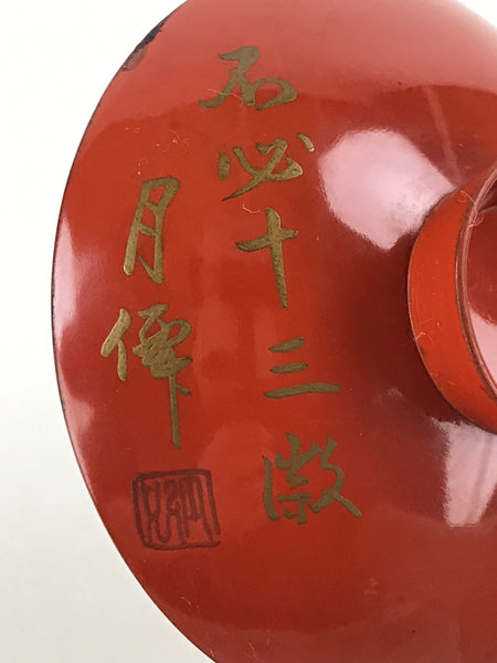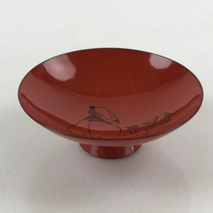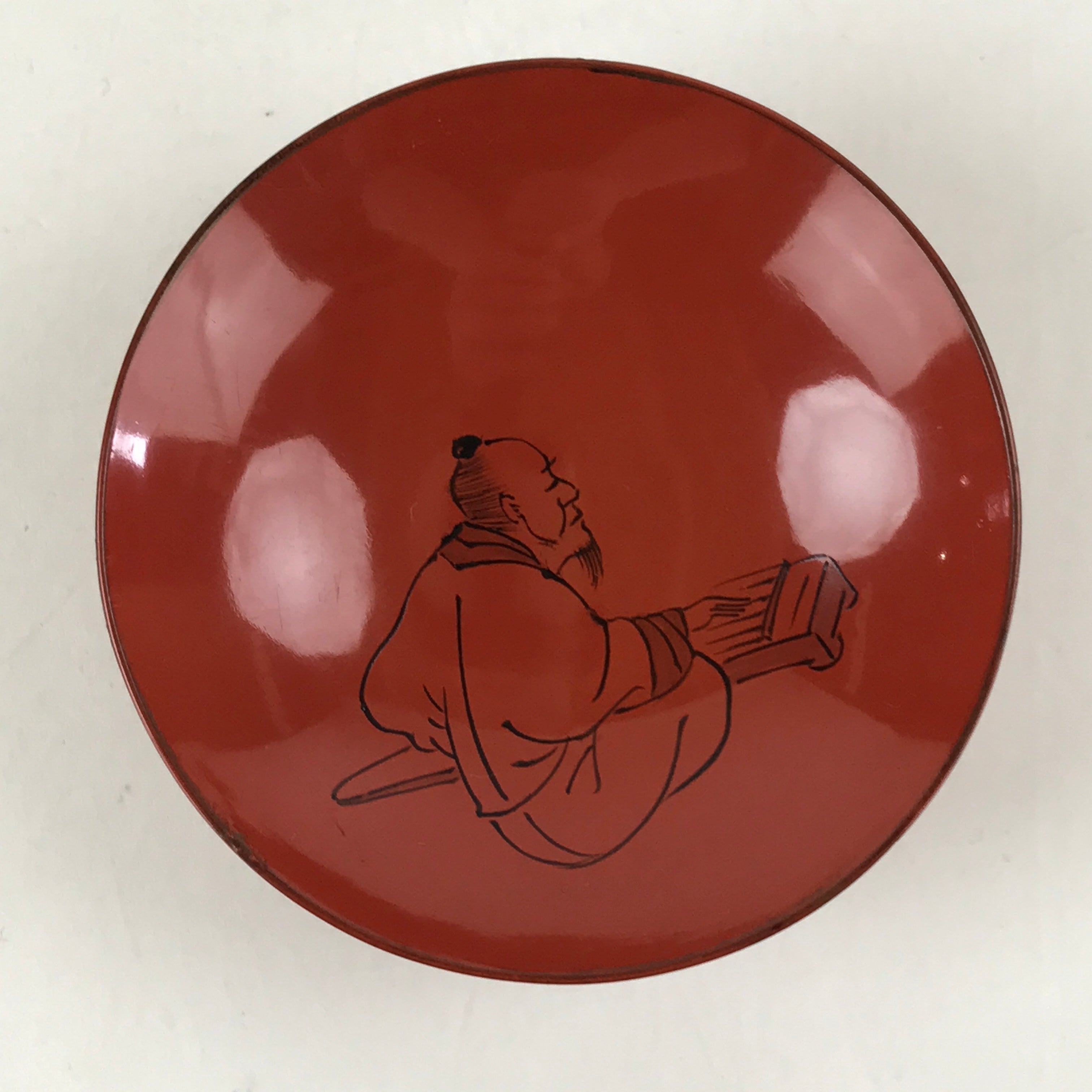 Antique Japanese Lacquered Sake Cup Sakazuki Red Man Play Koto Guinomi Ochoko G7