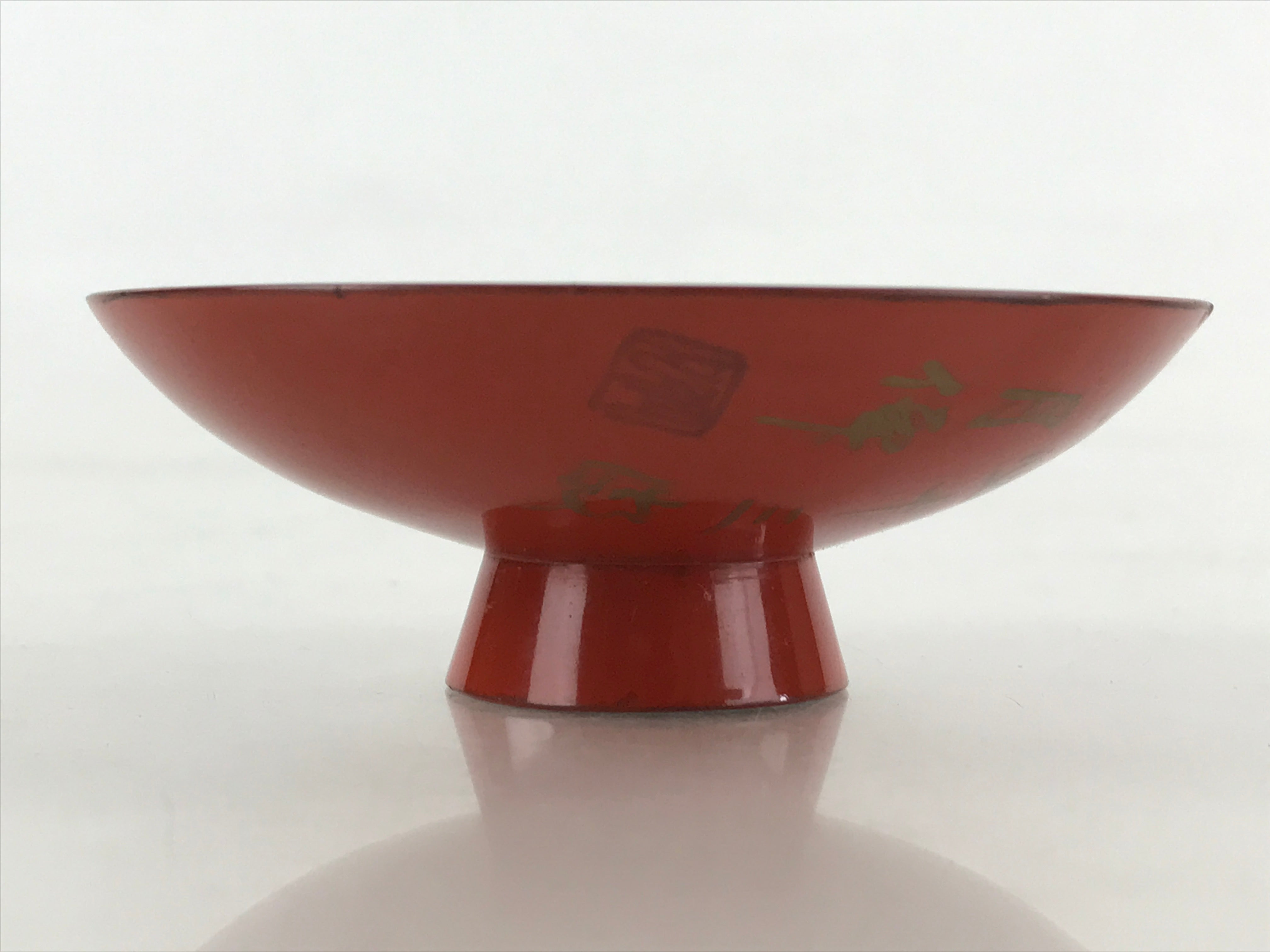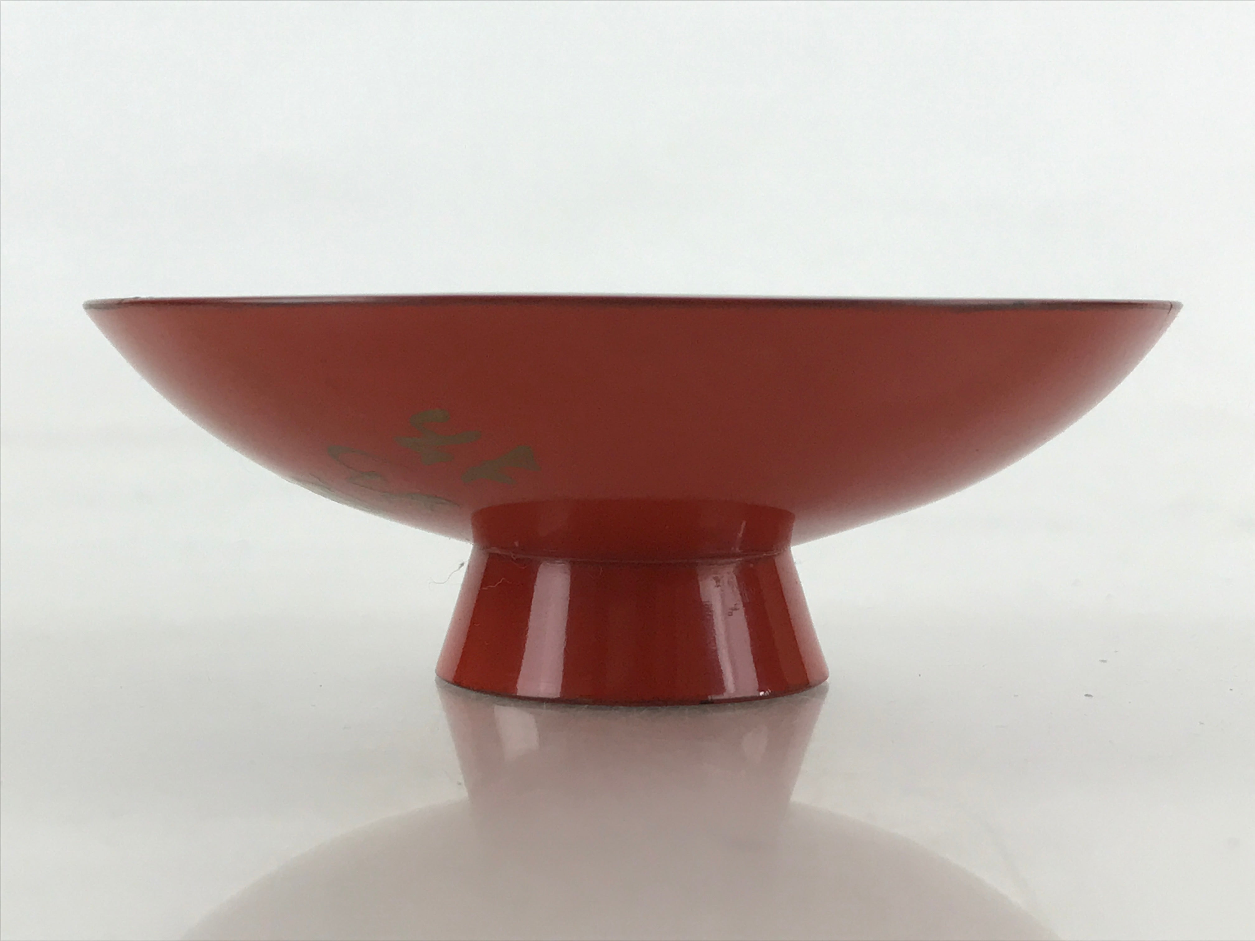 This is an antique Japanese wooden lacquered sake cup, Sakazuki. Inside the cup is a picture of a man playing the Japanese harp, Koto. The back of the cup has a signature and a Chinese poem written on it. Sakazuki refers specifically to flat sake cups. Ochoko is a small cup that can be used to drink sake in one or two sips. Guinomi is a cup large enough to fit your nose when drinking sake.